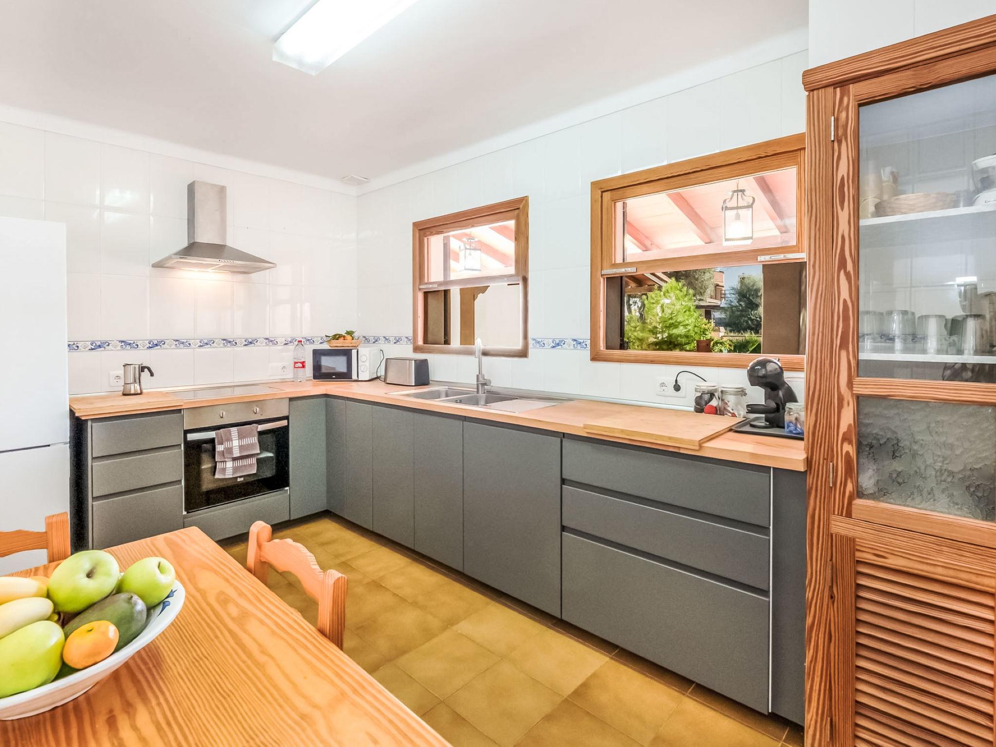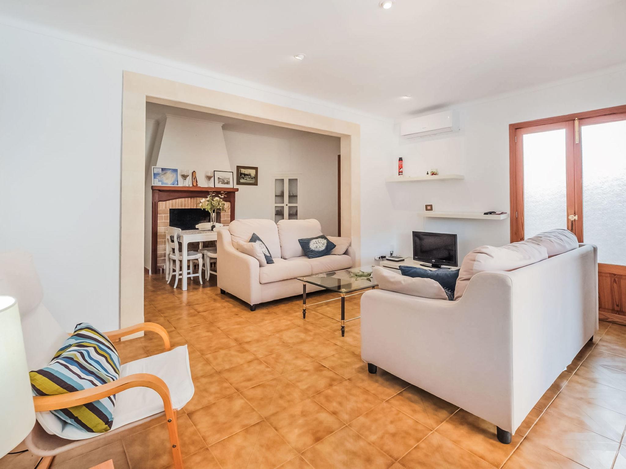 "Villa Sa Rapita", 5-room house 125 m2. Object suitable for 4 adults + 3 children. Spacious, practical and comfortable furnishings: 2 double bedrooms, each room with 1 french bed (1 x 150 cm, length 200 cm), air conditioning and forced-air heating. Exit to the patio. Living/dining room with open-hearth fireplace, dining table, cable TV, DVD and air conditioning. Exit to the terrace. 1 double bedroom with 2 beds (90 cm, length 200 cm), air conditioning and forced-air heating. 1 room with 1 bed (110 cm, length 190 cm). Kitchen (oven, dishwasher, 4 ceramic glass hob hotplates, toaster, kettle, microwave, electric coffee machine). Bath/WC, shower/WC. Heating not available in all rooms. Natural stone floors. Patio. Terrace furniture, barbecue, deck chairs (5), covered balcony. Facilities: washing machine, dryer, iron, children's high chair, baby cot for up to 2 year olds, hair dryer. Internet (WiFi, free). Suitable for families. ETV/4890 // Reg. Nr.: ESFCTU00000700800014629500000000000000000000ETV/48907