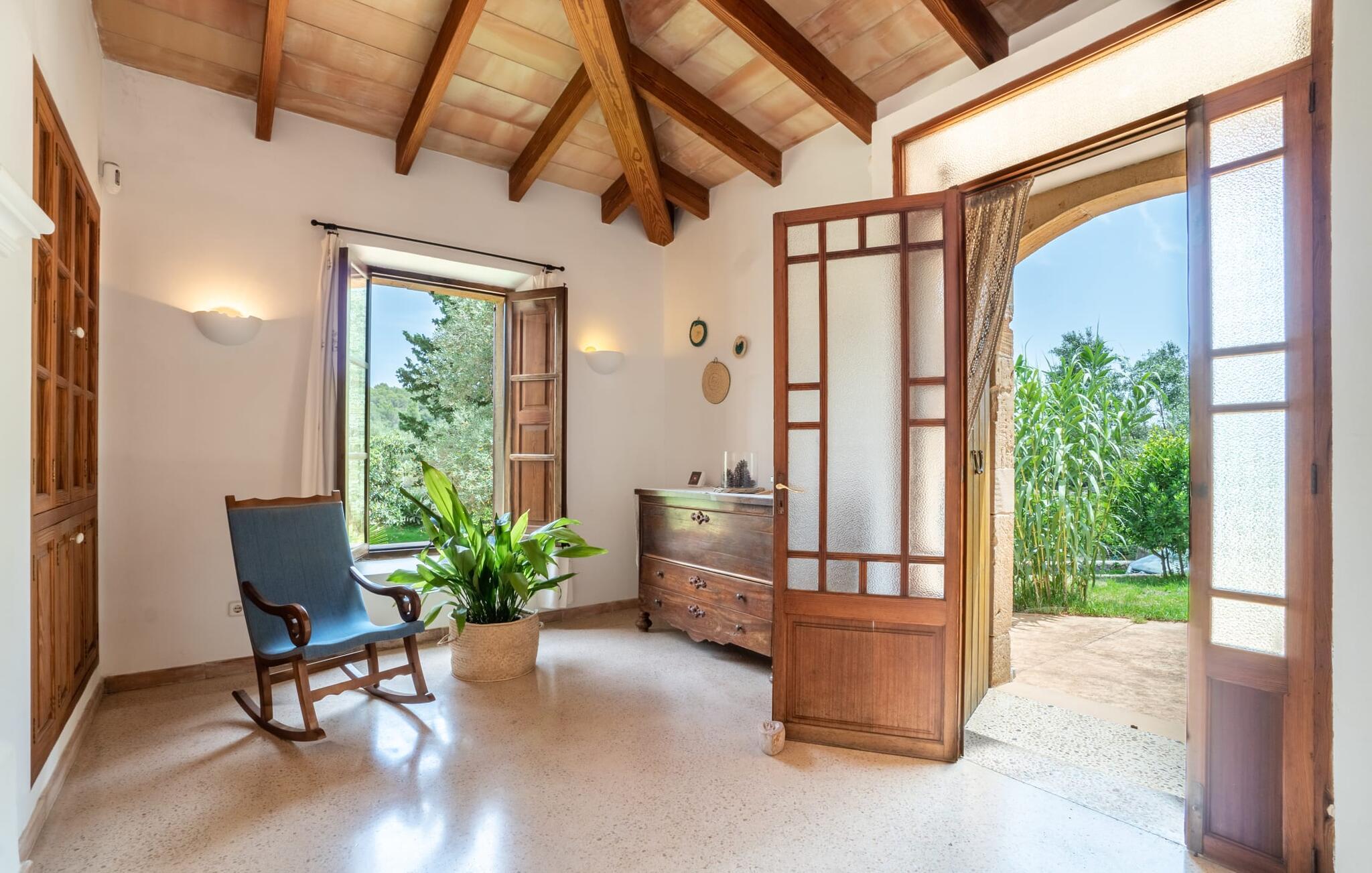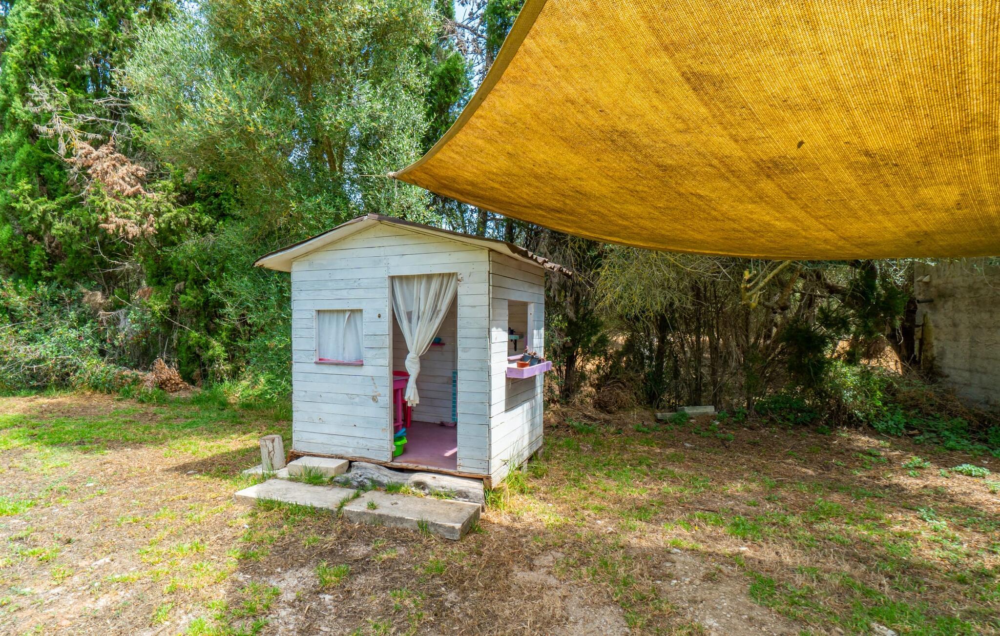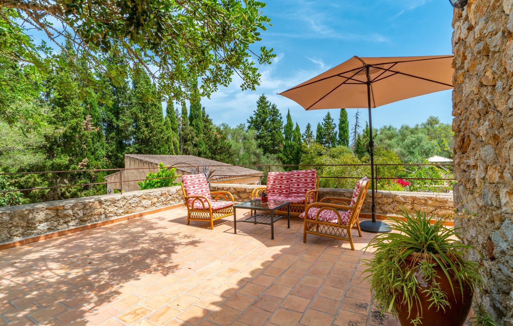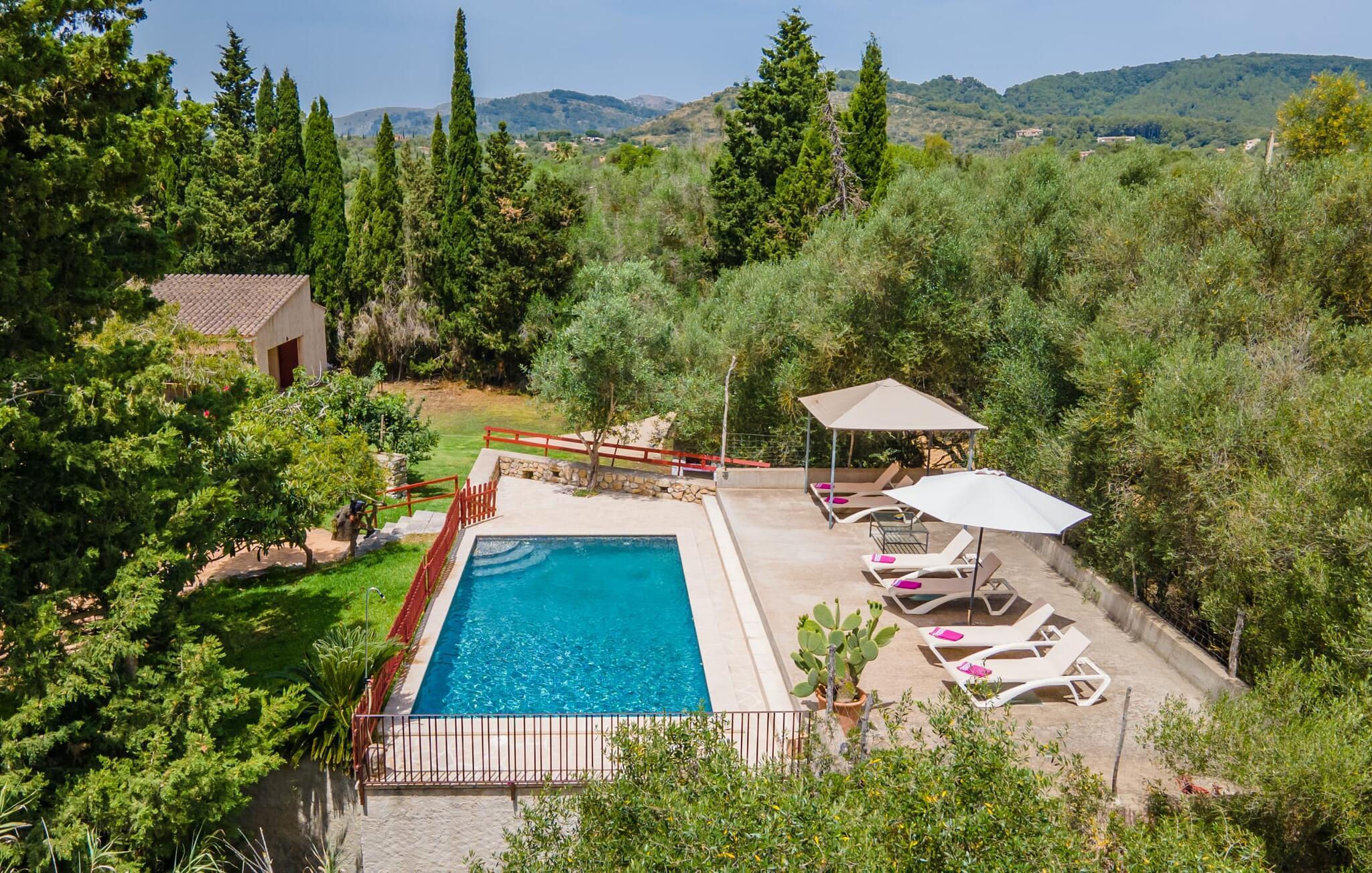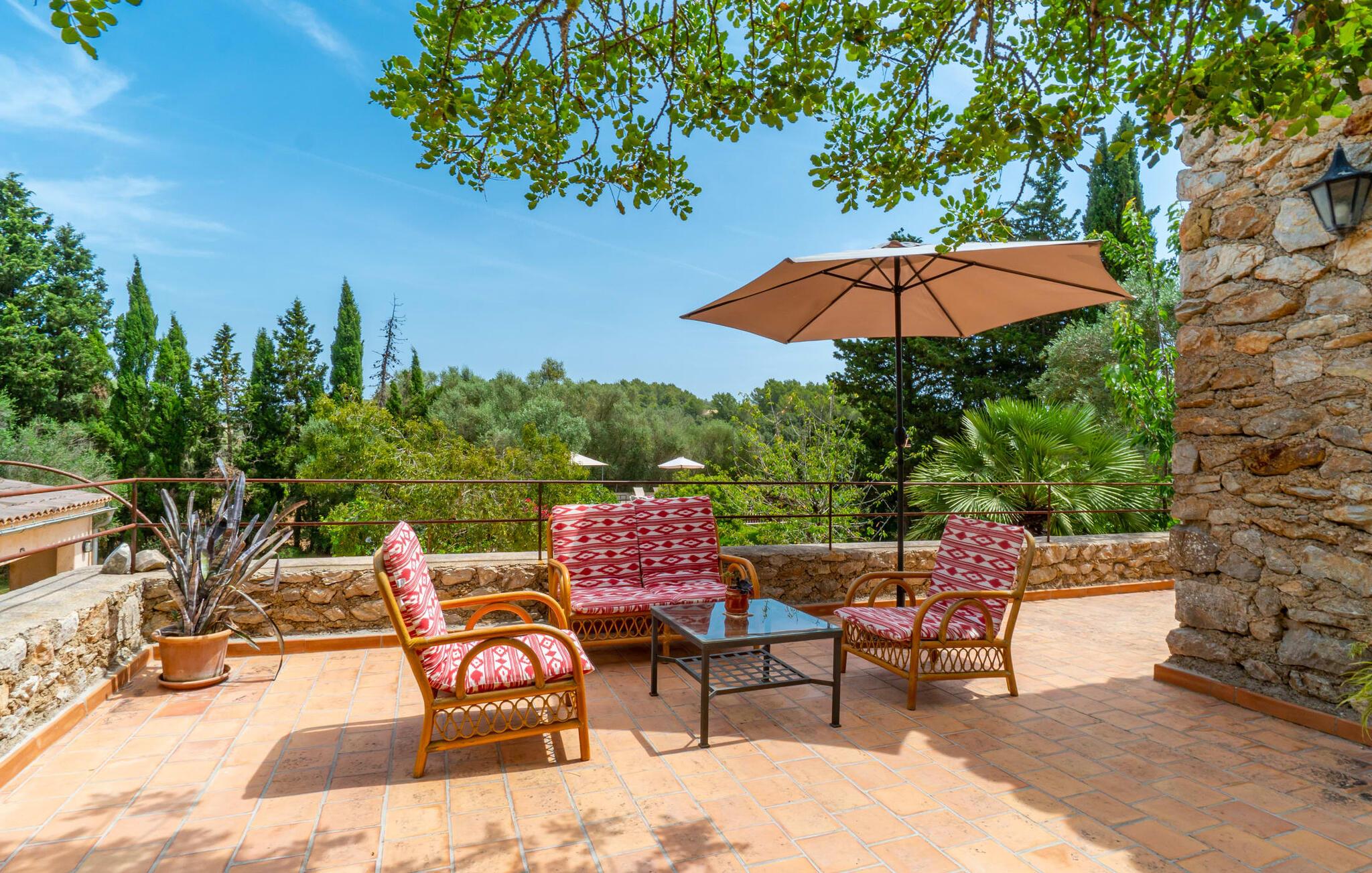 Bei einer Besichtigungstour sehen wir direkt hinter Artàs Nordausgang die absolut bezaubernde Villa „Sa Tortugueta“ im Sonnenlicht. Es wird uns in mallorquinischem Ambiente empfangen. Das Außengelände wird sofort Interesse an weiteren Erkundungen wecken. Viele verschiedene Bäume prägen den abwechslungsreichen Garten und sorgen für eine idyllische und fast gemütliche Atmosphäre. Wer lieber viel Zeit an der frischen Luft verbringt, findet bestimmt ein paar Lieblingsplätze; Ob auf der Terrasse, die mehrere Seiten des Natursteingebäudes umgibt, auf der Rasenfläche, in der Hängematte oder auf der etwas erhöhten Terrasse am Pool. Sie können die Atmosphäre unter den Olivenbäumen am Haus genießen und beispielsweise beim Frühstück einen frischen Obstsalat oder ein knuspriges Brötchen vom Bäcker genießen und dabei ins Grüne blicken. Neben den sicherlich lohnenswerten Ausflügen in die nähere und weitere Umgebung lockt auch ein entspannter Tag am Pool. Genießen Sie ausgiebige Entspannung unter freiem Himmel. Die Liegestühle und Sonnenschirme warten bereits auf Sie! Nehmen Sie ab und zu einen Sprung ins kühle Nass des 8 m langen Pools, den Sie bequem über die Ecktreppe betreten. Das Außenbad ist super praktisch. Neben dem Haus befindet sich eine Außenküche mit einem BBQ-Grill, einem kleinen Gasherd, einer Spüle, einem großen Kühlschrank und Stühlen. Dies ist der Ort, an dem Sie den Tag mit einer großzügigen Portion leckerer Leckereien ausklingen lassen können!