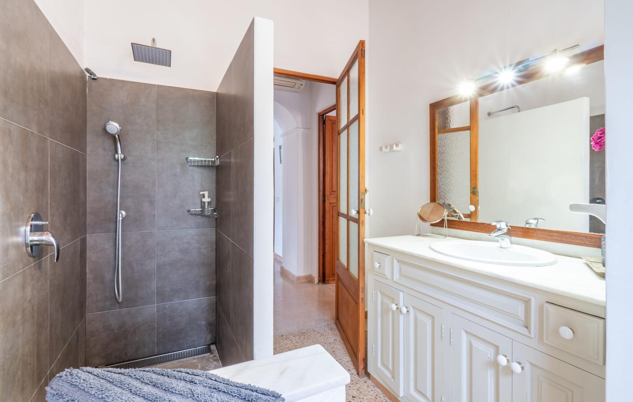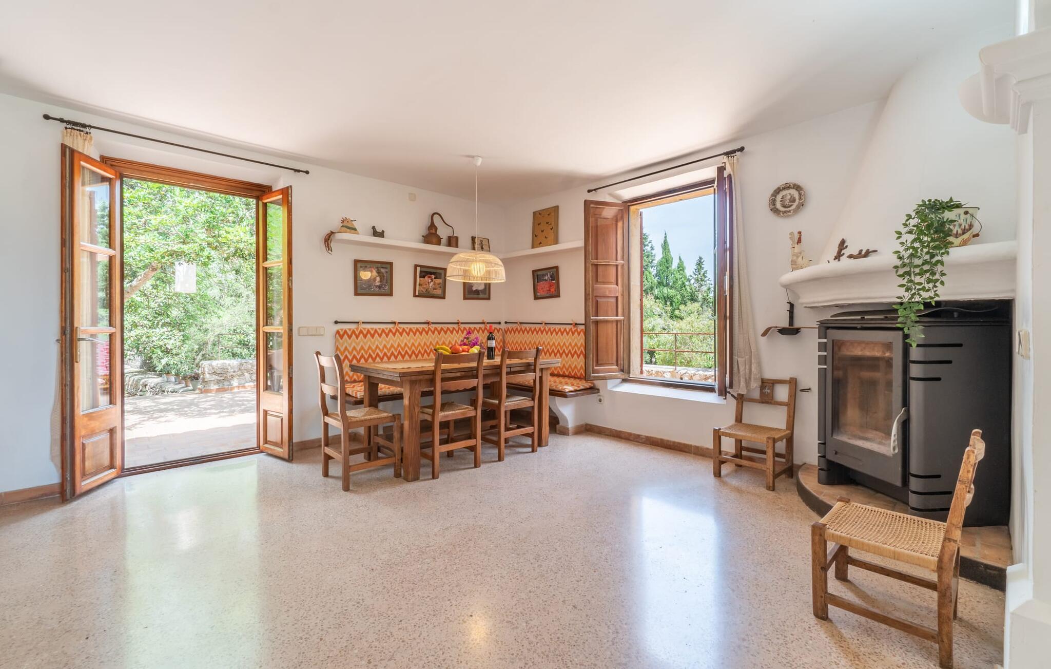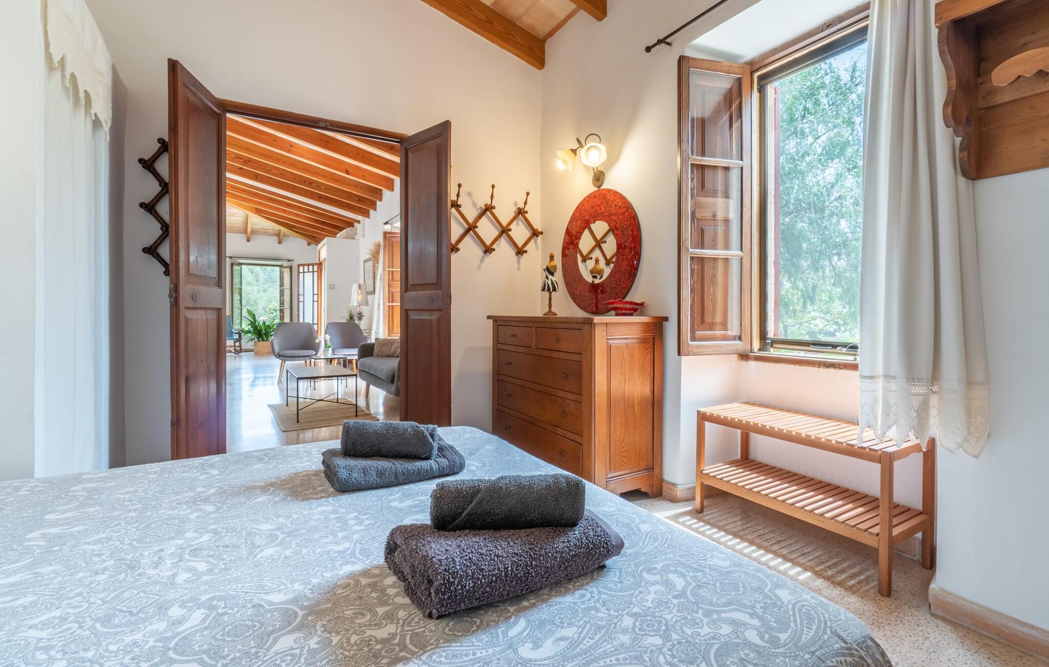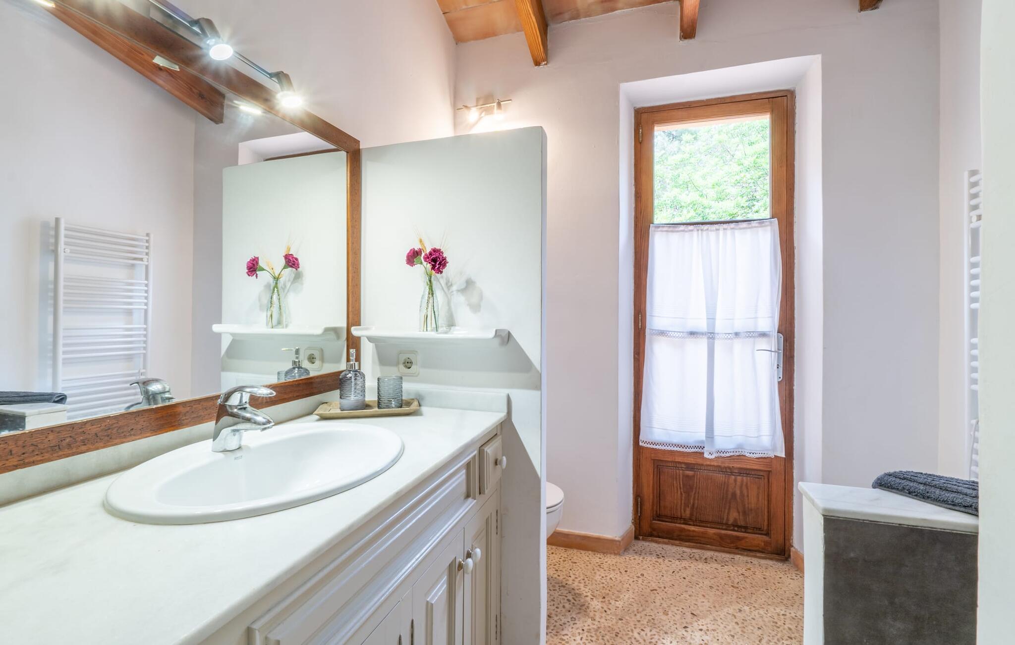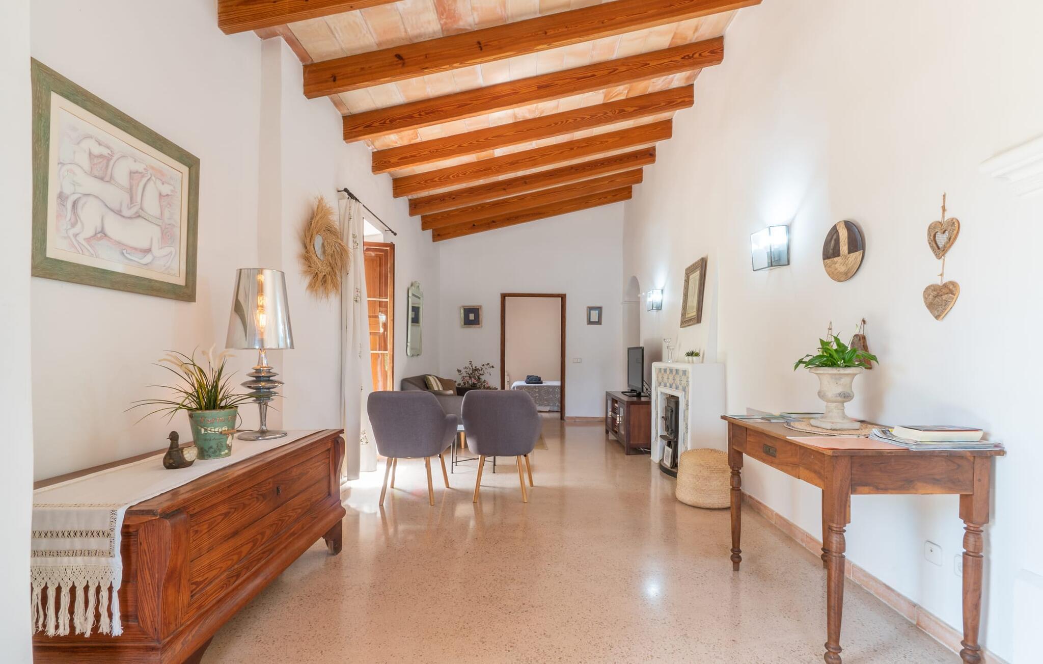Bei einer Besichtigungstour sehen wir direkt hinter Artàs Nordausgang die absolut bezaubernde Villa „Sa Tortugueta“ im Sonnenlicht. Es wird uns in mallorquinischem Ambiente empfangen. Das Außengelände wird sofort Interesse an weiteren Erkundungen wecken. Viele verschiedene Bäume prägen den abwechslungsreichen Garten und sorgen für eine idyllische und fast gemütliche Atmosphäre. Wer lieber viel Zeit an der frischen Luft verbringt, findet bestimmt ein paar Lieblingsplätze; Ob auf der Terrasse, die mehrere Seiten des Natursteingebäudes umgibt, auf der Rasenfläche, in der Hängematte oder auf der etwas erhöhten Terrasse am Pool. Sie können die Atmosphäre unter den Olivenbäumen am Haus genießen und beispielsweise beim Frühstück einen frischen Obstsalat oder ein knuspriges Brötchen vom Bäcker genießen und dabei ins Grüne blicken. Neben den sicherlich lohnenswerten Ausflügen in die nähere und weitere Umgebung lockt auch ein entspannter Tag am Pool. Genießen Sie ausgiebige Entspannung unter freiem Himmel. Die Liegestühle und Sonnenschirme warten bereits auf Sie! Nehmen Sie ab und zu einen Sprung ins kühle Nass des 8 m langen Pools, den Sie bequem über die Ecktreppe betreten. Das Außenbad ist super praktisch. Neben dem Haus befindet sich eine Außenküche mit einem BBQ-Grill, einem kleinen Gasherd, einer Spüle, einem großen Kühlschrank und Stühlen. Dies ist der Ort, an dem Sie den Tag mit einer großzügigen Portion leckerer Leckereien ausklingen lassen können!