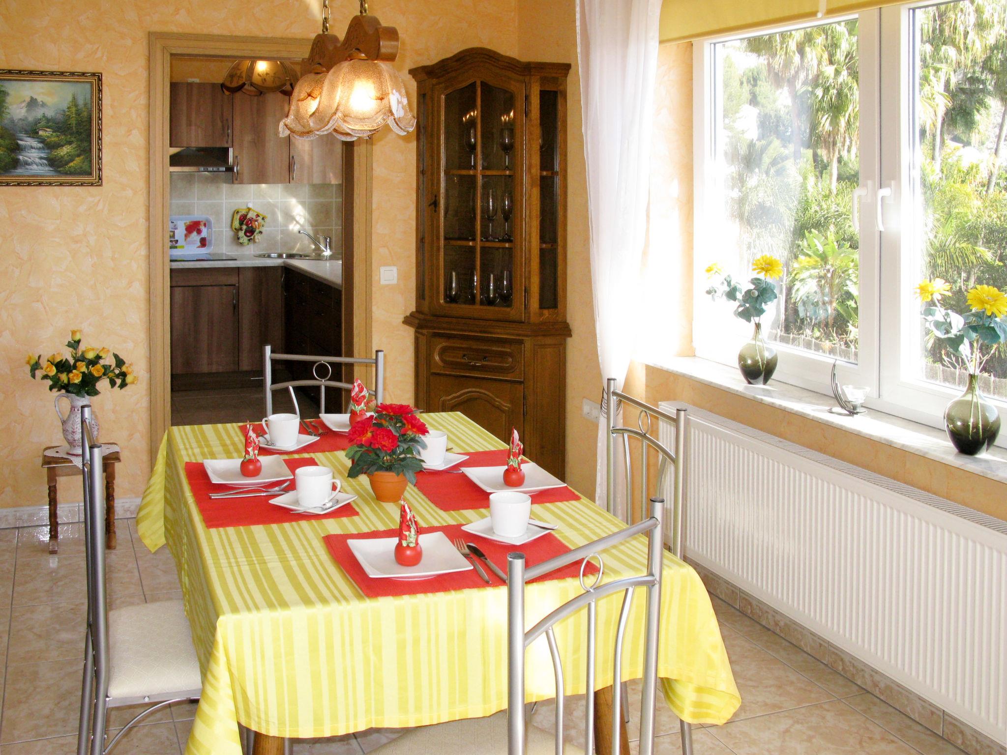 Apartment house "Salz". In the district of Monte de los Almendros 3.5 km from the centre of Salobreña, 8 km from the centre of Almuñécar, in the residential district, 2.5 km from the sea, in a cul-de-sac. For shared use: natural state property 1'100 m2 (fenced), terraced garden, swimming pool (20 x 10 m, seasonal availability: 01.Jan. - 31.Dec.). Shower/WC in the pool area, children's pool, outdoor shower, tennis. In the house: washing machine (for shared use). Parking on the premises, single garage (extra). Shop 3.5 km, restaurant 3.5 km, bus stop "La Caleta de Salobre" 2 km, pebble beach 2.5 km. Internet access (Wi-Fi, included) only in the communal pool area (ca. 100 m).