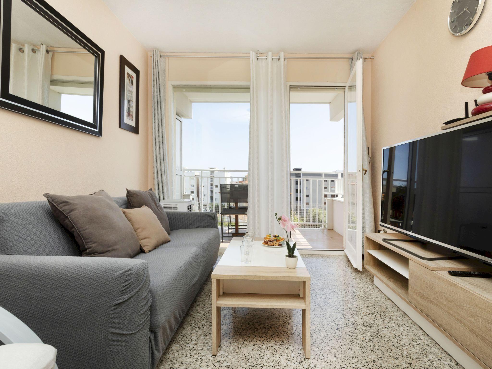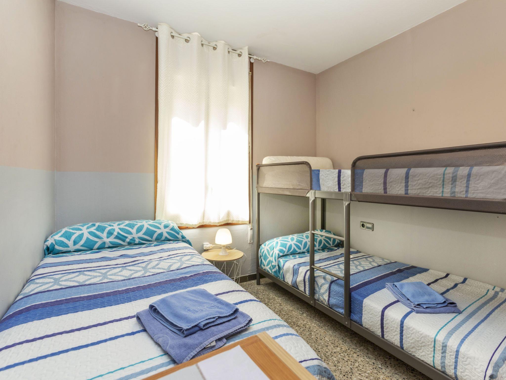 "Montcada", 3-room apartment 60 m2 on 3rd floor. Practical furnishings: living/dining room with digital TV and flat screen. Exit to the terrace. 1 room with 1 french bed (150 cm, length 190 cm), fan. 1 room with 1 bed (90 cm, length 190 cm), 1 x 2 bunk beds (90 cm, length 190 cm), fan. Kitchen (oven, dishwasher, 3 ceramic glass hob hotplates, toaster, kettle, microwave, electric coffee machine, Capsules for coffee machine (Senseo) extra) with boiler (80 litres). Shower/bidet/WC. Forced-air heating. Terrace furniture. View of the resort. Facilities: washing machine, iron, hair dryer. Internet (WiFi, free). Please note: non-smokers only. HUTT-074332 // Reg. Nr.: ESFCTU00004302400024710900000000000000000HUTT-0743327