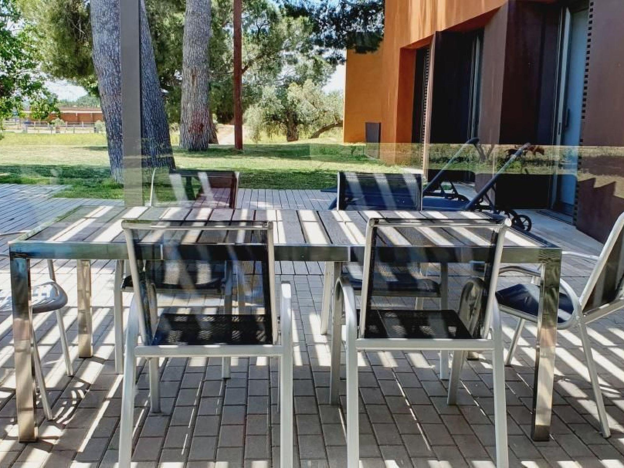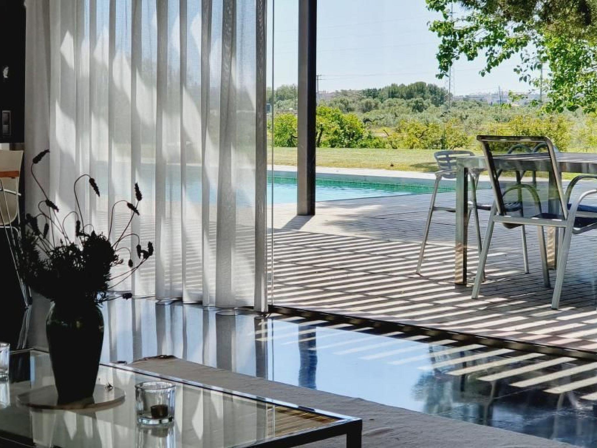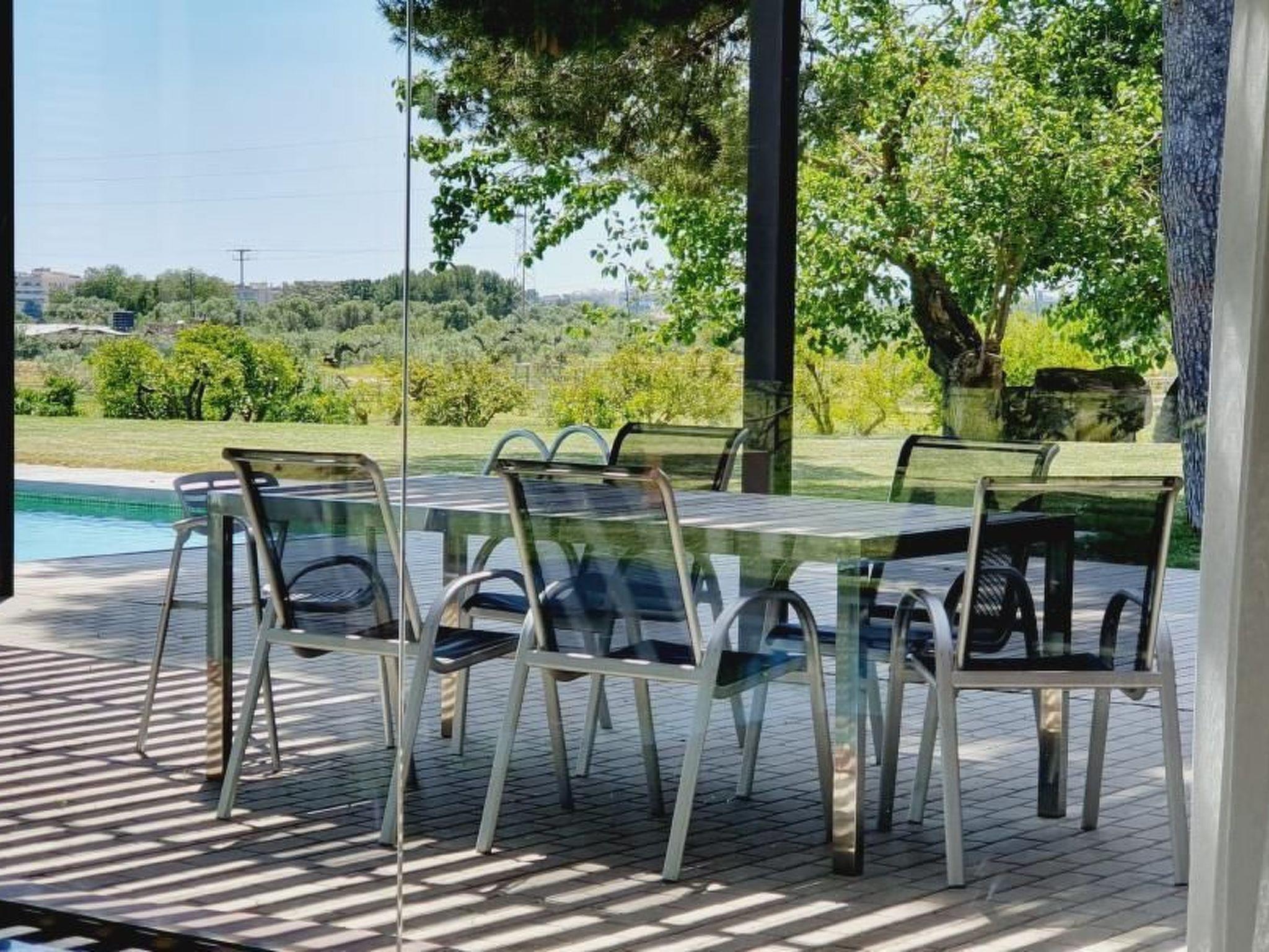 Modern, luxurious, detached villa with garden and large pool (5x14 metres) and lots of privacy. The house is at ground level, i.e. all rooms are on the same floor. The large sandy beach and the palm promenade in the centre of Salou are 7 minutes away by car (2.5 km). Even closer are Port Aventura, Ferrari Land, Aquapolis and Aquum Spa. The villa has a spacious living room of approx. 55m2 and 4 large bedrooms between 16-25m2 and has a large garden with terrace furniture and deckchairs, barbecue area and beautiful trees. The villa is surrounded by an organic farm consisting of fruit trees (apricots, oranges, lemons, limes, mandarins, figs, persimmons, pomegranates, pears, apples, quinces, etc.), olive trees and a pine forest. You can eat the fruit from the trees yourself. In total, the property on which the house stands comprises 55,000m2 of fenced land. In January 2025, major maintenance and renovation work was carried out and parts of the furniture inventory were newly acquired. As well as the installation of a new air conditioning system and insect screens in all bedrooms and living room.
