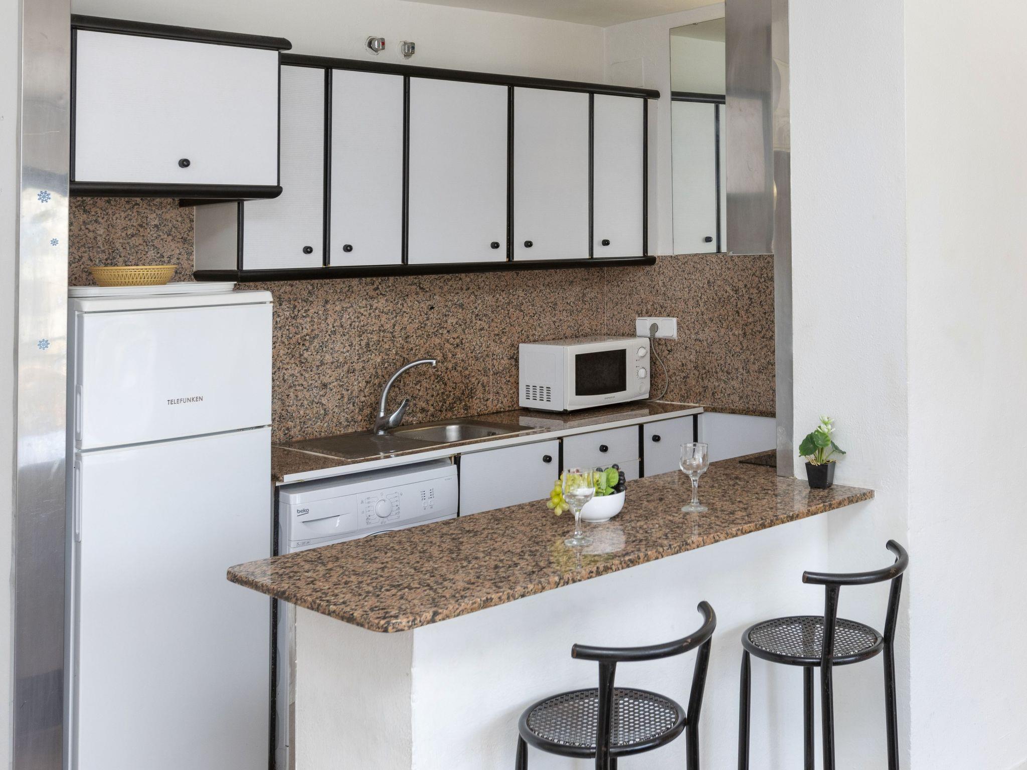 "Riviera Park J 56", 2-room apartment 40 m2. Practical and cosy furnishings: living/dining room with 1 sofabed and digital TV. Exit to the terrace. 1 room with 2 beds (90 cm, length 180 cm). Open kitchen (oven, 4 ceramic glass hob hotplates, kettle, microwave, freezer, electric coffee machine) with bar. Bath/bidet/WC. Air-conditioning, forced-air heating. Terrace 10 m2. Terrace furniture, deck chairs (2). View of the swimming pool. Facilities: washing machine, iron, hair dryer. Internet (WiFi, free). HUTT-010662 // Reg. Nr.: ESFCTU00004302400046110900000000000000HUTT-010662-138