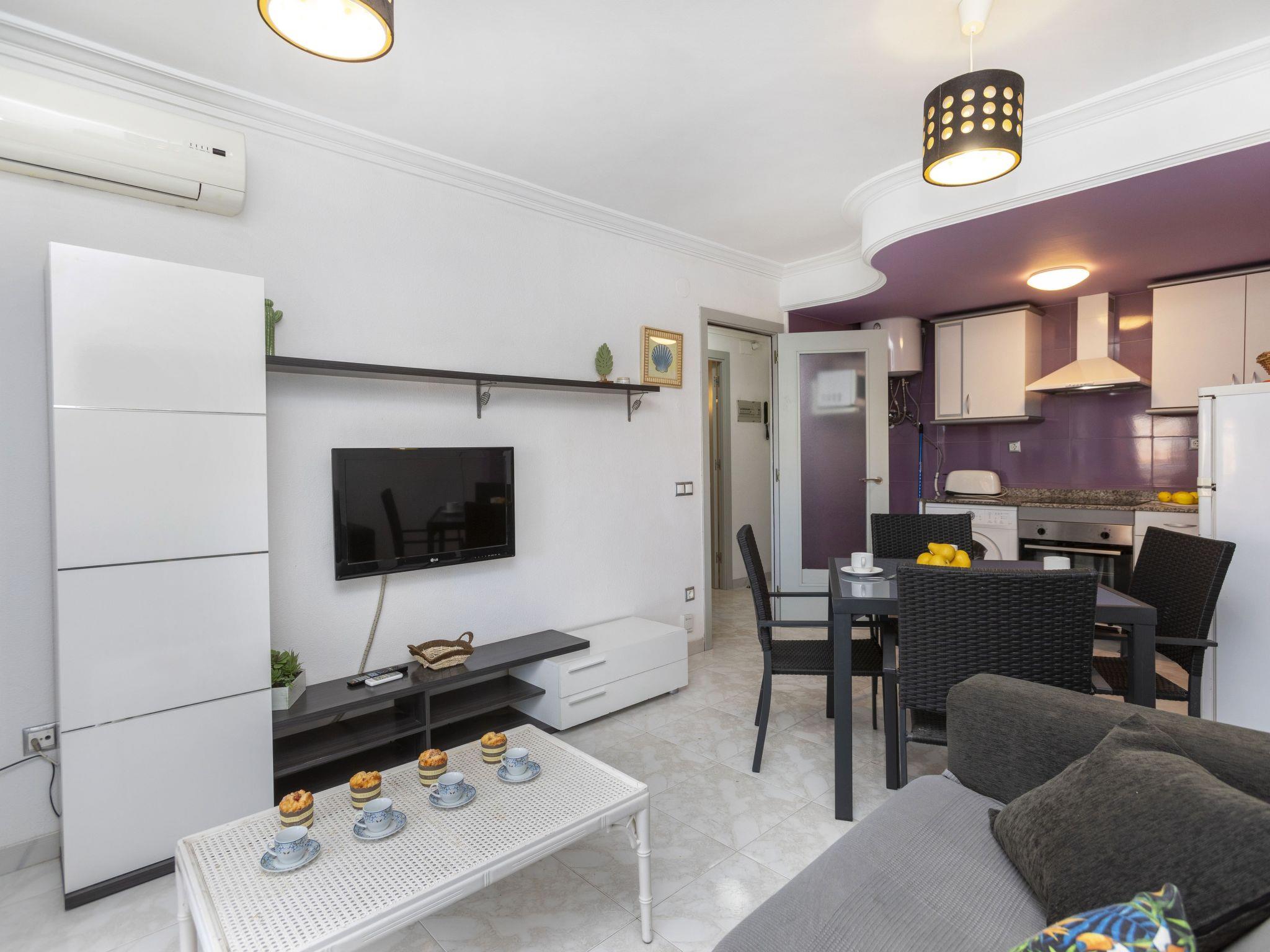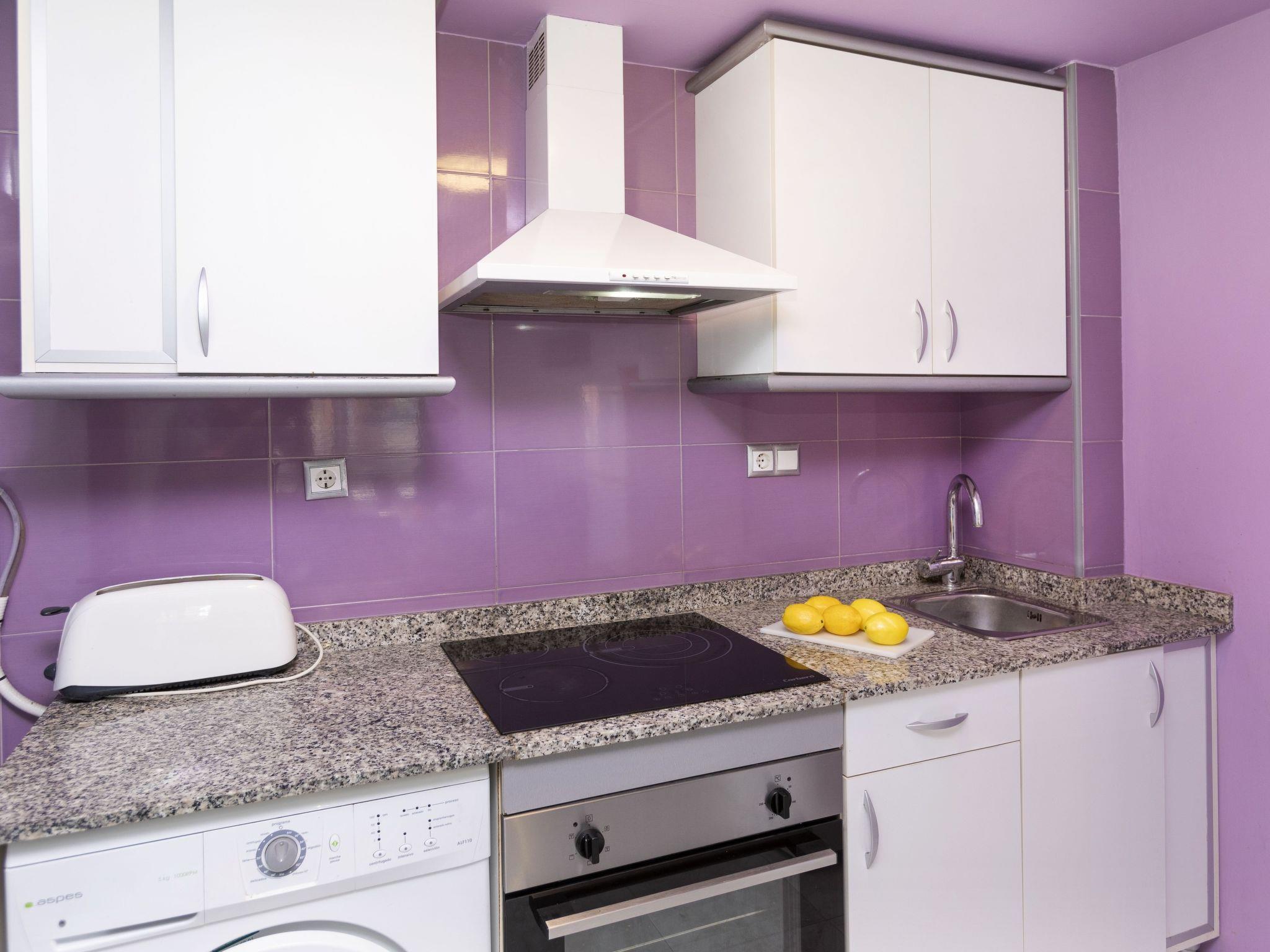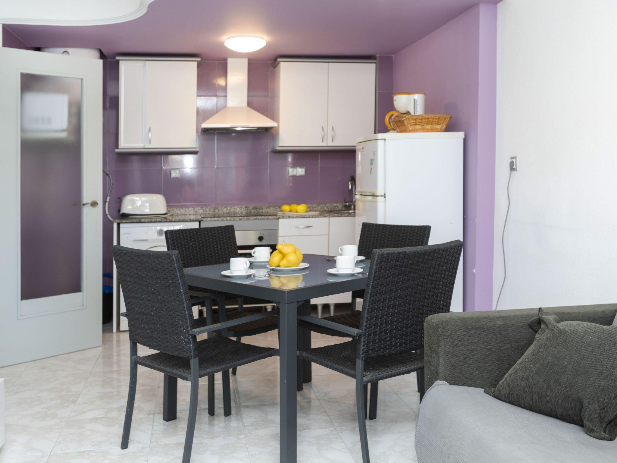 "Jardines Family 206", 2-room apartment 50 m2 on 2nd floor. Practical and comfortable furnishings: living/dining room with 1 double sofabed, air conditioning and forced-air heating. Exit to the terrace. 1 room with 1 french bed (135 cm, length 190 cm), air conditioning and forced-air heating. Open kitchen (oven, 3 ceramic glass hob hotplates, toaster, kettle, microwave, freezer, electric coffee machine). Shower/WC. Terrace furniture. View of the city. Facilities: washing machine, safe, iron, hair dryer. Internet (WiFi, free). Parking space n 26 (roofed). Maximum 1 pet/ dog allowed. HUTT-006482 // Reg. Nr.: ESFCTU00004302400048590700000000000000HUTT-006482-900