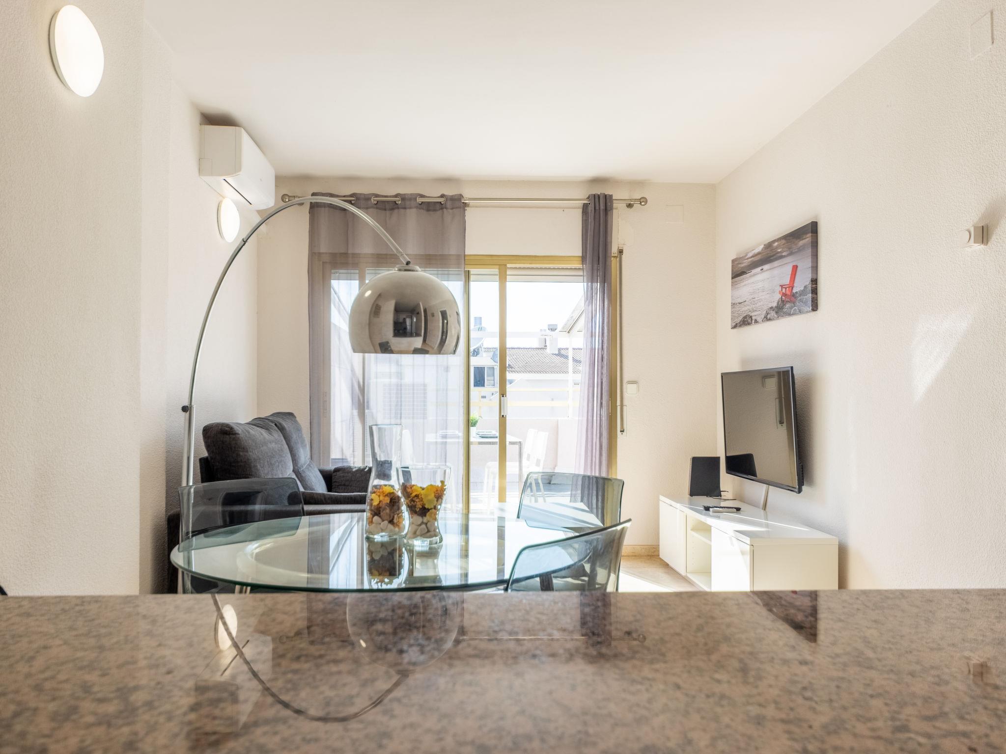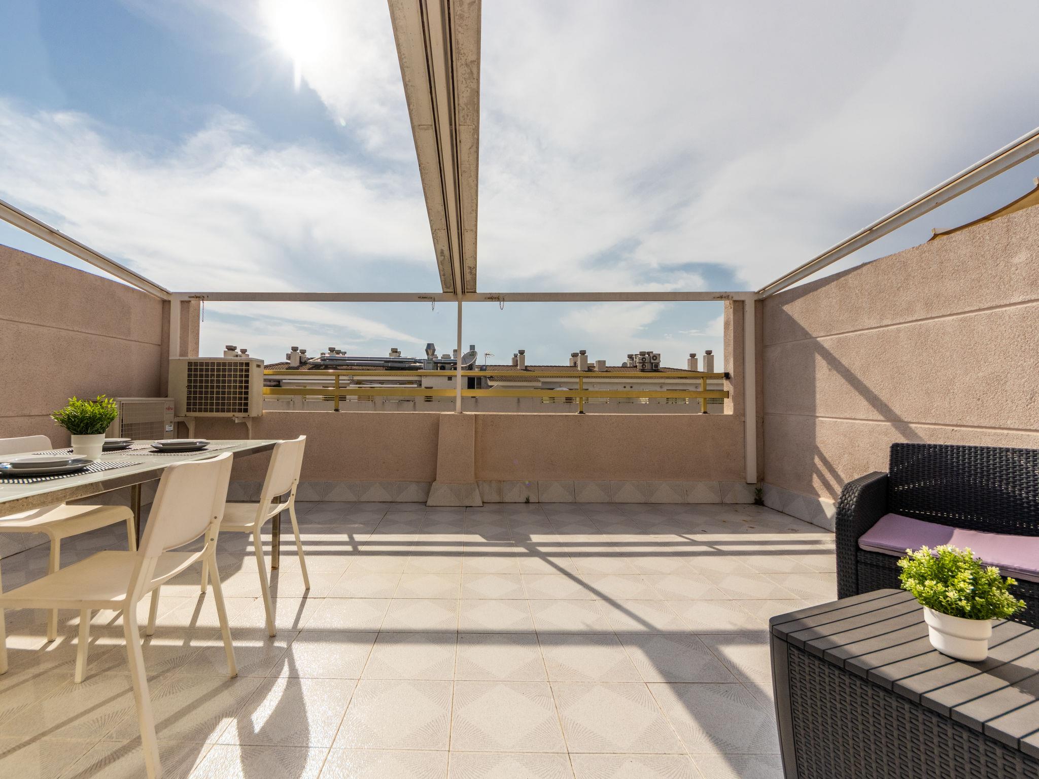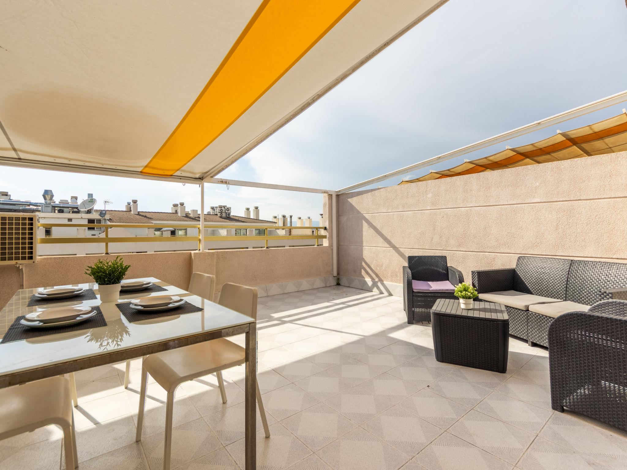 2-room penthouse 40 m2. Bright, practical and comfortable furnishings: living/dining room with 1 double sofabed, digital TV, air conditioning and forced-air heating. Exit to the terrace. 1 room with 1 french bed (140 cm, length 190 cm). Exit to the terrace. Open kitchen (oven, 3 ceramic glass hob hotplates, toaster, kettle, microwave, freezer, electric coffee machine). Bath/WC. Heating, air-conditioning. Heating not available in all rooms. Facilities: iron, hair dryer. Internet (WiFi, free). At 200 m. HUTT-043660 // Reg. Nr.: ESFCTU00004302400034755700000000000000000HUTT-0436609
