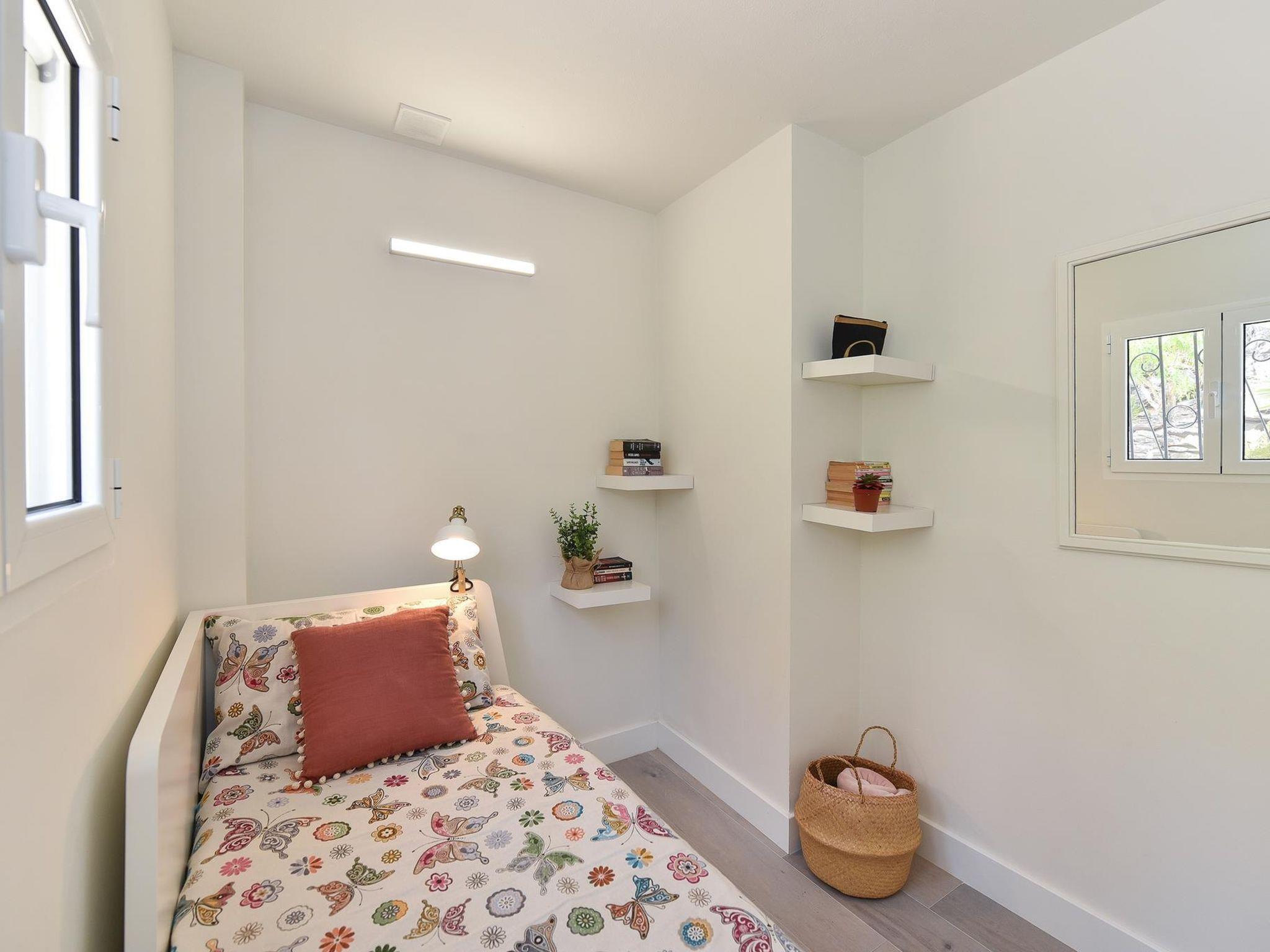"Bungalow Rocas Rojas 406B", 4-room house 80 m2. Object suitable for 5 adults + 1 child. Comfortable and modern furnishings: living/dining room with dining table and digital TV. Exit to the balcony. 2 rooms, each room with 2 beds. 1 room with 1 pull-out bed (2 pers.). Kitchen (oven, dishwasher, 3 ceramic glass hob hotplates, toaster, kettle, microwave, freezer, electric coffee machine). Shower/WC. Balcony. Balcony furniture. View of the forest. Facilities: washing machine, safe, iron, children's high chair, baby cot for up to 2 year olds, hair dryer. Internet (WiFi, free). Please note: non-smokers only. 2022-T3935 // Reg. Nr.: ESFCTU0000350120001887450000000000000VV-35-1-00172479