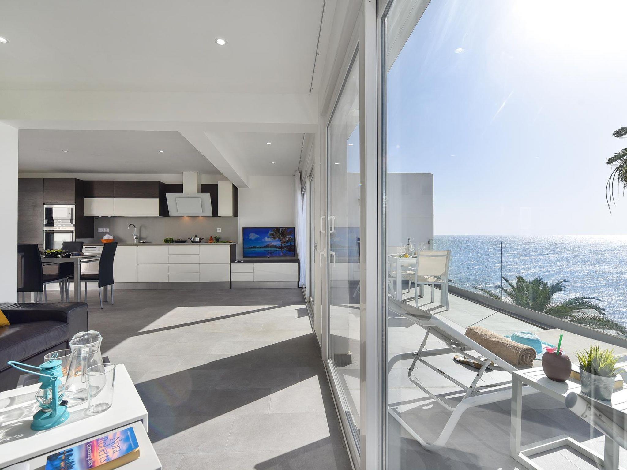 Modern, comfortable apartment block "Nueva Suecia CR715". In the centre of San Agustín, in a central, busy position, 10 m from the sea, 10 m from the beach. In the house: air conditioning. Parking on the premises. Shop, supermarket 150 m, restaurant 800 m, bus stop "Clinica Roca" 400 m. The owner does not accept any youth groups. Please note: airfield 33 km from the property. Neighbourhood highly sensitive to noise. Quietness and good behaviour expected.