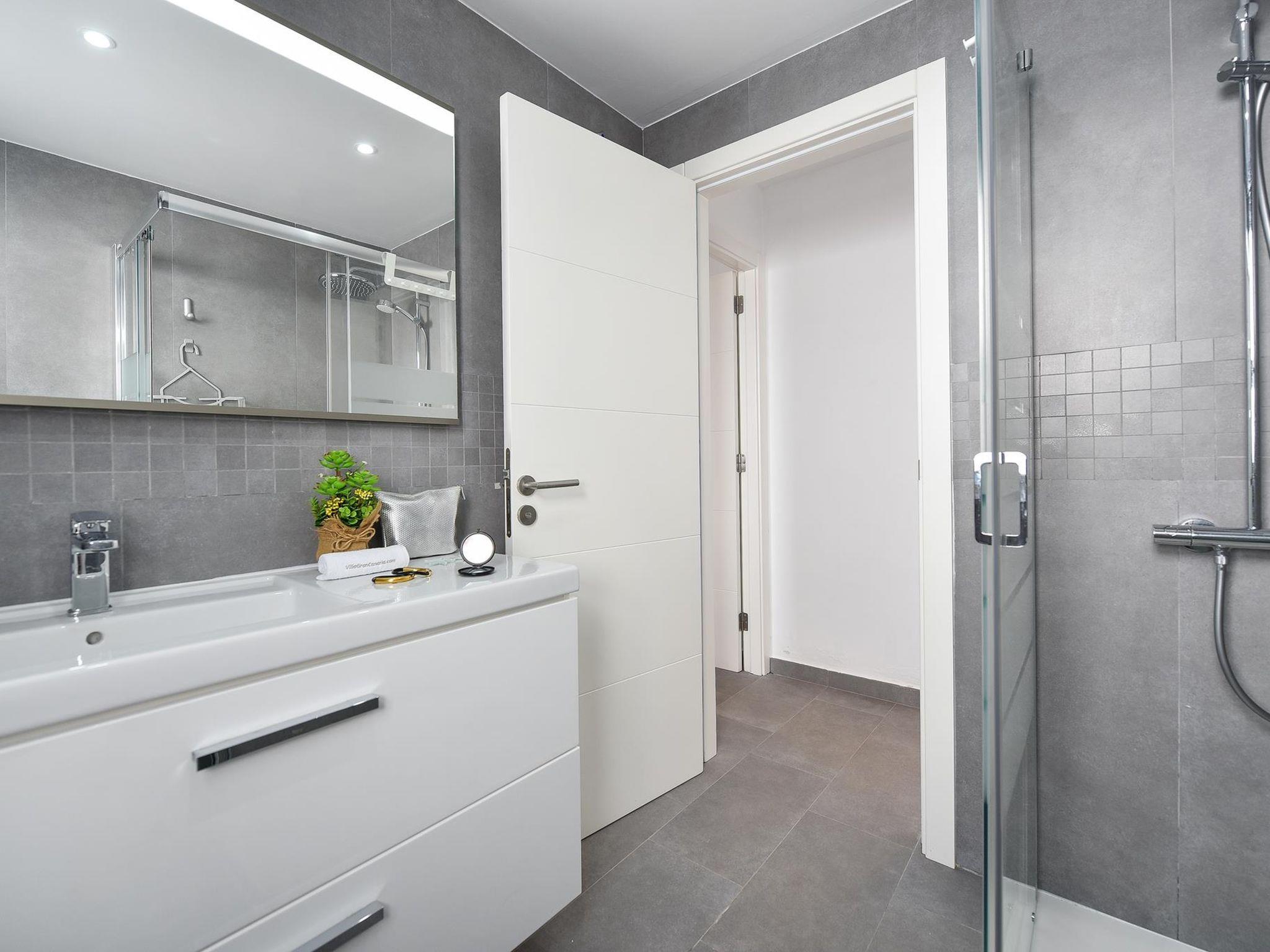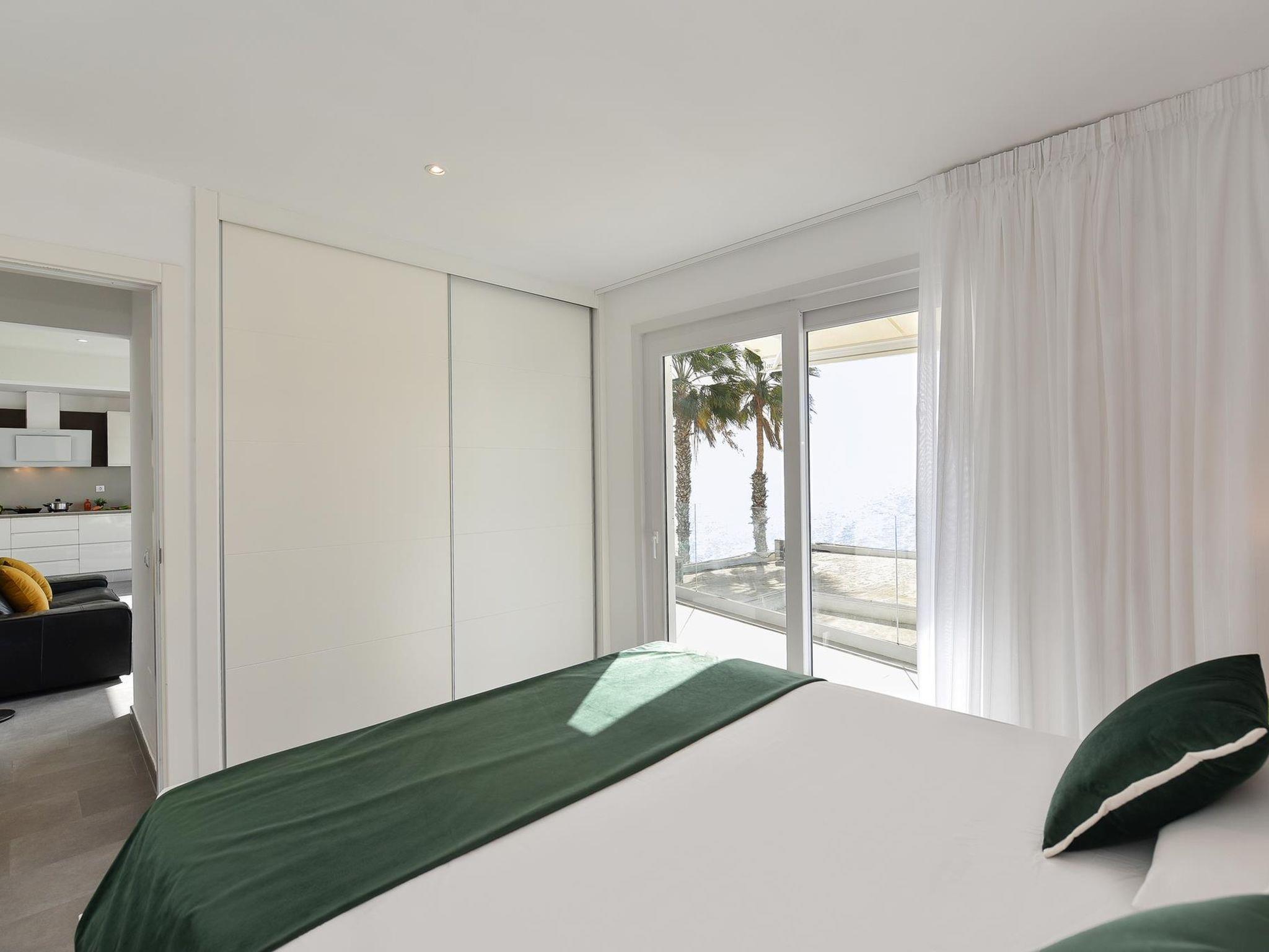 "Nueva Suecia CR715", 4-room apartment 90 m2. Modern and cosy furnishings: living room with digital TV and air conditioning. Exit to the balcony. 1 room with 1 french bed and air conditioning. 1 room with 2 beds and air conditioning. 1 room with 1 french bed. Open kitchen (oven, dishwasher, 3 ceramic glass hob hotplates, toaster, kettle, microwave, freezer, electric coffee machine) with dining table. Shower/WC. Balcony, terrace. Terrace furniture, balcony furniture, deck chairs. View of the sea and the forest. Facilities: washing machine, safe, iron, children's high chair, baby cot, hair dryer. Internet (WiFi, free). Parking (1 car). Please note: non-smokers only. 1 small pet/ dog allowed. 2022-T1946 // Reg. Nr.: ESFCTU0000350120001638960000000000000VV-35-1-00170468