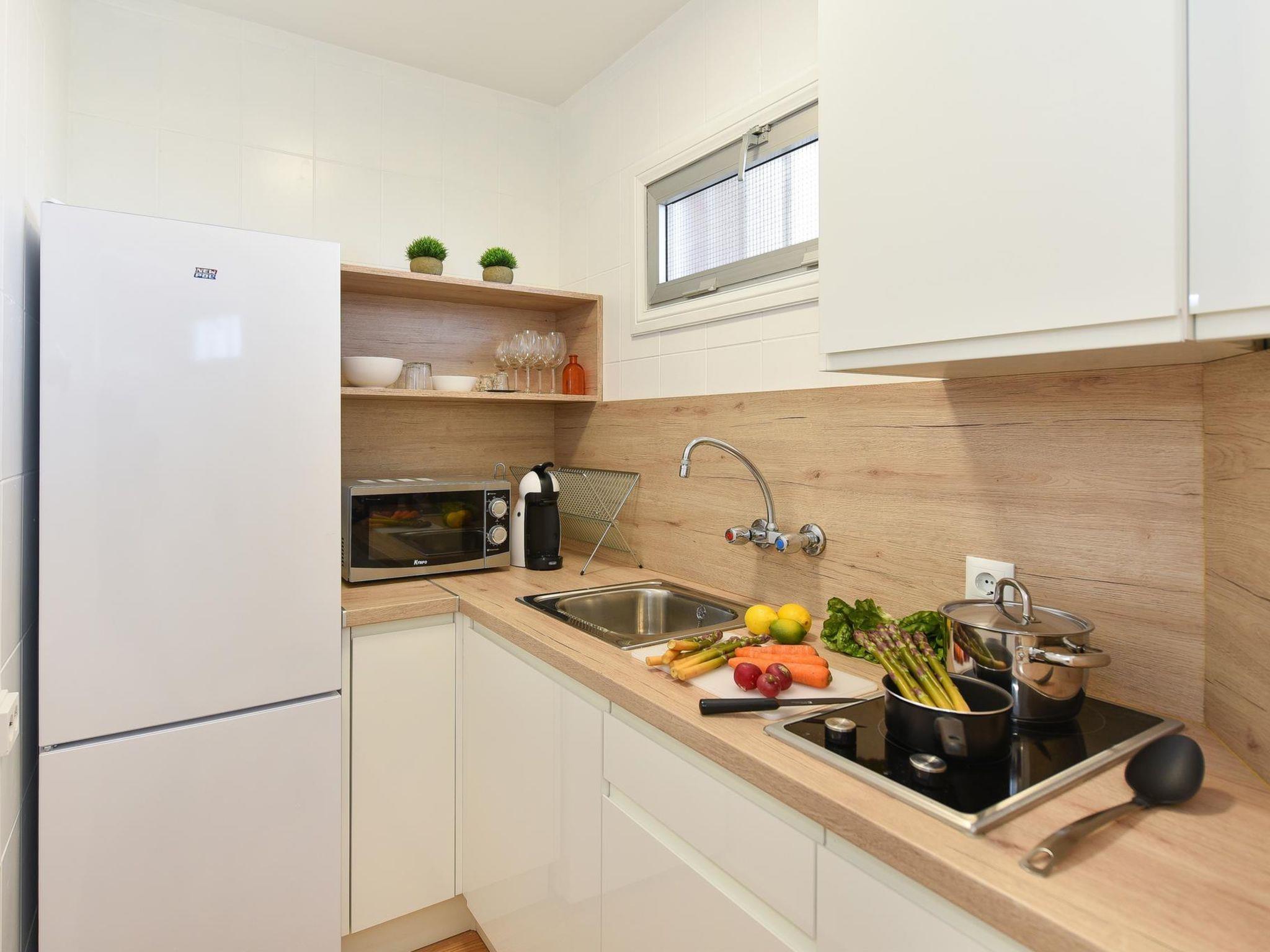 "Balcon", 1-room apartment 45 m2. Simple and cosy furnishings: living/sleeping room with 1 french bed, dining table, satellite TV and digital TV. Kitchen (2 ceramic glass hob hotplates, toaster, kettle, microwave, freezer, electric coffee machine). Shower/WC. View of the sea. Facilities: washing machine, safe, iron, children's high chair, baby cot for up to 2 year olds, hair dryer. Internet (WiFi, free). Please note: non-smokers only. 2021-T3330 // Reg. Nr.: ESFCTU0000350120000212640000000000000VV-35-1-00157010