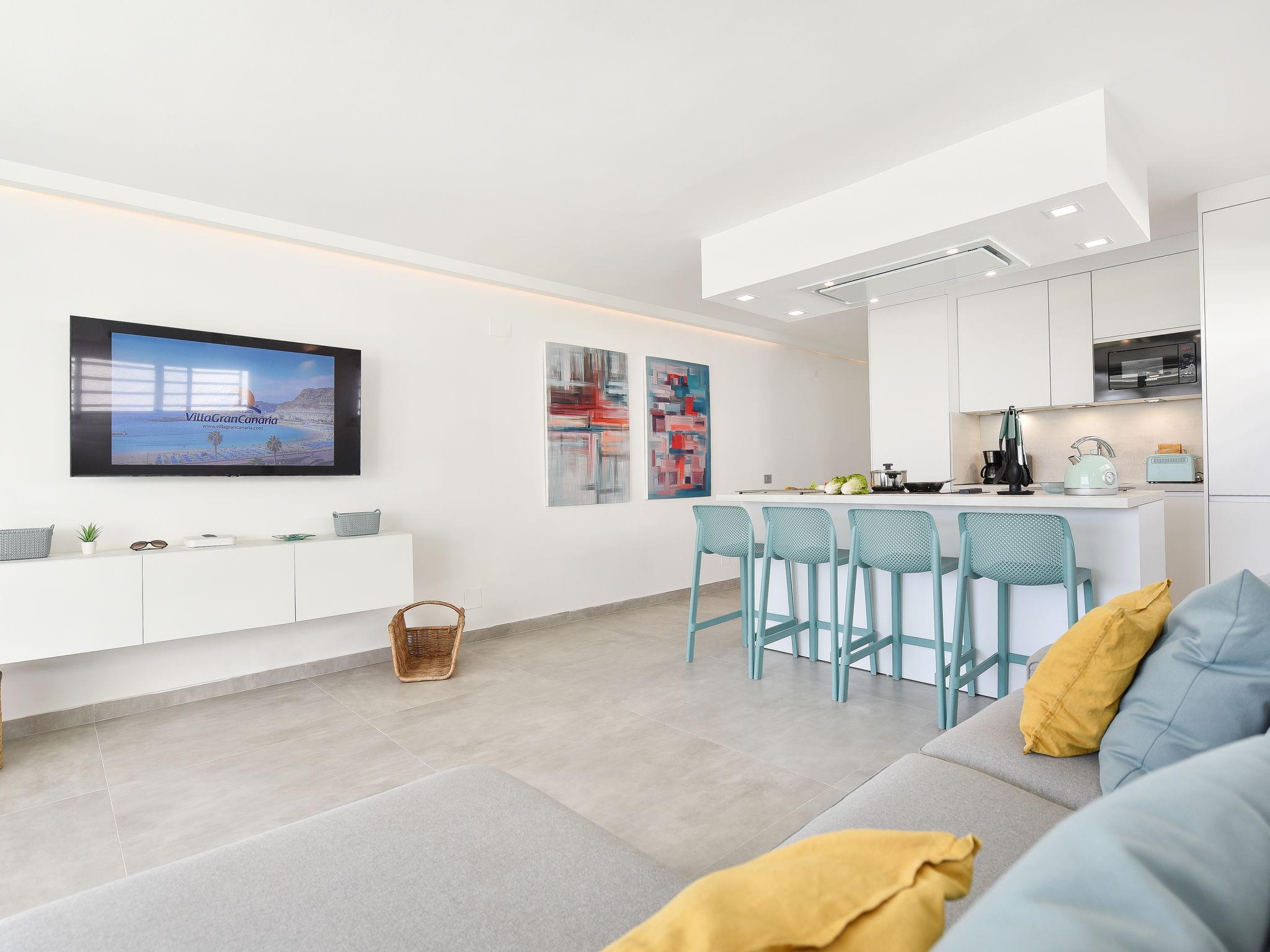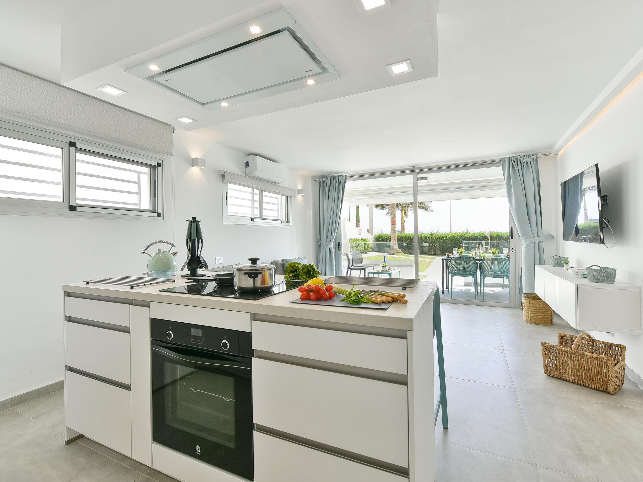 "Las Nasas 1", 3-room apartment on the lower ground floor. Object suitable for 4 adults. Bright, practical furnishings: living room with digital TV, flat screen and air conditioning. Exit to the terrace. 1 double bedroom with 1 french bed. 1 double bedroom with 2 beds with shower/WC. Kitchen (oven, dishwasher, toaster, kettle, microwave, electric coffee machine) with bar. Deck chairs. View of the sea. Facilities: washing machine. Internet (WiFi, free). Please note: suitable for families. Non-smoking house. Late check-in carries the following charges, to be paid in cash upon arrival: -Between 20:30 and 22:00 - EUR 30 -Between 22:00 and 00:00 - EUR 50 -Between 00:00 and 01:30 - EUR 80. 2021-T8642 // Reg. Nr.: ESFCTU0000350120002561610000000000000VV-35-1-00164410