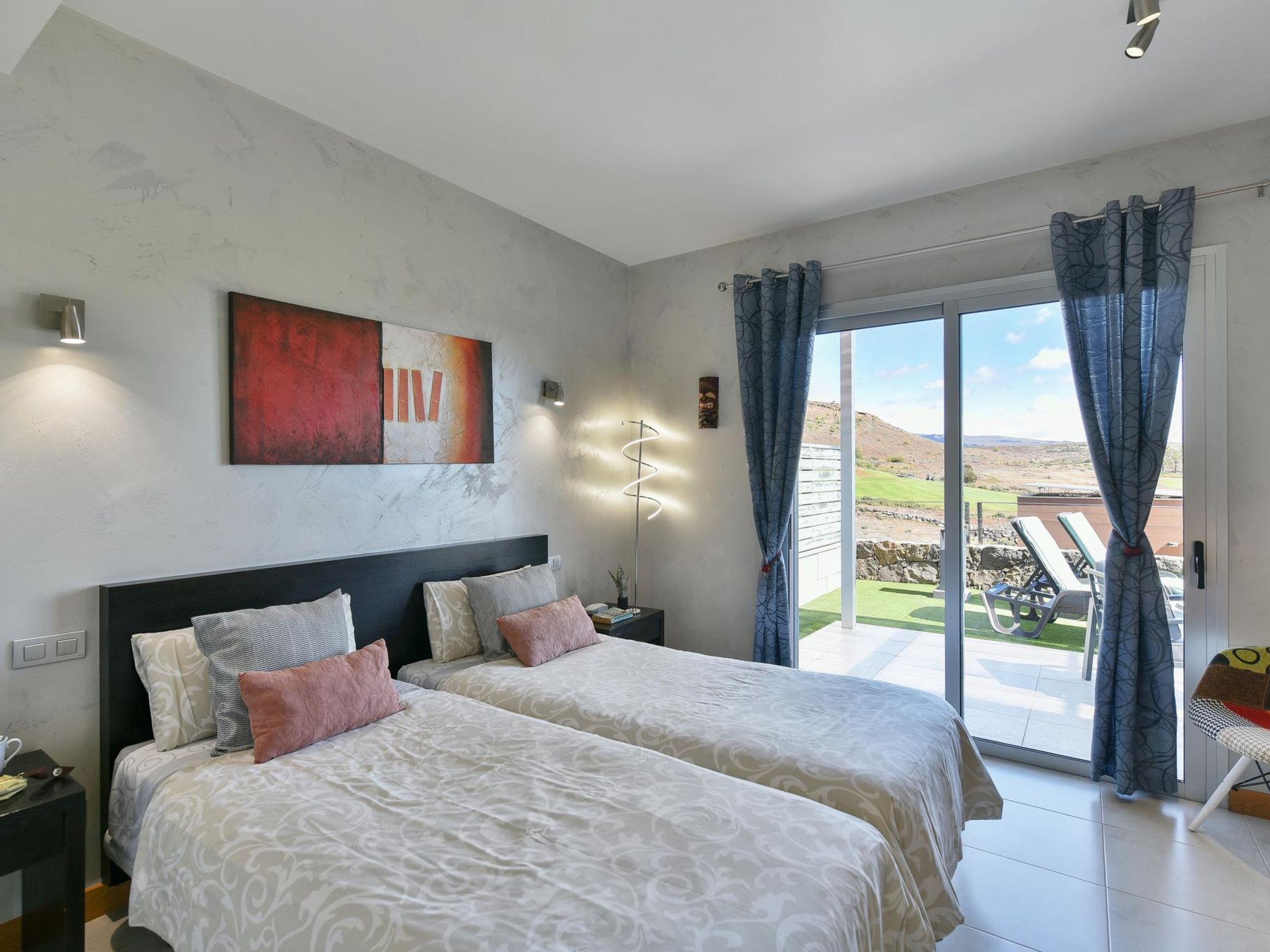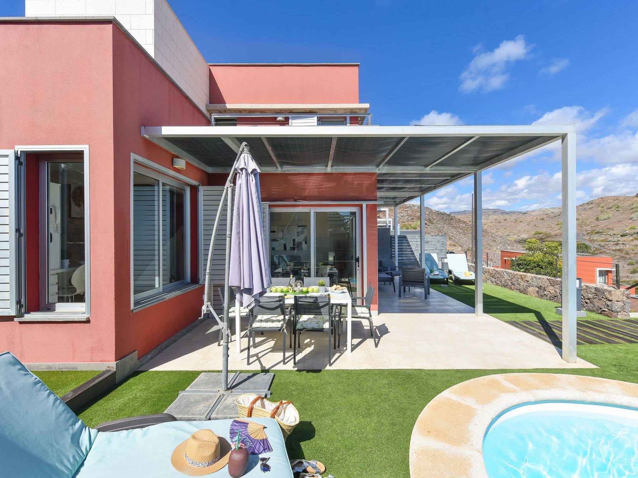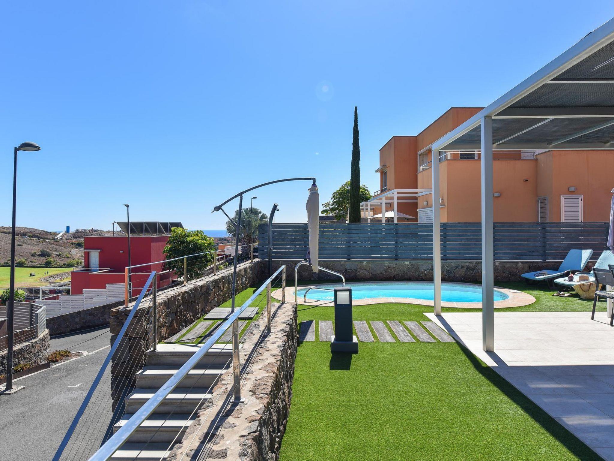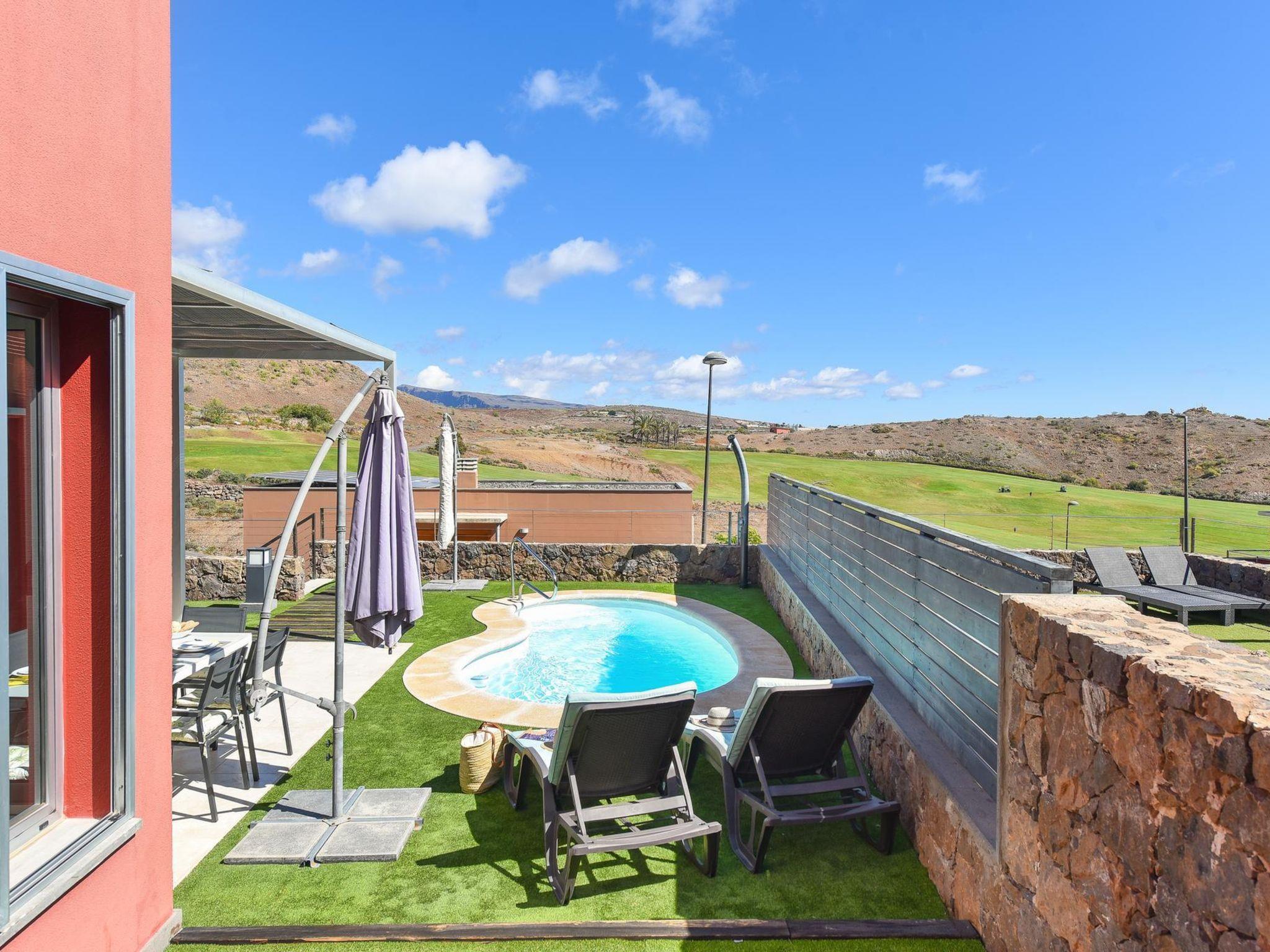 Modern, comfortable villa "Vista Golf 5". On the outskirts Maspalomas, in a secluded, quiet position. Private: garden (fenced) with lawn, swimming pool kidney shaped (seasonal availability: 01.Jan. - 31.Dec.). Outdoor shower, barbecue. In the house: sun terrace. Parking on the premises, public parking on the road. Shop, supermarket, restaurant 500 m, bus stop "Las Crucitas" 20 km. The owner does not accept any youth groups. Please note: airfield 25 km from the property. Neighbourhood highly sensitive to noise. Quietness and good behaviour expected.