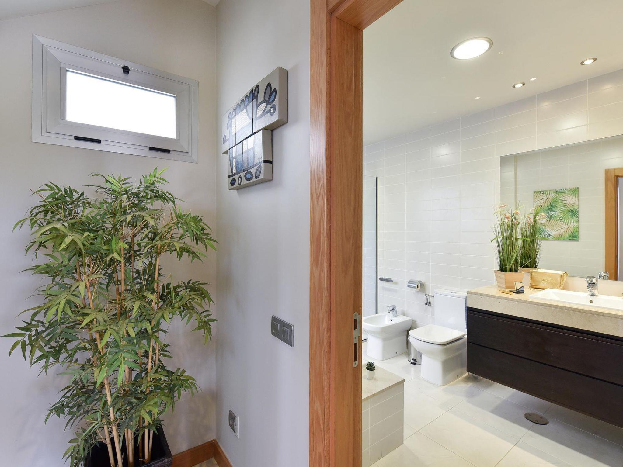 "Vista Golf 5", 3-room house 105 m2. Comfortable and modern furnishings: living room with digital TV and air conditioning. Exit to the patio, to the swimming pool. 1 room with 2 beds and air conditioning. Exit to the patio, to the swimming pool. Kitchen (oven, dishwasher, 3 ceramic glass hob hotplates, toaster, kettle, microwave, freezer, electric coffee machine) with dining table and dining nook. Shower/bidet/WC. Upper floor: 1 room with 1 french bed and air conditioning. Exit to the balcony. Shower/bidet/WC. Patio. Terrace furniture, barbecue, deck chairs. View of the garden and the forest. Facilities: washing machine, iron, children's high chair, baby cot for up to 2 year olds, hair dryer. Internet (WiFi, free). Parking (1 car). Please note: non-smoking house. Maximum 1 pet/ dog allowed. 2022-T6481 // Reg. Nr.: ESFCTU0000350120004894390000000000000VV-35-1-00175146