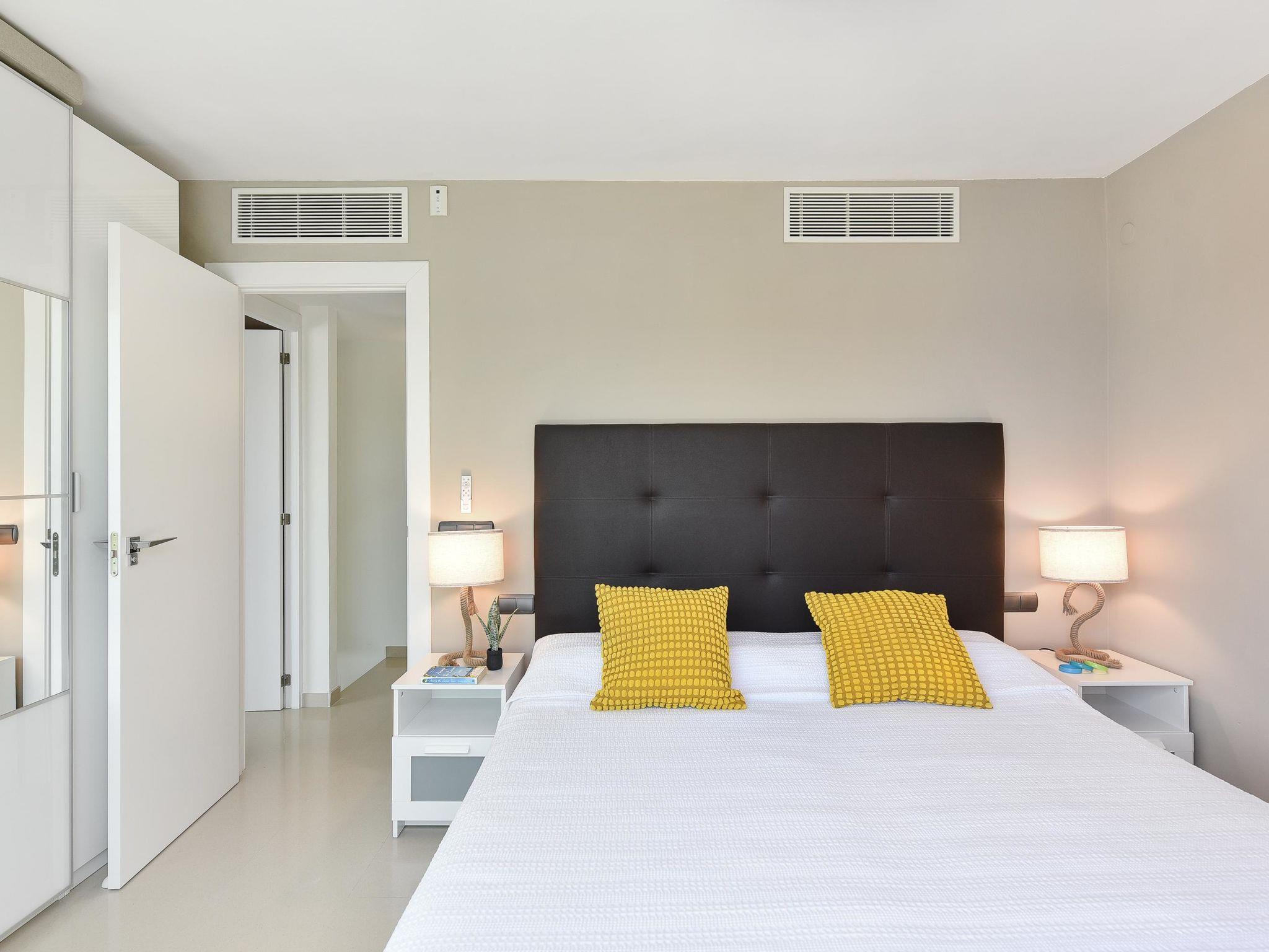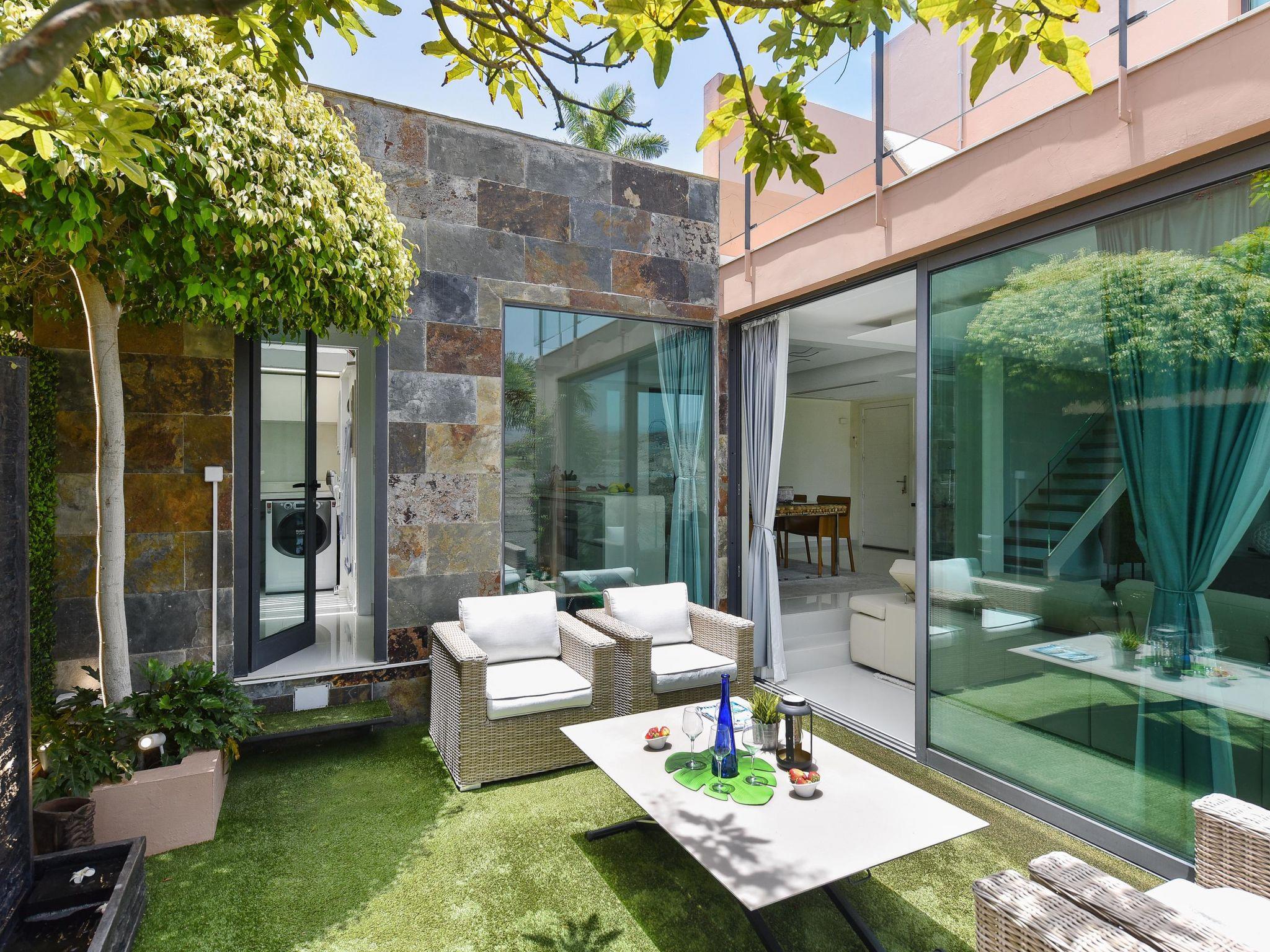 "Los Lagos 31", 4-room house 130 m2. Comfortable and modern furnishings: living/dining room with dining table, digital TV and air conditioning. Exit to the patio. 1 room with 1 french bed, shower/WC and air conditioning. Exit to the garden. Kitchen (oven, dishwasher, 3 ceramic glass hob hotplates, toaster, kettle, microwave, freezer, electric coffee machine, Capsules for coffee machine (Nespresso) extra) with dining nook. Upper floor: 1 room with 1 french bed and air conditioning. Exit to the balcony. 1 room with 1 french bed and air conditioning. Shower/WC. Patio. Terrace furniture, deck chairs. View of golf course. Facilities: washing machine, iron, children's high chair, baby cot for up to 2 year olds, hair dryer. Internet (WiFi, free). Parking (1 car). Please note: non-smoking house. 2023-T5745 // Reg. Nr.: ESFCTU0000350120003157210000000000000VV-35-1-00196938