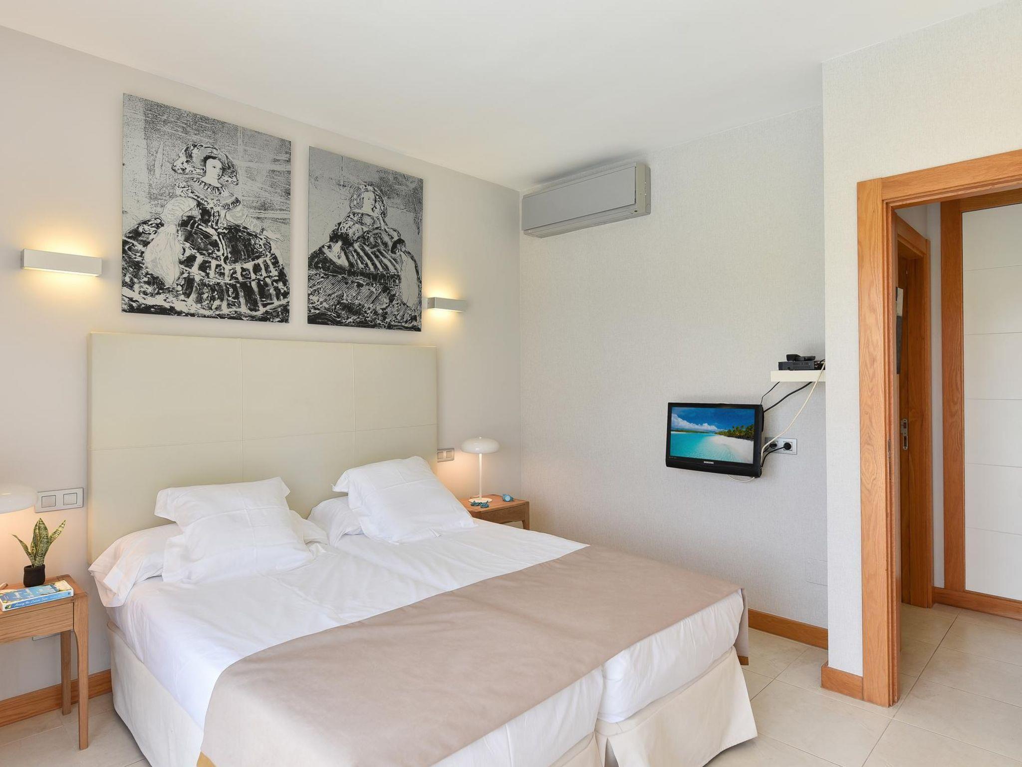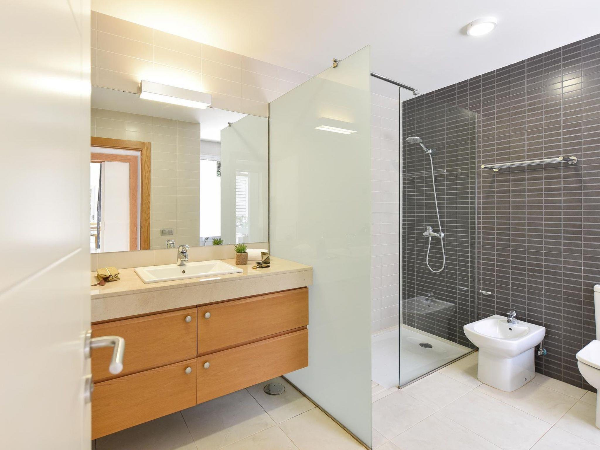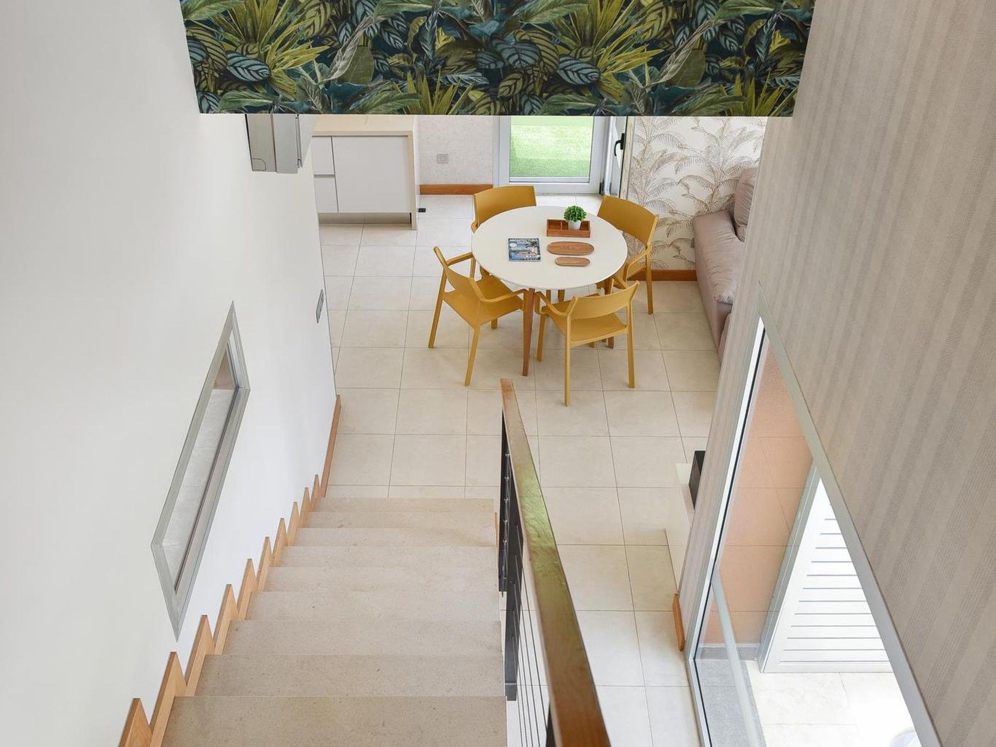 "Vista Golf 10", 3-room house 105 m2 on 2 levels. Comfortable and modern furnishings: living room with digital TV and air conditioning. Exit to the patio, to the swimming pool. 1 room with 2 beds and air conditioning. Exit to the patio, to the swimming pool. Kitchen-/living room (oven, dishwasher, 3 ceramic glass hob hotplates, toaster, kettle, microwave, freezer, electric coffee machine) with dining table. Bath/bidet/WC. Upper floor: 1 room with 1 french bed and air conditioning. Exit to the balcony. Shower/bidet/WC. Patio. Terrace furniture, balcony furniture, barbecue, deck chairs. View of the garden and the forest. Facilities: washing machine, safe, iron, children's high chair, baby cot for up to 2 year olds, hair dryer. Internet (WiFi, free). Parking (1 car). Please note: non-smoking house. Maximum 1 pet/ dog allowed. 2023-T5471 // Reg. Nr.: ESFCTU0000350120004894840000000000000VV-35-1-00196592