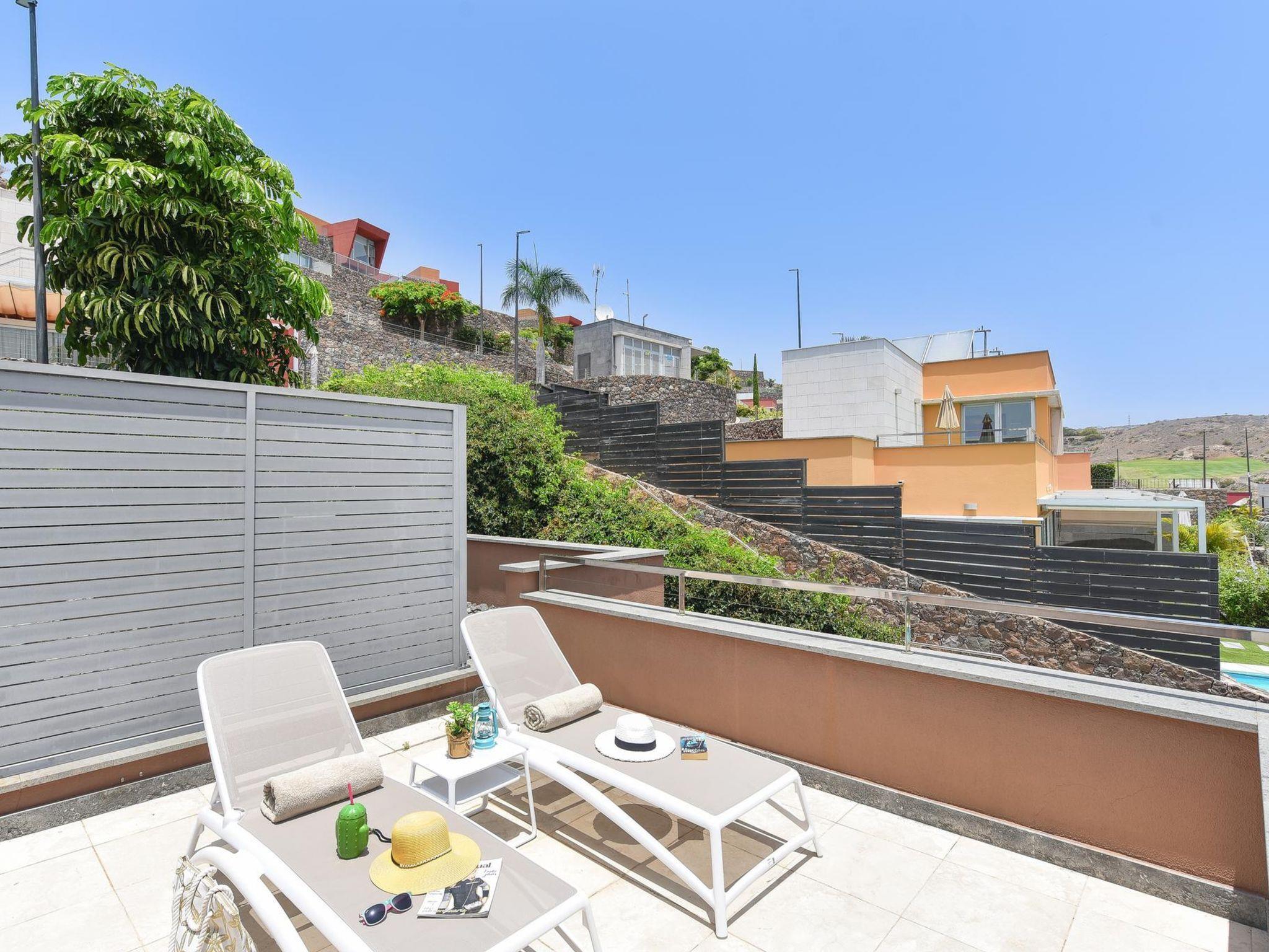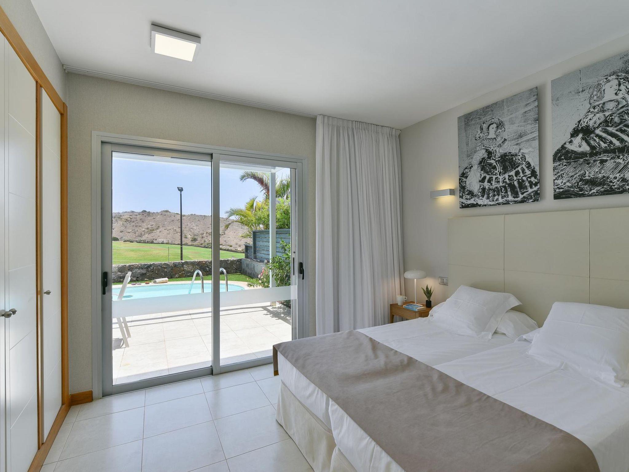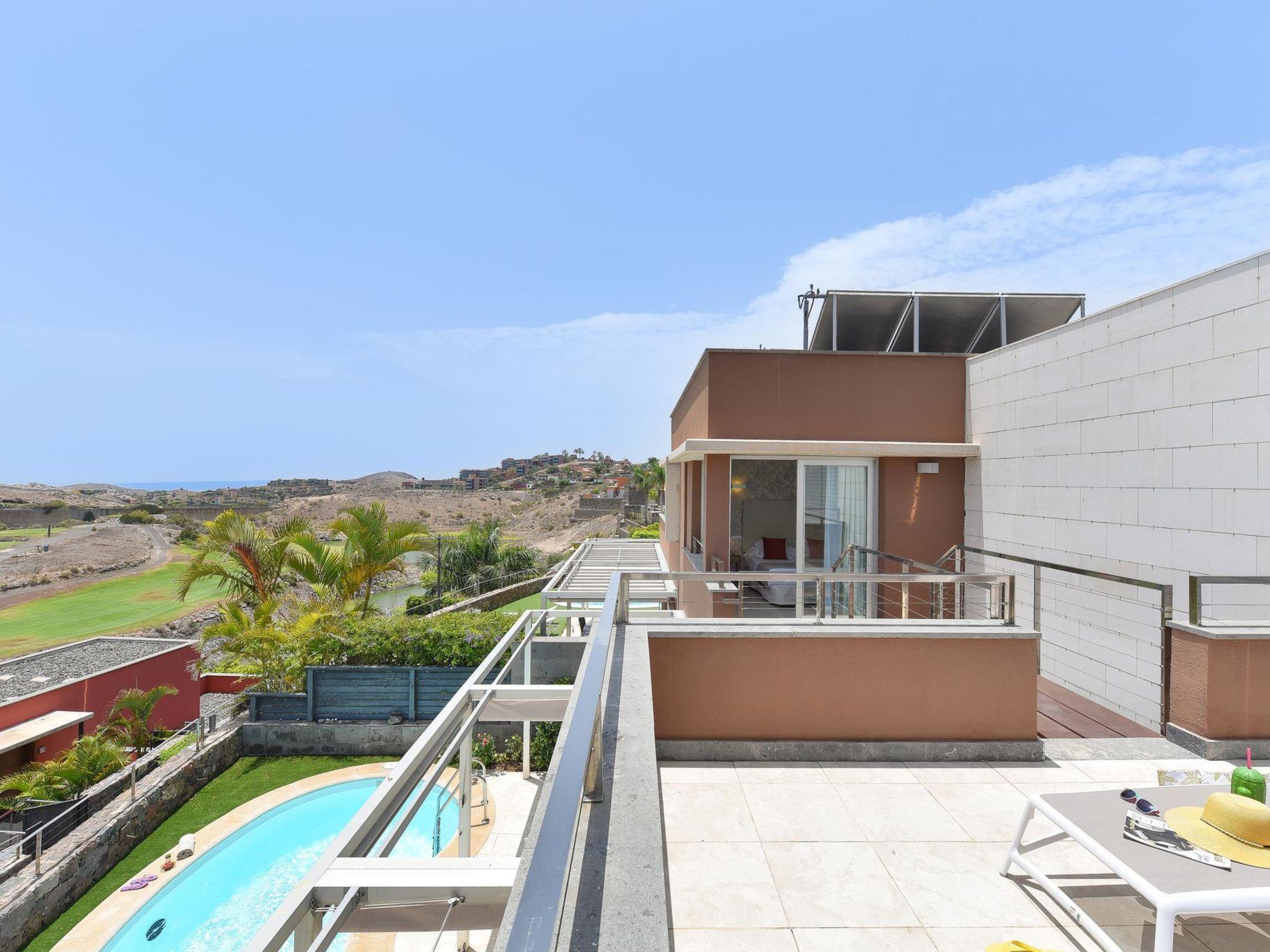 Modern, comfortable villa "Vista Golf 10". In the centre of Salobre Golf Resort, outside the resort Maspalomas, in a secluded, quiet position. Private: garden (fenced) with lawn, swimming pool kidney shaped (5 x 3 m, depth 140 - 140 cm, seasonal availability: 01.Jan. - 31.Dec.). Outdoor shower, barbecue. In the house: sun terrace, air conditioning. Parking on the premises, public parking on the road. Supermarket 400 m, restaurant 600 m, bus stop "Las Crucitas" 20 km. The owner does not accept any youth groups. Please note: airfield 25 km from the property. Neighbourhood highly sensitive to noise. Quietness and good behaviour expected.