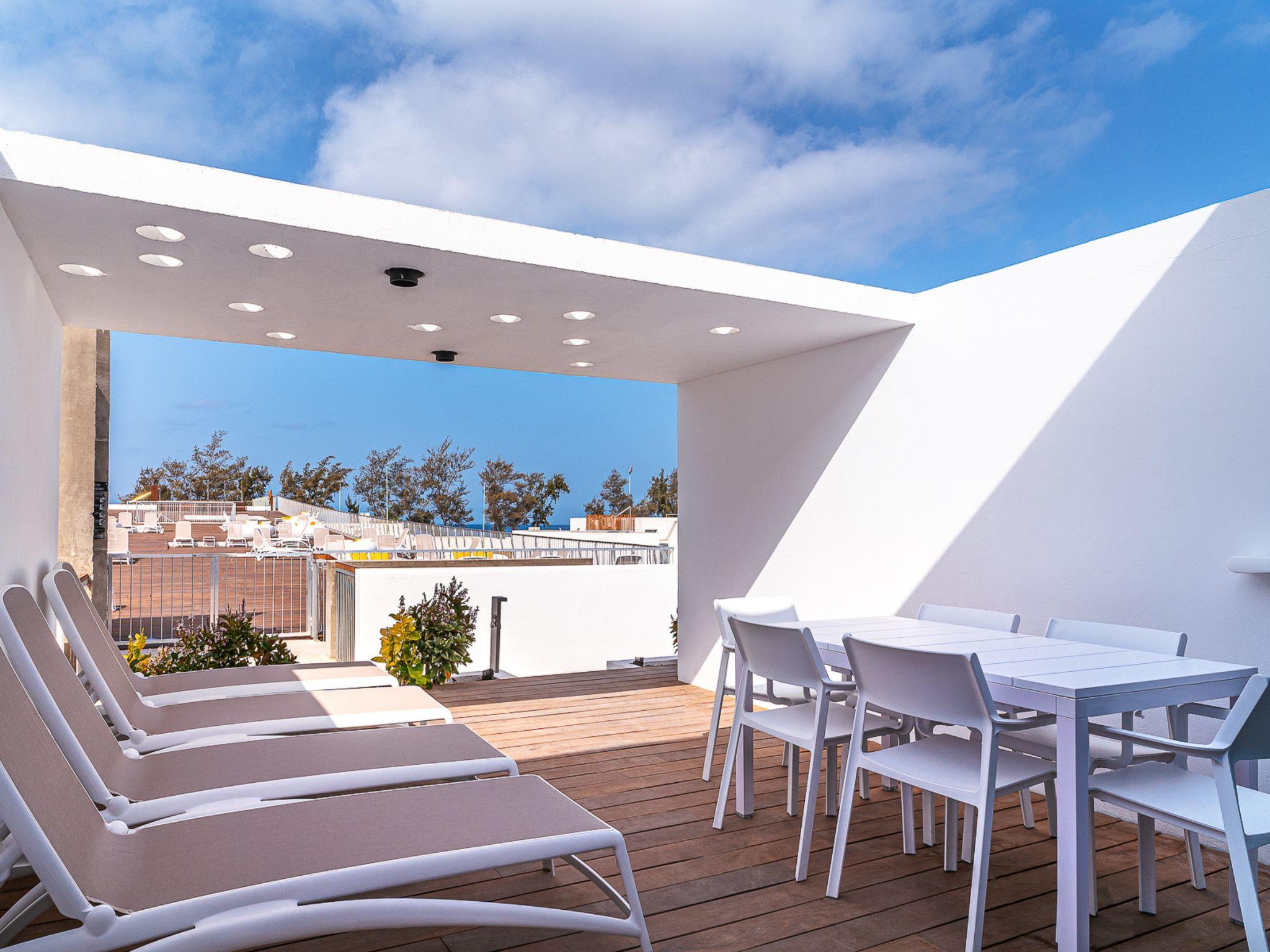 "Classic Duplex-Cordial Santa Águeda", 3-room apartment 80 m2 on 2 levels. Comfortable and luxurious furnishings: living/dining room with 1 sofabed (80 cm, length 200 cm), satellite TV, digital TV and air conditioning. 2 rooms, each room with 2 beds (90 cm, length 200 cm), satellite TV, digital TV and air conditioning. Open kitchen (dishwasher, 3 ceramic glass hob hotplates, toaster, microwave, freezer, electric coffee machine) with air conditioning. 2 showers/WC. No heating option. Porch. Terrace furniture, deck chairs (4). Beautiful view. Facilities: washing machine, dryer, safe, hair dryer. Internet (WiFi, free). E-charging station. Please note: suitable for families. Non-smokers only. VV-35-1-0015408 // Reg. Nr.: ESFCTU0000350120005373760000000000000VV-35-1-00154084