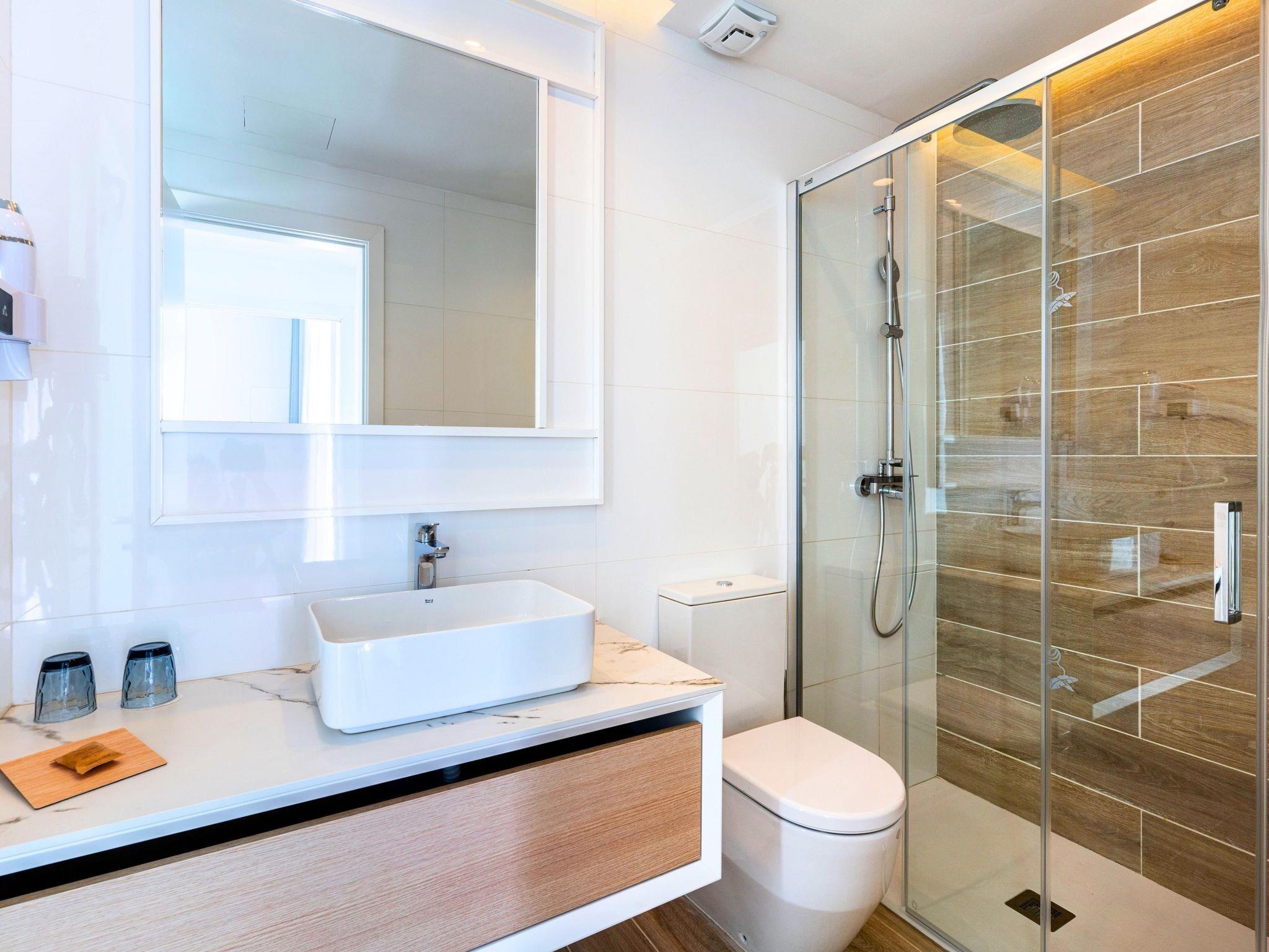 Beautiful, luxurious resort "Resort Cordial Santa Águeda". 300 m from the sea, 300 m from the beach. For shared use: swimming pool (seasonal availability: 01.Jan. - 31.Dec.). Private: swimming pool (seasonal availability: 01.Jan. - 31.Dec.). Terrace. In the house: WiFi, lift, washing machine, tumble dryer. Communal covered parking. E-charging station. Supermarket, restaurant 100 m, bar 100 m, bus stop 800 m, sandy beach "Playa de Santa Águeda" 300 m pebble beach "Playa Perchel" 500 m. Sports harbour 1 km. Nearby attractions: Perchel Beach Club 1 km. Please note: car recommended. Suitable for families, suitable for seniors. The owner does not accept any youth groups. Airfield 41 km from the property. The photo is just an example.