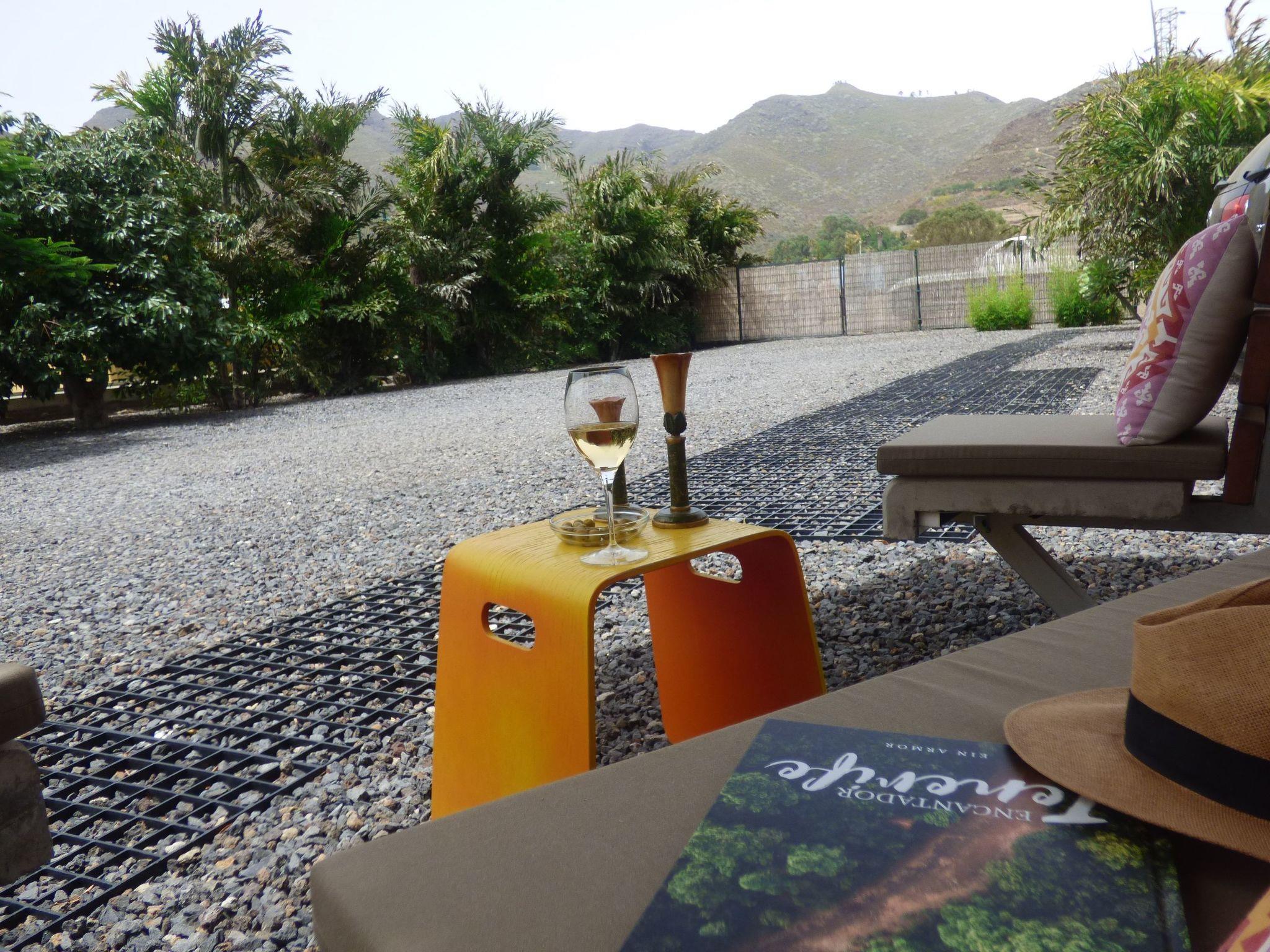 The main entrance of the cave has a cosy glazed porch of 15m2 equipped with garden furniture and reading lamp, allowing you to observe the stars with maximum comfort both in winter and summer. For better observation, a Konus telescope is available on request. The grounds are fenced so it is also perfect for children. There is a reading area under a Flamboyan tree composed of comfortable benches with cushions and small tables ideal to spend time enjoying the scenery. We have an organic vegetable garden with exotic fruit trees, aromatic herbs and vegetables, available for guests according to the harvesting season. THE POOL IS ATTACHED TO THE OWNERS' HOUSE. In this space, there is a terrace with four hammocks, two umbrellas, swimming pool, gardens with palm trees and seasonal flowers. In another part of the farm is also the association AMBAR, a non-governmental organization that works for the protection of donkeys and do activities in the educational, environmental and therapeutic with these great animals. If you wish, you can go hiking in the company of our donkeys, it is a unique experience that if you like nature and animals should not be missed. Check availability and price, the total of this amount will go to finance the AMBAR association.