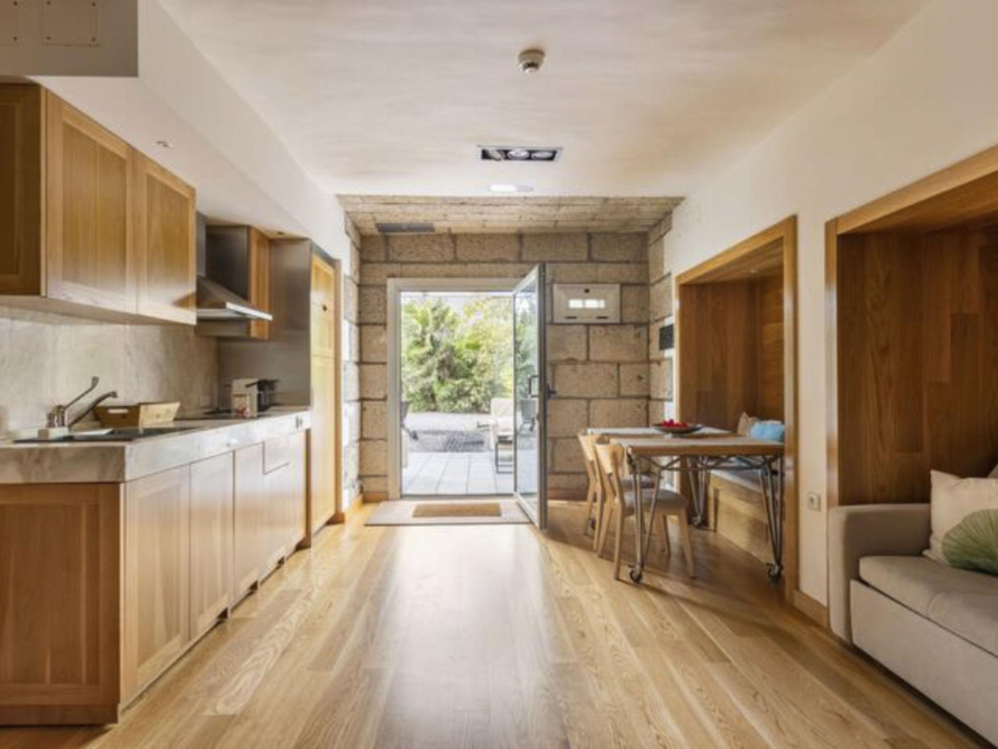 The ground floor of 40 m² consists of the following rooms: a living room with fireplace, Smart flat screen TV and sofa bed for one person; a fully equipped kitchen with induction, microwave, coffee maker, kettle. A bathroom adapted for people with reduced mobility with shower, Whirlpool bath, hairdryer, hair dryer, hair iron, ecological soap, etc. A bedroom with two beds of 90 x 1,90, Smart TV and desk. Thanks to the high ceilings of the main room, a 10 m² loft with two 90 x 1.90 Japanese style beds was built. At the entrance of the cave there is a 15 m² glass terrace with comfortable furniture; ideal for reading, contemplating the landscape or the stars and a small garden.