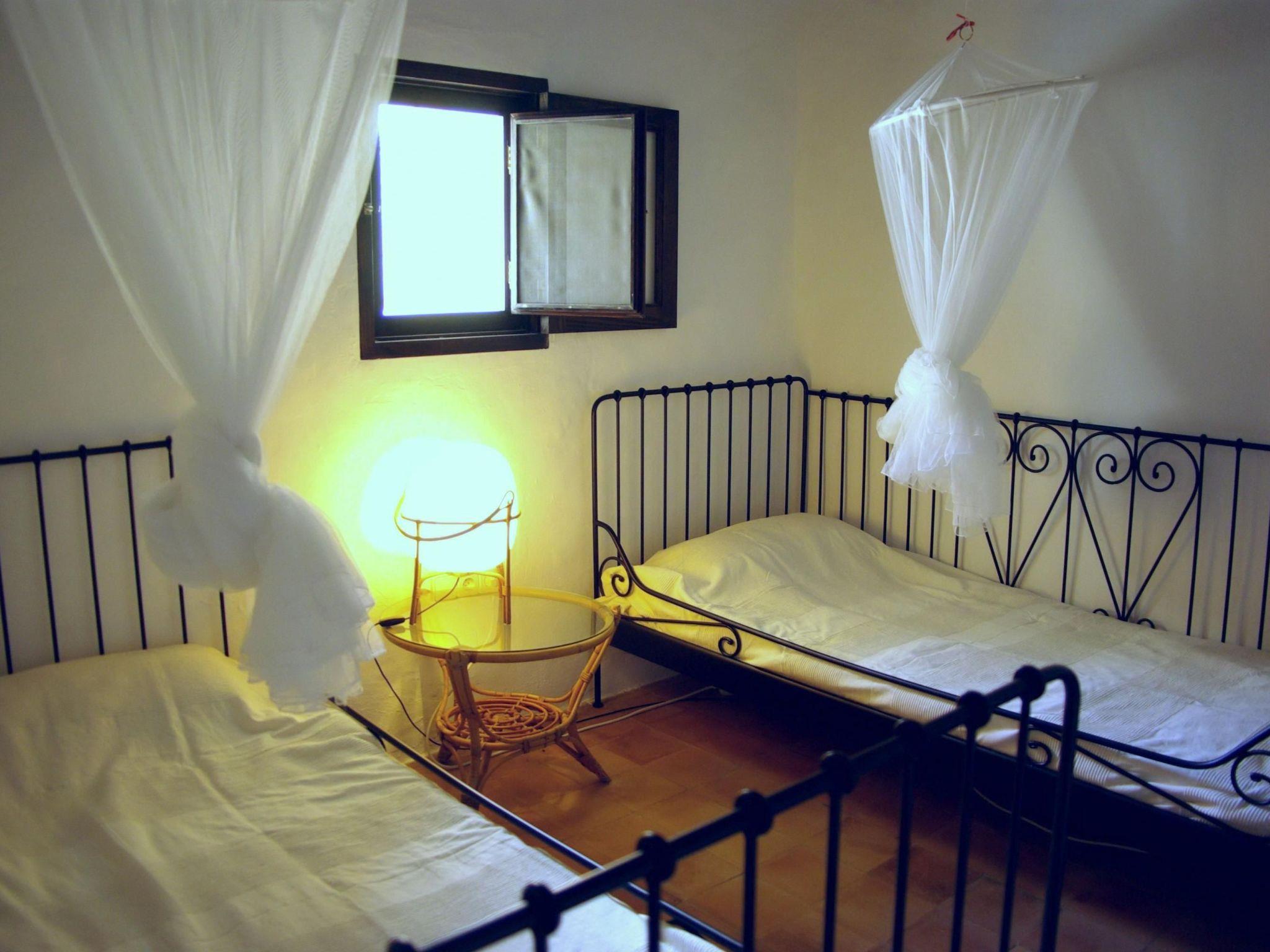 The house was last renovated and tastefully furnished in 2010. The character of the old farmhouse has been retained. With its four bedrooms, the house offers enough space for eight people. Three rooms are furnished with double beds (1x200 x160, 2x200x140), one room with two single beds (200x90). The sala (living room) has a fireplace, an extendable dining table and a TV corner with sofa and LCD SAT TV with mainly German TV programmes. A small library offers books in German, English and French. In addition, a small child and a baby can be accommodated; a baby bed and a cot are available for this purpose. The kitchen is an extension with direct access to the two terraces. Adjacent to the rear terrace is the fourth bedroom and behind it the second bathroom. All beds are fitted with mosquito curtains so that you can spend the nights undisturbed. The bathroom in the house has a washbasin, toilet, shower and bidet. The outside bathroom has a washbasin, toilet and shower. Please store your valuables in the in-house wall safe.
