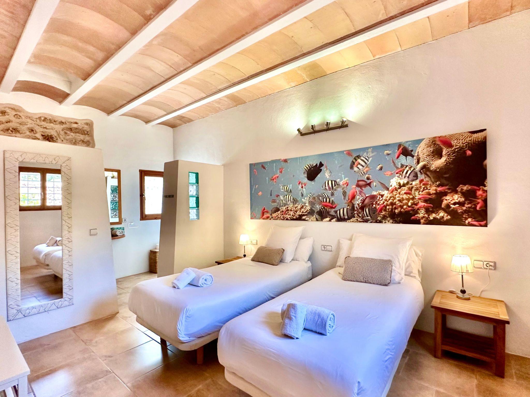 Its privileged location takes you beyond its magnificent facilities. Just 2.9 km away you will find the idyllic beach of Cala Tarida, ideal for sunny days by the sea. And for those looking to explore further afield, Ibiza airport is 16 km away, and the villa offers a paid airport transfer service for your convenience and peace of mind.