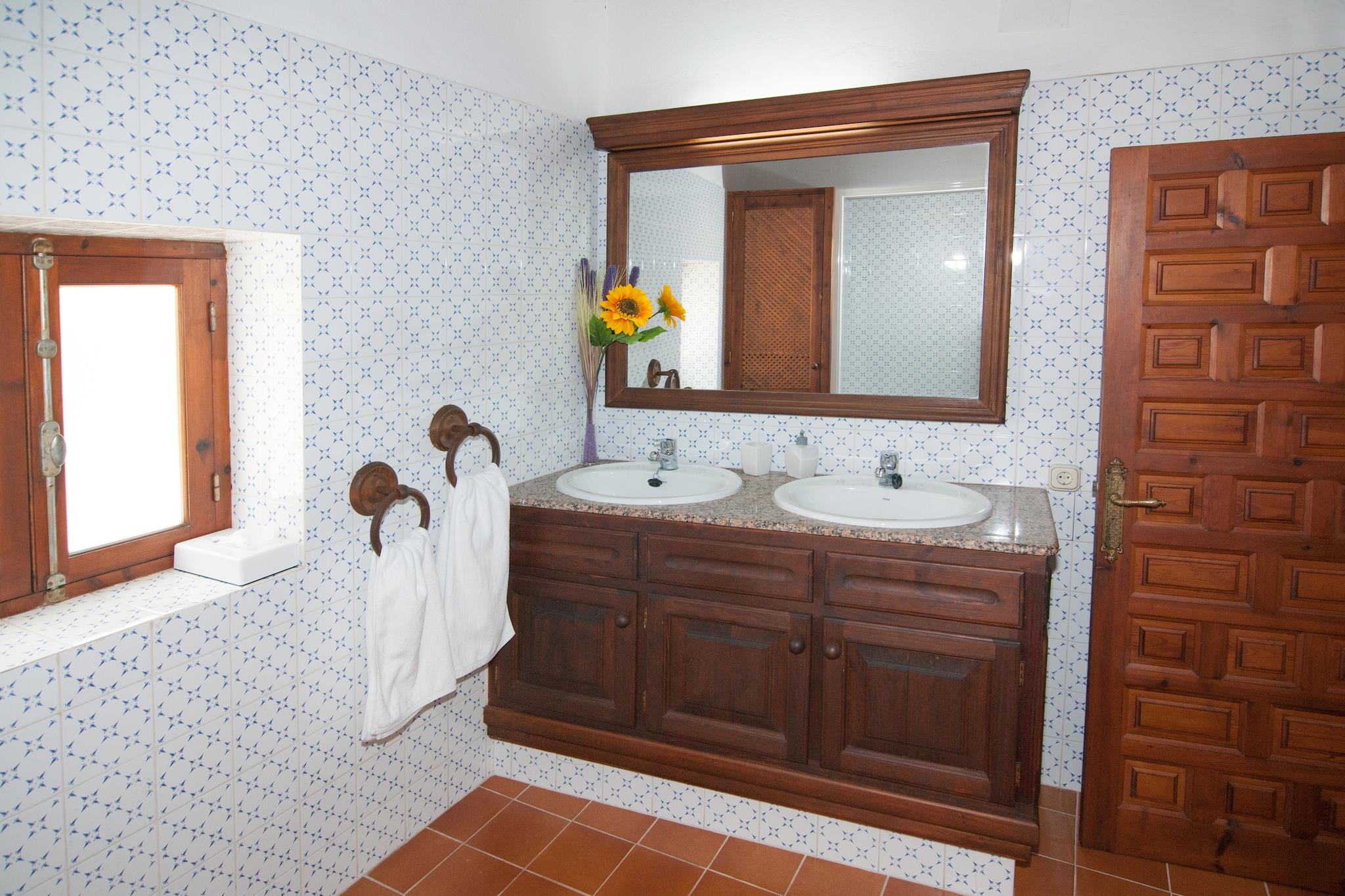 In the middle of the countryside, in the surroundings of Benimussa, halfway between San José and San Rafael, is this beautiful farm. Located in a quiet area, it has been restored. The elegant lounge. Wood-beamed ceilings, tiled floors and wooden furniture all contribute to an authentic look at the finca. Old wooden doors lead to the covered terrace. In the wonderful garden there is a beautiful swimming pool. And around the pool there is a sun terrace with straw umbrellas so you can sit in the shade. In addition, you have access to a shed to sit and eat and an outdoor kitchen, where you can enjoy a good barbecue in the evenings. Ideal for beach lovers. Less than 10 minutes' drive away you will find beaches on the south-west coast, such as Cala Conta. And, of course, you cannot miss a visit to Ibiza town, which is only 15 minutes by car from the estate. Stroll here through the narrow streets along the trendy boutiques, terraces, bars and end the day with dinner in one of the many restaurants. There is sufficient land at the property for parking IMPORTANT: A car is required to access the house! Please make sure you rent a car!