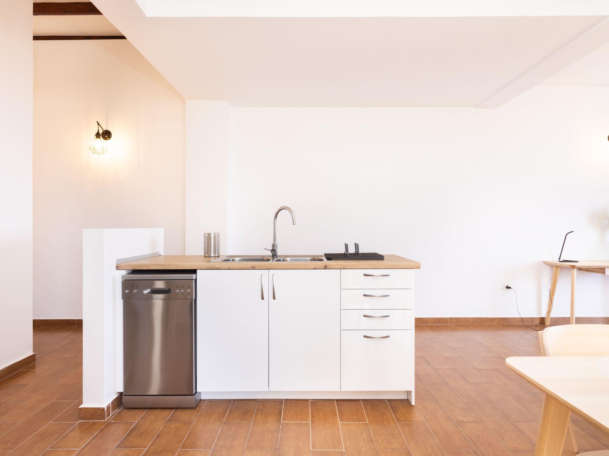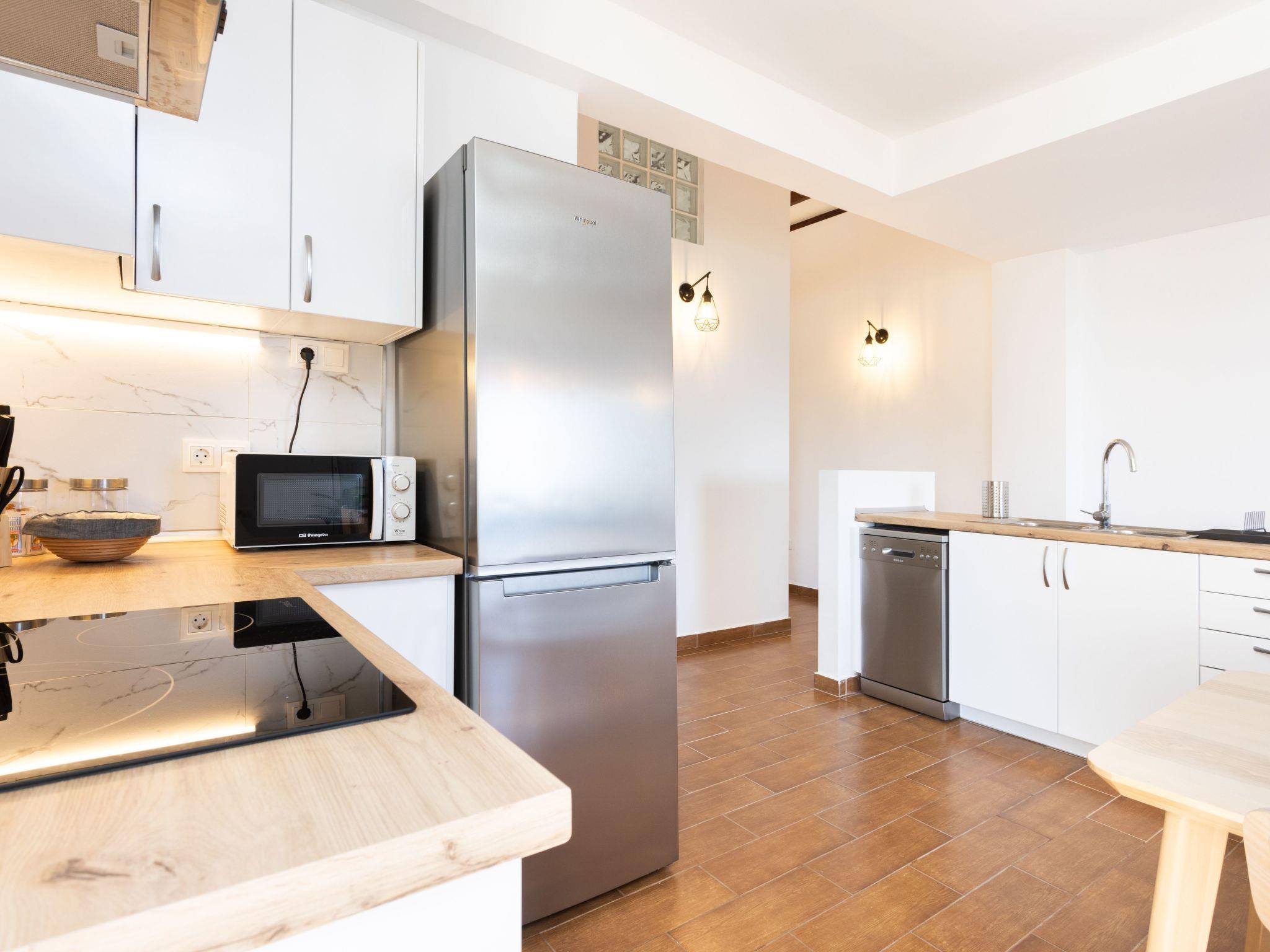 The kitchen is fully equipped, ready for you to prepare your favourite meals. There is also a washing machine on the balcony.