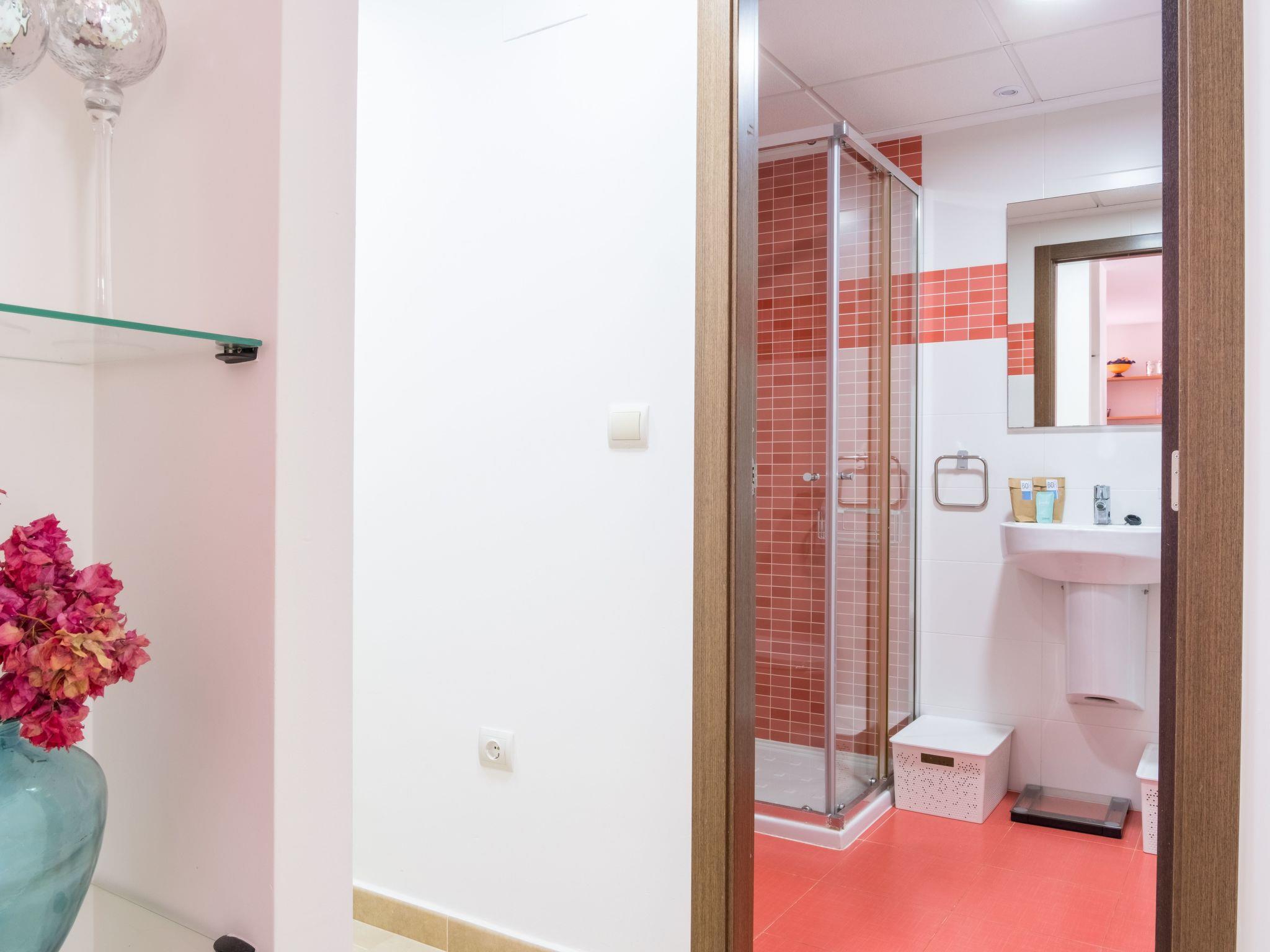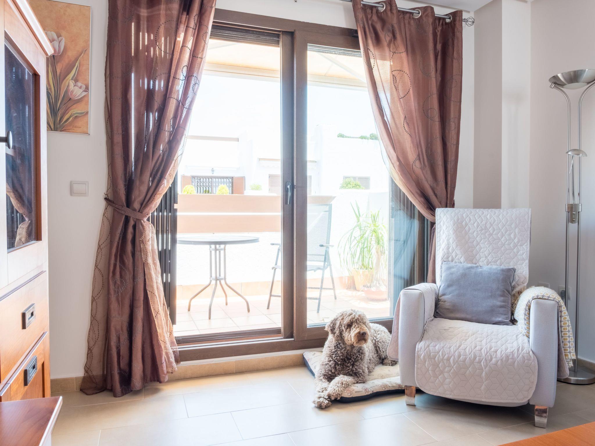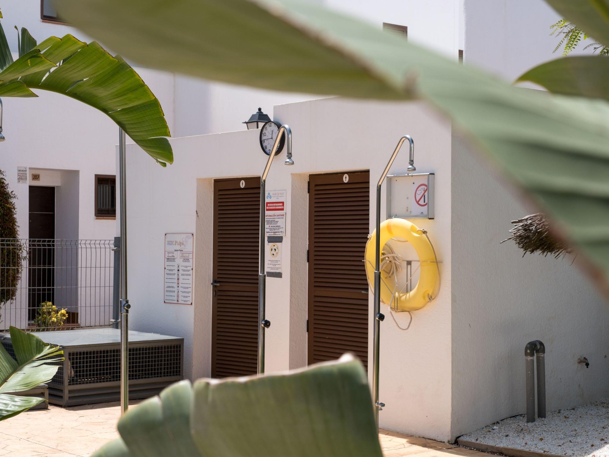 Outside, you will enjoy a 60 square metre private solarium that provides a personal oasis for relaxing in the sun. The complex boasts up to four swimming pools, located just a few metres from the flat, including a heated pool, whirlpools and children's pools, all of which are secured with security fencing. To complement this, the terrace and solarium are equipped with awnings/parasols, tables, chairs, sun loungers and an outdoor shower, perfect for enjoying the weather without having to leave the comfort of the flat.