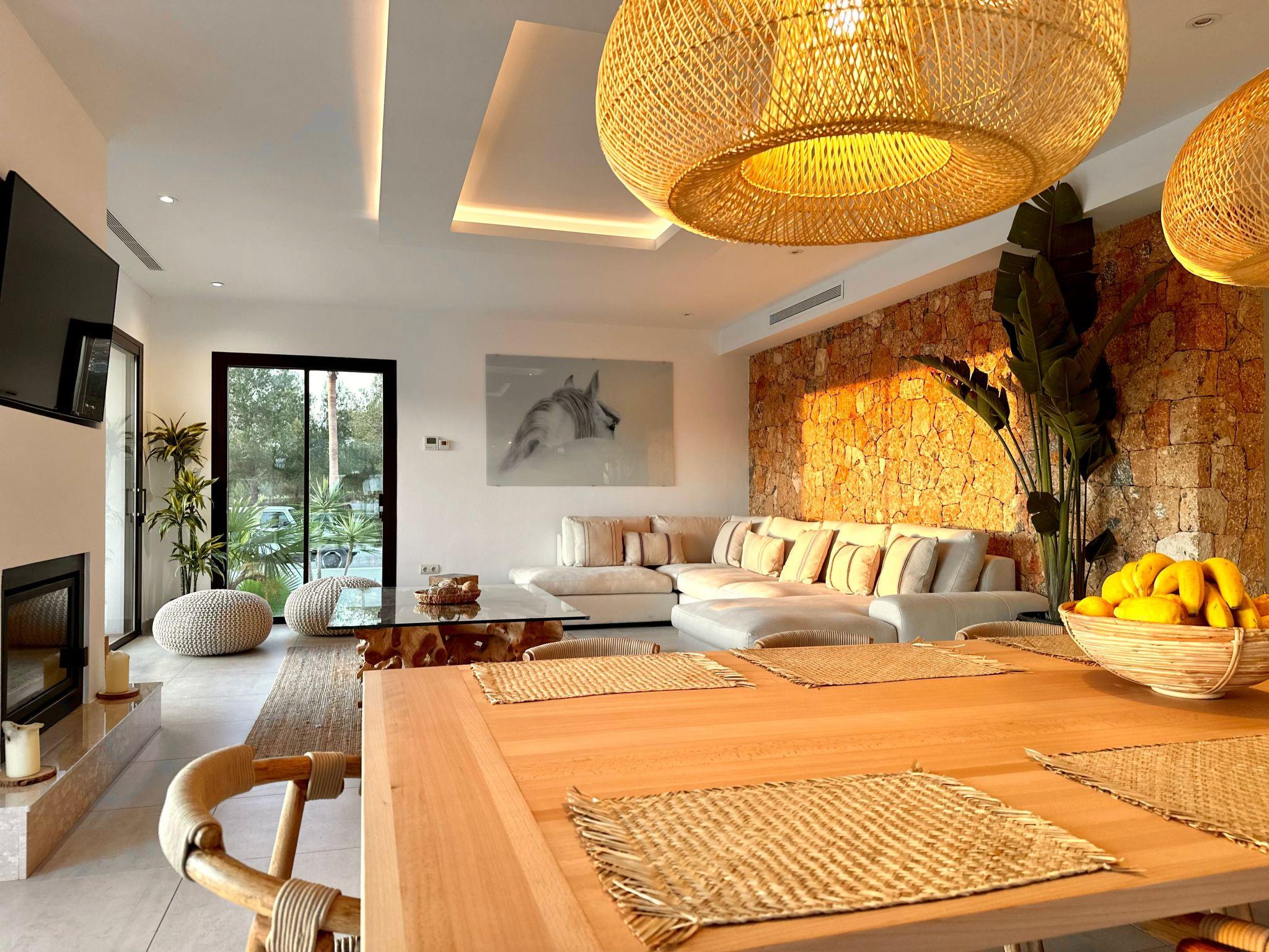 Immerse yourself in the serenity of this private estate, surrounded by the beauty of the valley. Cas Hèspero is stylishly decorated, combining a bohemian and modern aesthetic that creates a unique and welcoming atmosphere. Every corner has been carefully designed to provide a visually stimulating and comfortable experience.