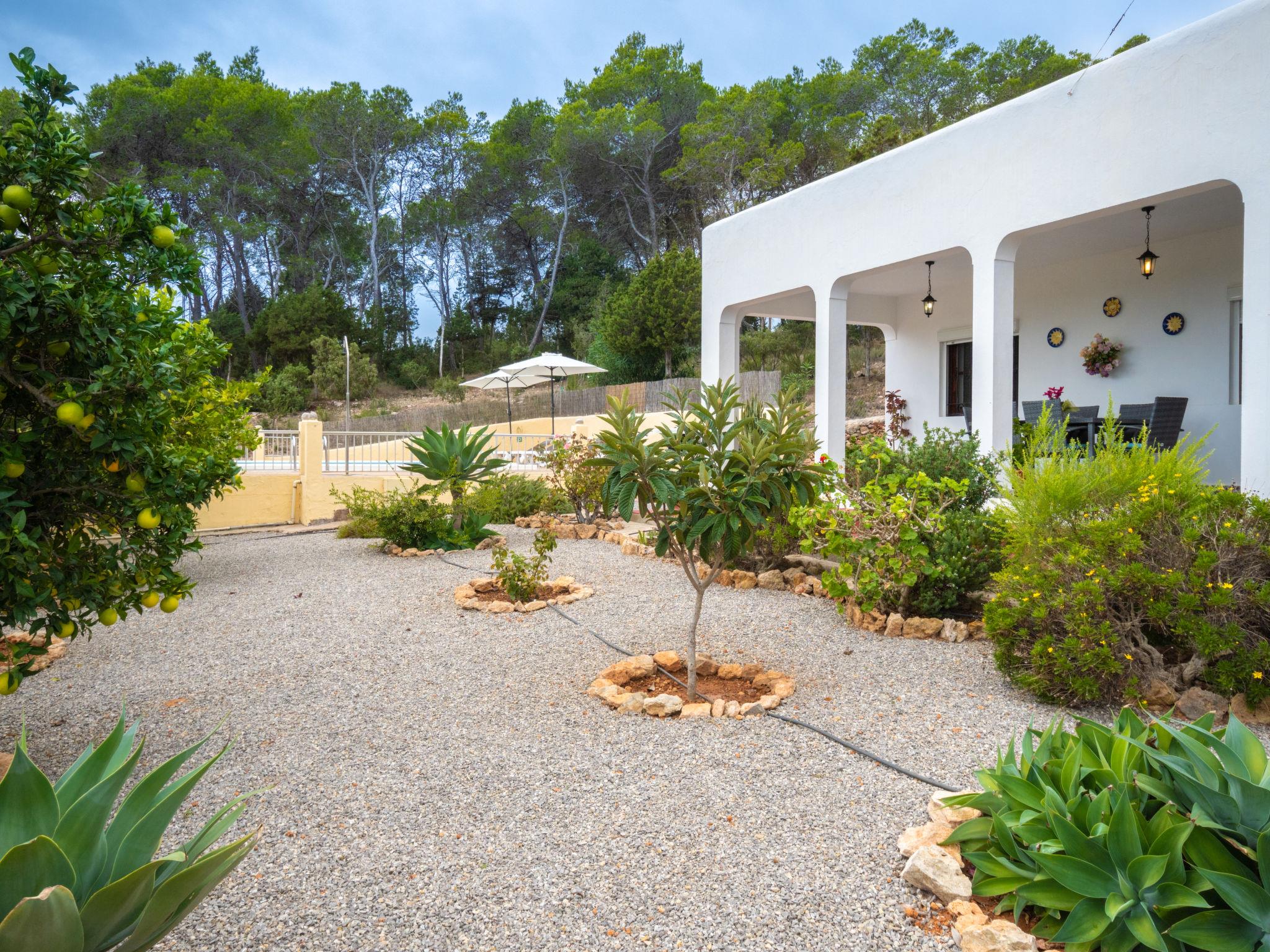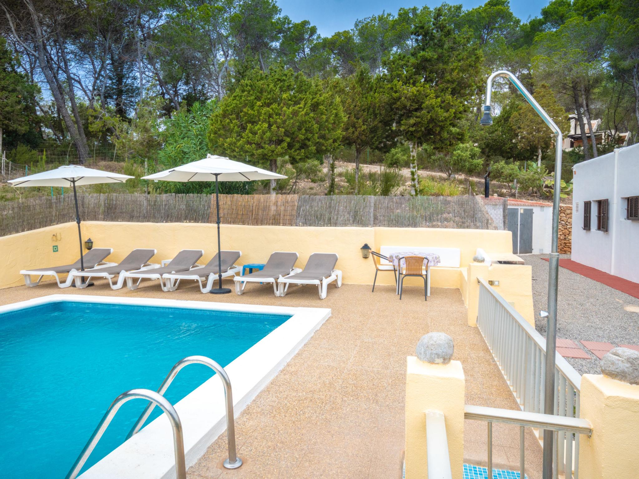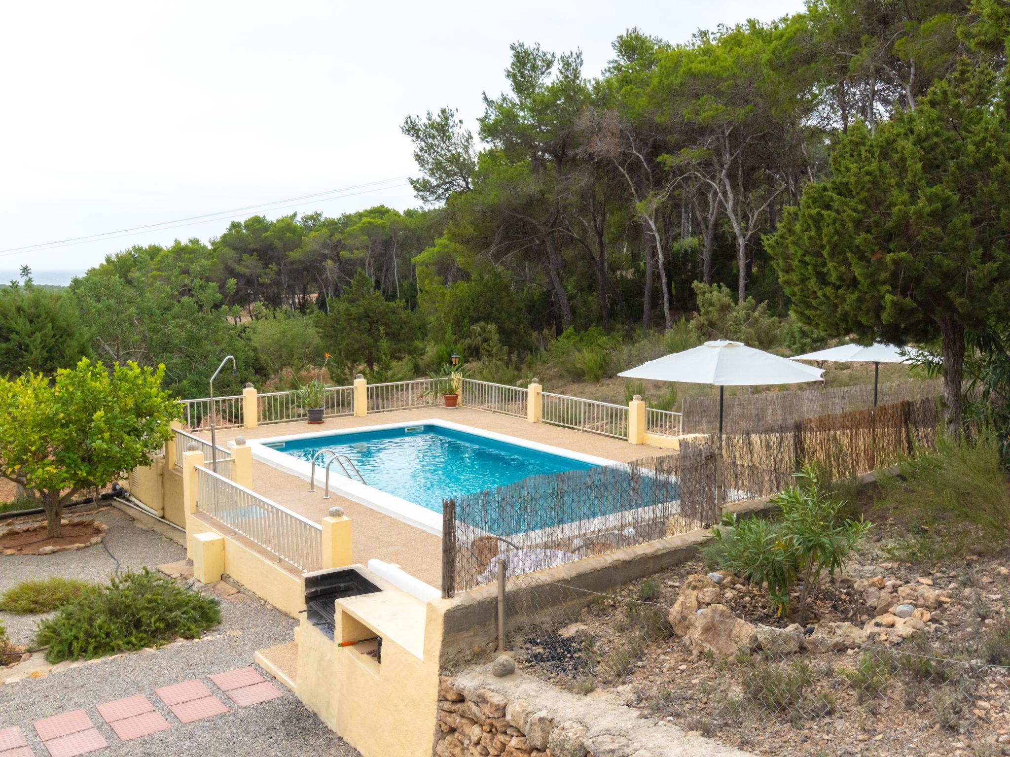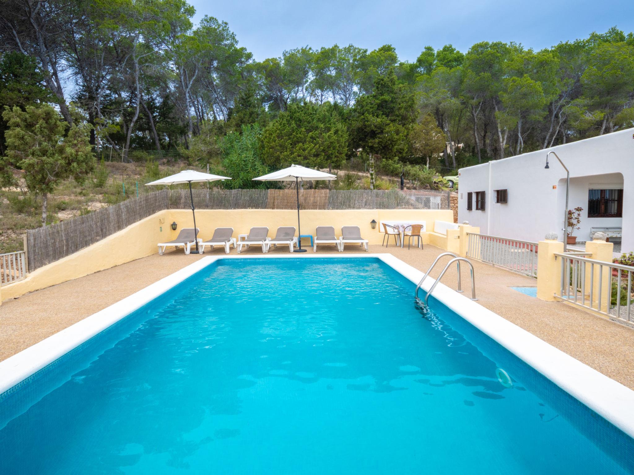 House "Can Fulgencio II". 2.4 km from the centre of Sant Carles, 3 km from the centre of Es Canar, 6 km from the centre of Sta. Eulària del Riu, 2.8 km from the sea. Private: property 75 ha, garden 125 m2 with wildlife garden and trees, swimming pool (4 x 8 m, seasonal availability: 15.Apr. - 30.Oct.). Outdoor shower. Motor access to the house (300 m via unmade road). Grocery 2.4 km, restaurant 2.4 km, bus stop 900 m, sandy beach 2.8 km, outdoor swimming pool 3 km. Tennis 500 m. Nearby attractions: Cala Nova 2.8 km.