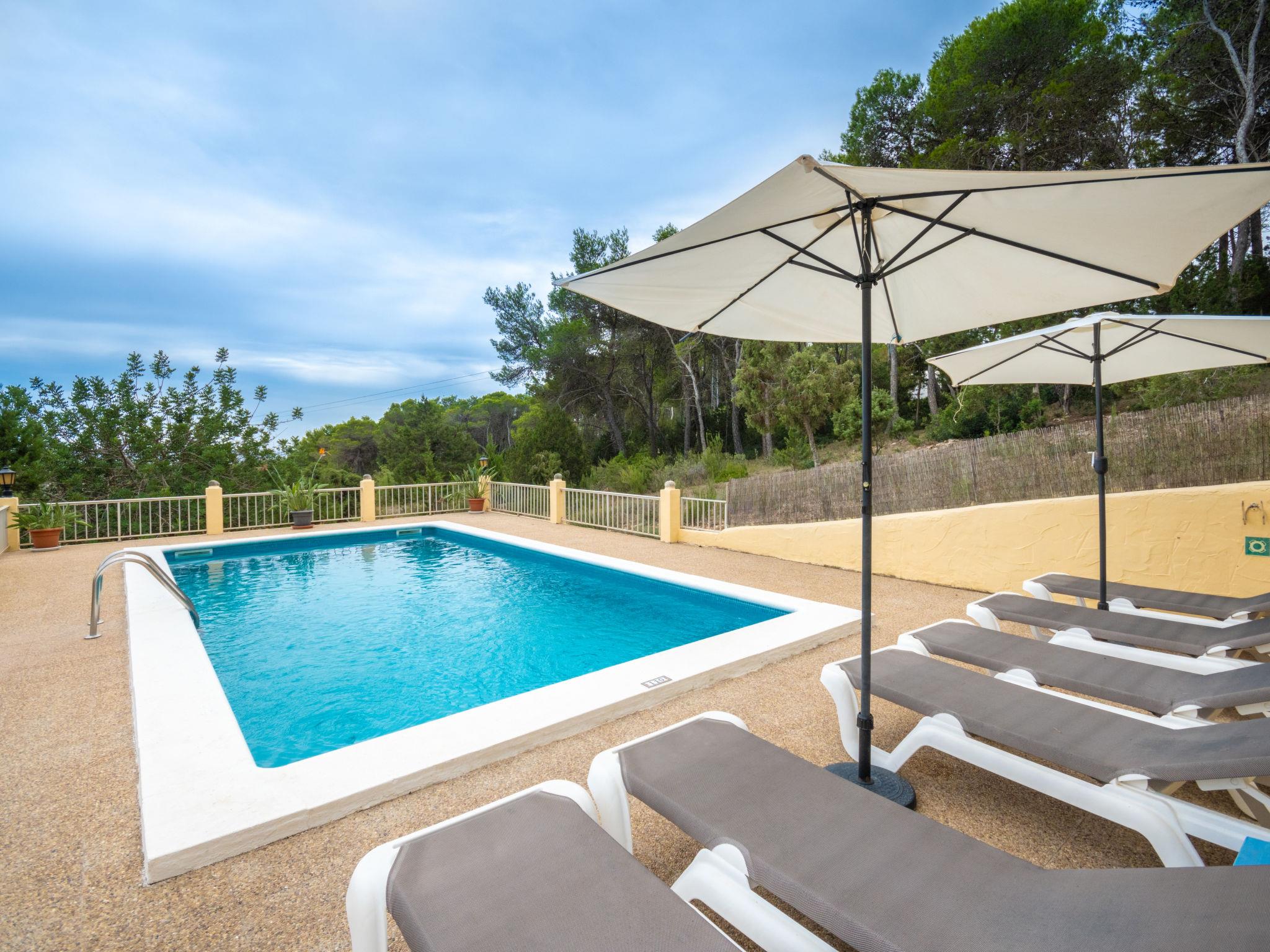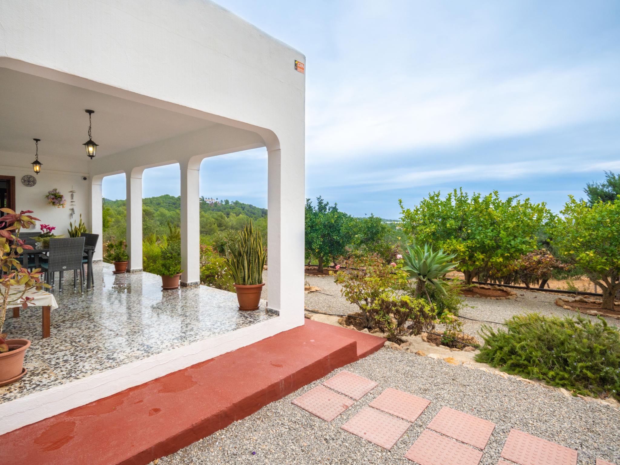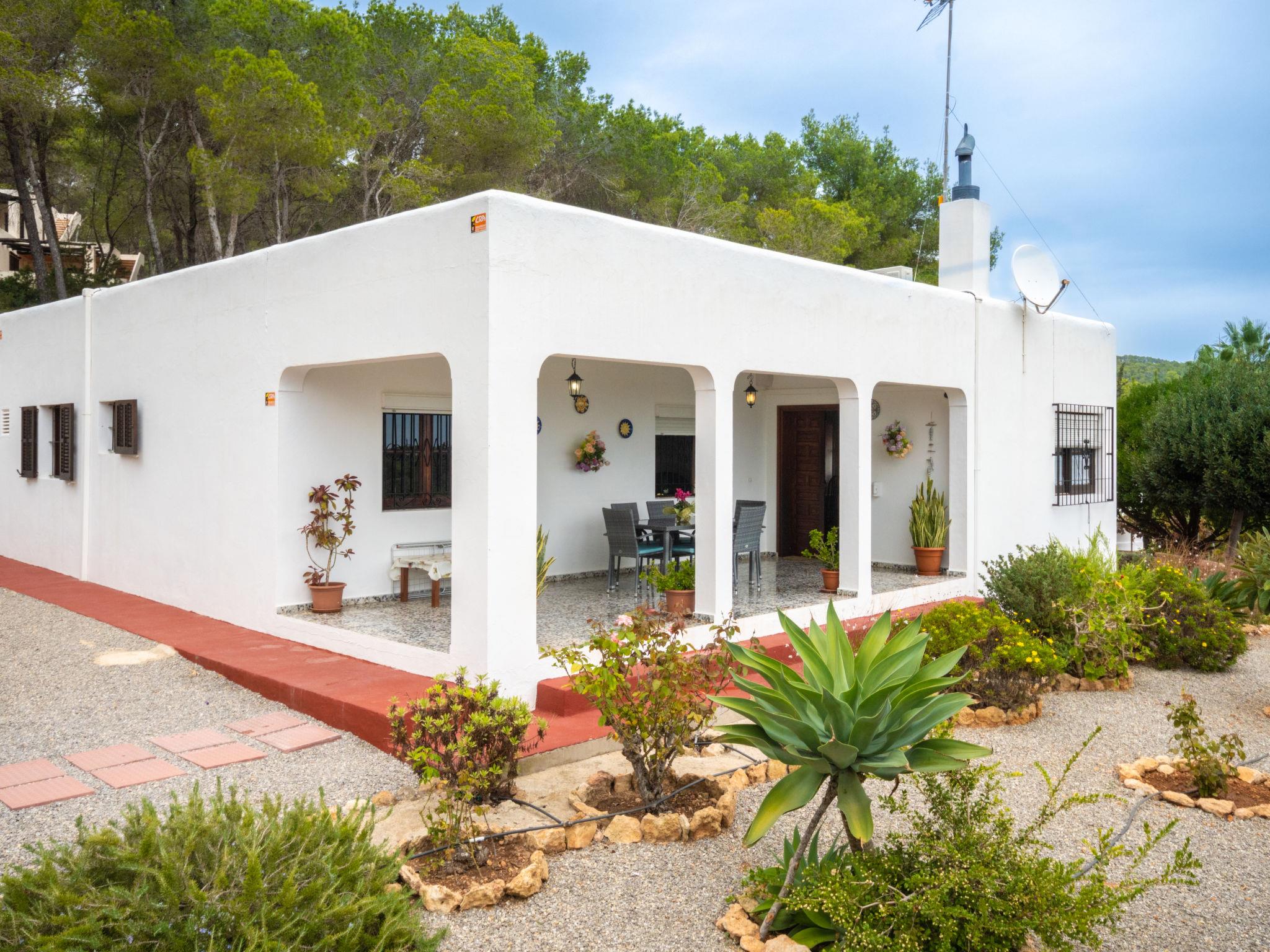 House "Can Fulgencio II". 2.4 km from the centre of Sant Carles, 3 km from the centre of Es Canar, 6 km from the centre of Sta. Eulària del Riu, 2.8 km from the sea. Private: property 75 ha, garden 125 m2 with wildlife garden and trees, swimming pool (4 x 8 m, seasonal availability: 15.Apr. - 30.Oct.). Outdoor shower. Motor access to the house (300 m via unmade road). Grocery 2.4 km, restaurant 2.4 km, bus stop 900 m, sandy beach 2.8 km, outdoor swimming pool 3 km. Tennis 500 m. Nearby attractions: Cala Nova 2.8 km.