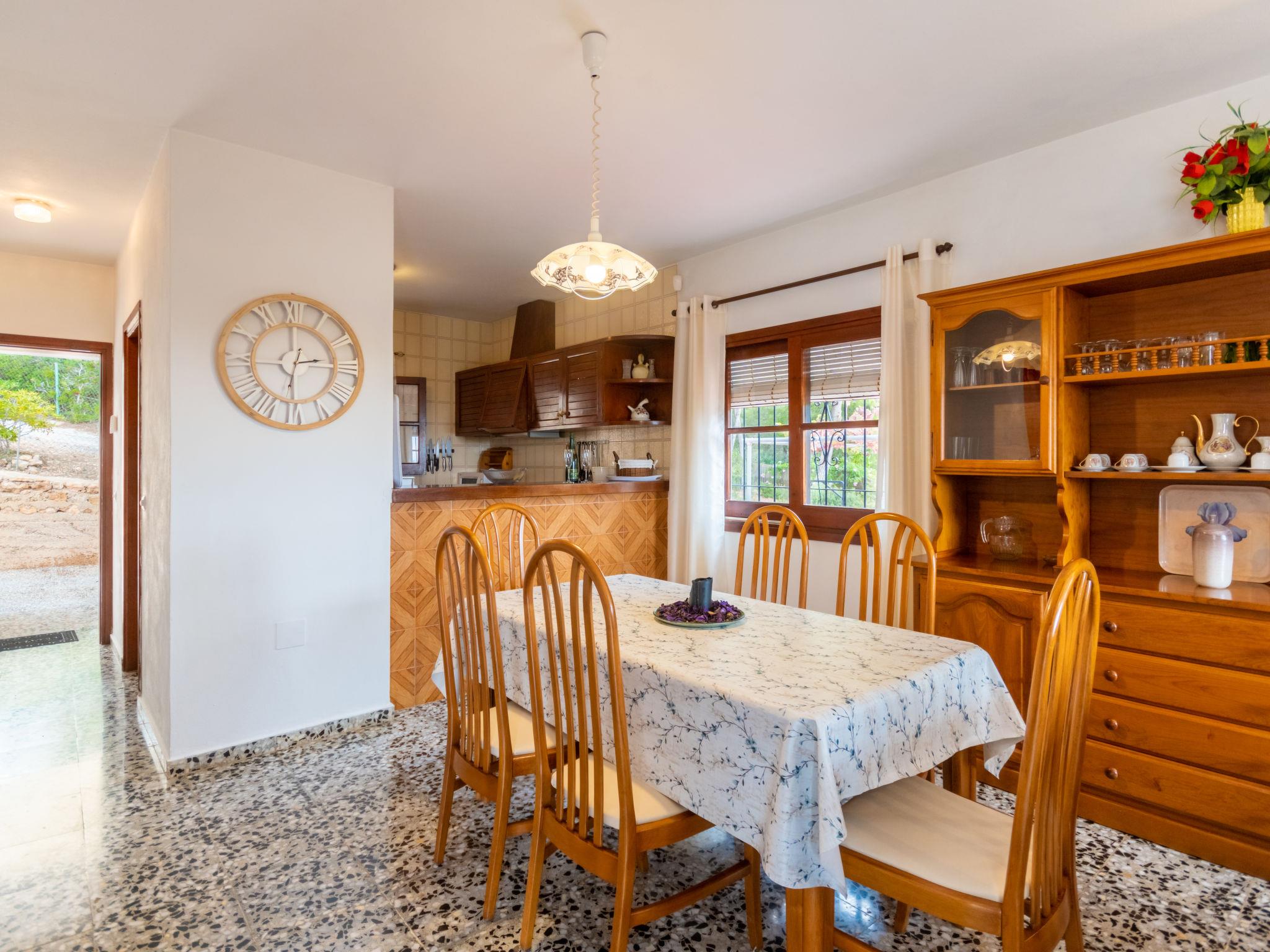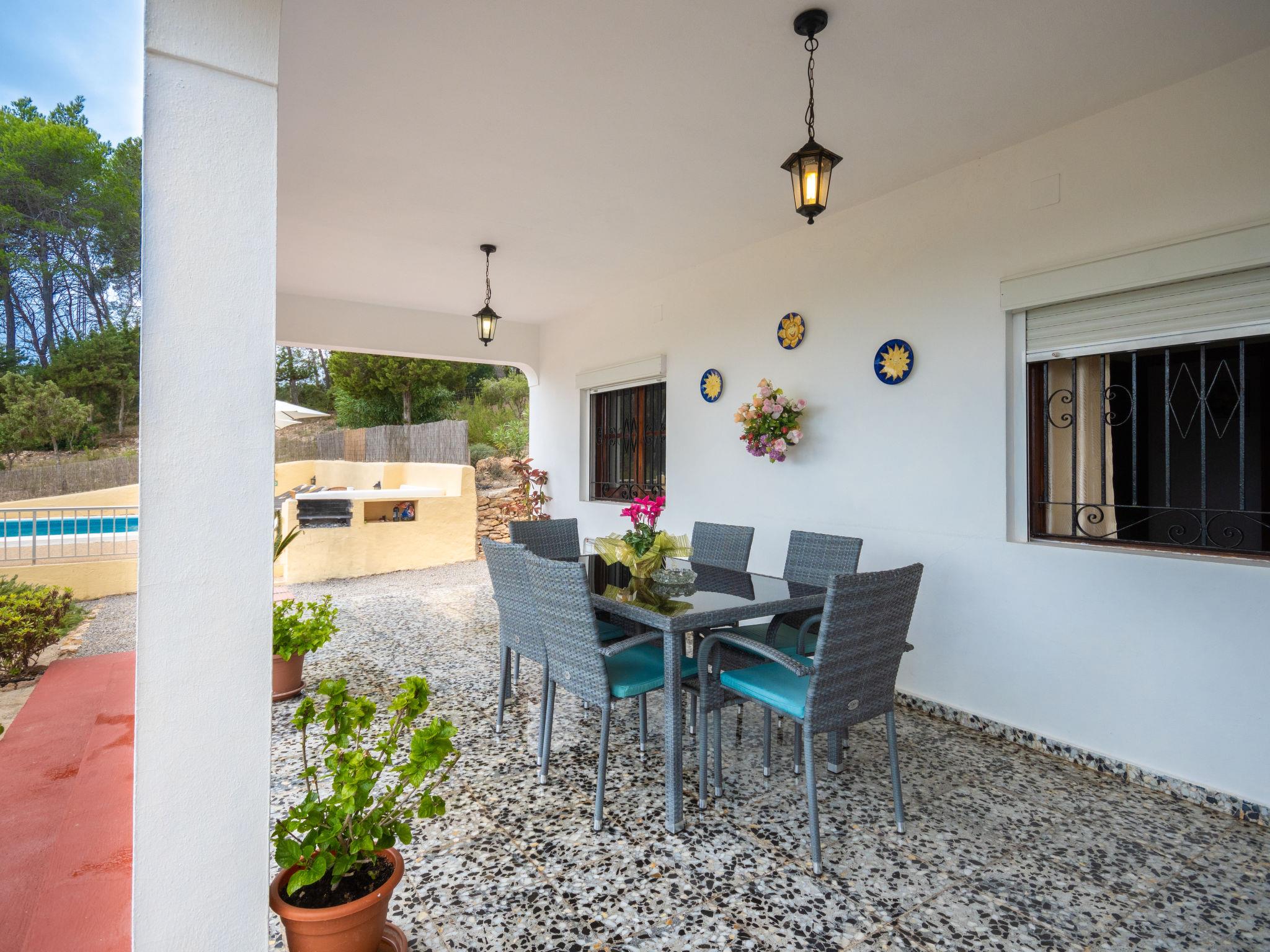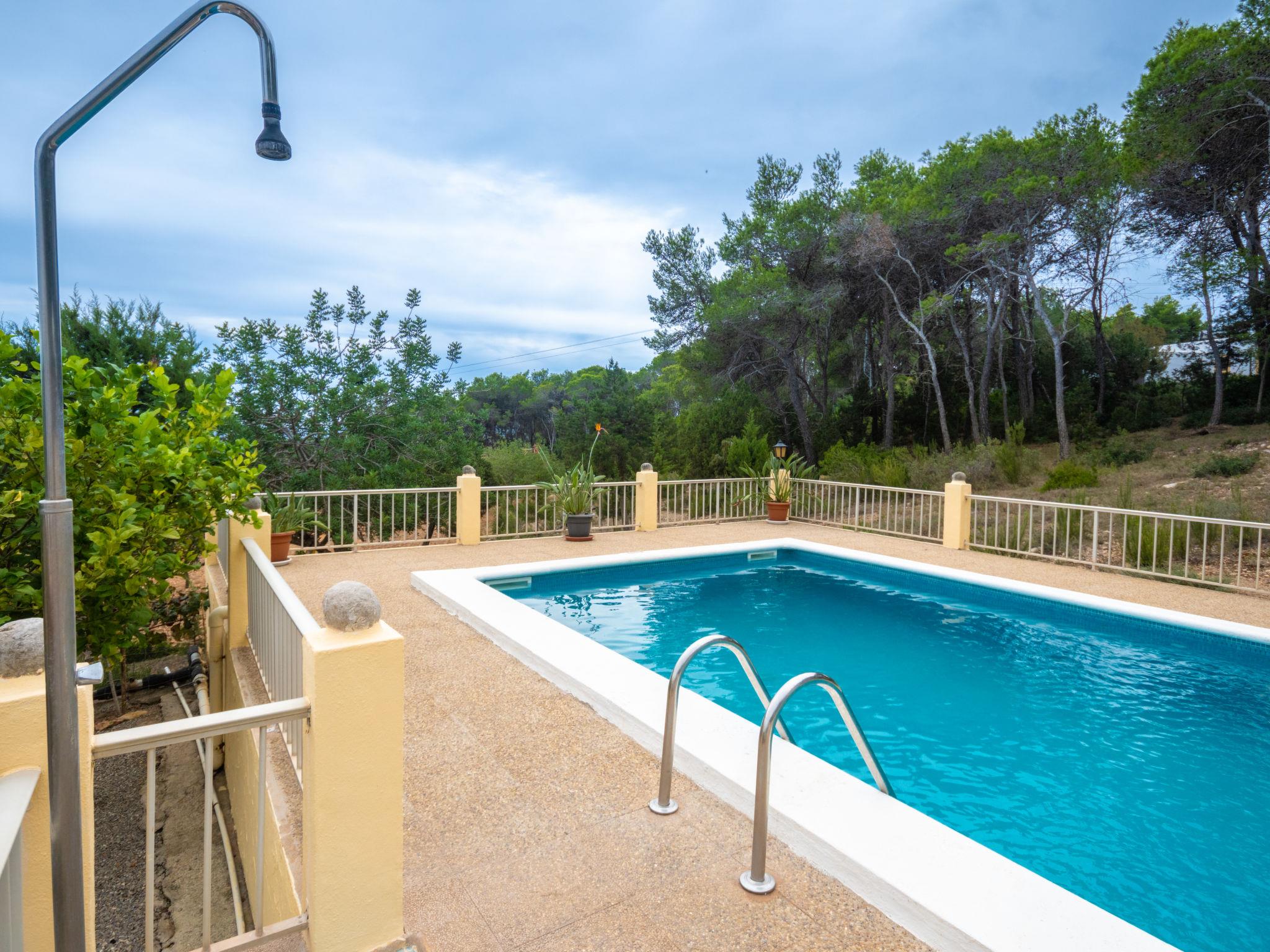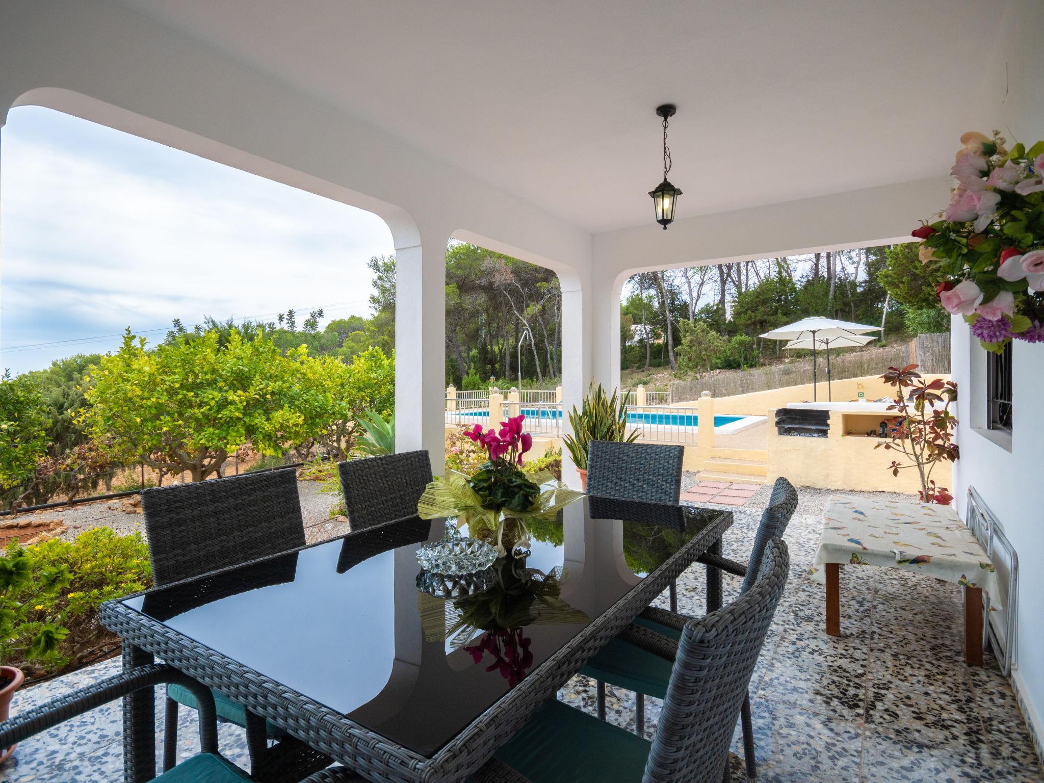 House "Can Fulgencio II". 2.4 km from the centre of Sant Carles, 3 km from the centre of Es Canar, 6 km from the centre of Sta. Eulària del Riu, 2.8 km from the sea. Private: property 75 ha, garden 125 m2 with wildlife garden and trees, swimming pool (4 x 8 m, seasonal availability: 15.Apr. - 30.Oct.). Outdoor shower. Motor access to the house (300 m via unmade road). Grocery 2.4 km, restaurant 2.4 km, bus stop 900 m, sandy beach 2.8 km, outdoor swimming pool 3 km. Tennis 500 m. Nearby attractions: Cala Nova 2.8 km.