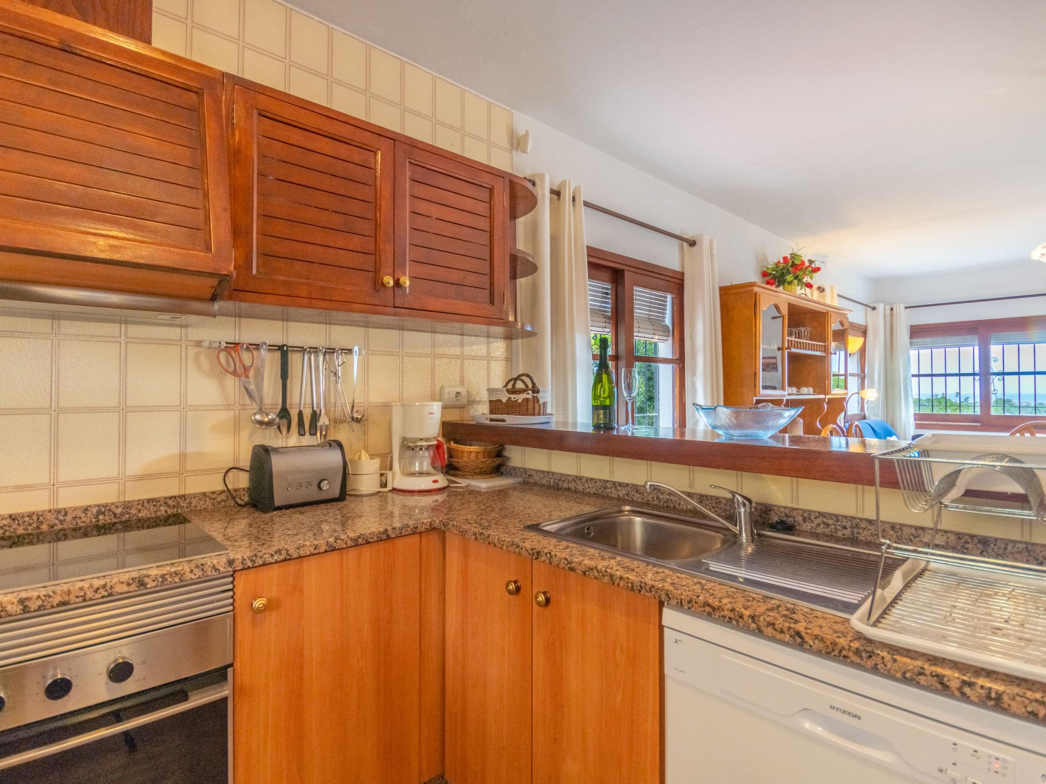 4-room house 112 m2. Simple furnishings: living/dining room 24 m2 with open-hearth fireplace, satellite TV, digital TV, air conditioning and forced-air heating. 1 room with panoramic window with 2 beds, air conditioning and forced-air heating. 1 room with panoramic window with 1 french bed, air conditioning and forced-air heating. 1 room with panoramic window with 1 bed, air conditioning and forced-air heating. Open kitchen (oven, toaster, kettle, freezer). Bath/bidet/WC, sep. WC. Heating. Terrace 21 m2, roofed terrace 100 m2. Terrace furniture, barbecue, deck chairs (6). Distant view of the sea. Facilities: washing machine, safe. Parking, garage. Water boiler with a 50 lt capacity. Cot is 6 euros per day. Bed 9 euros per day. ETV1062E // Reg. Nr.: ESFCTU000007036000097668000000000000000000000ET1062E9