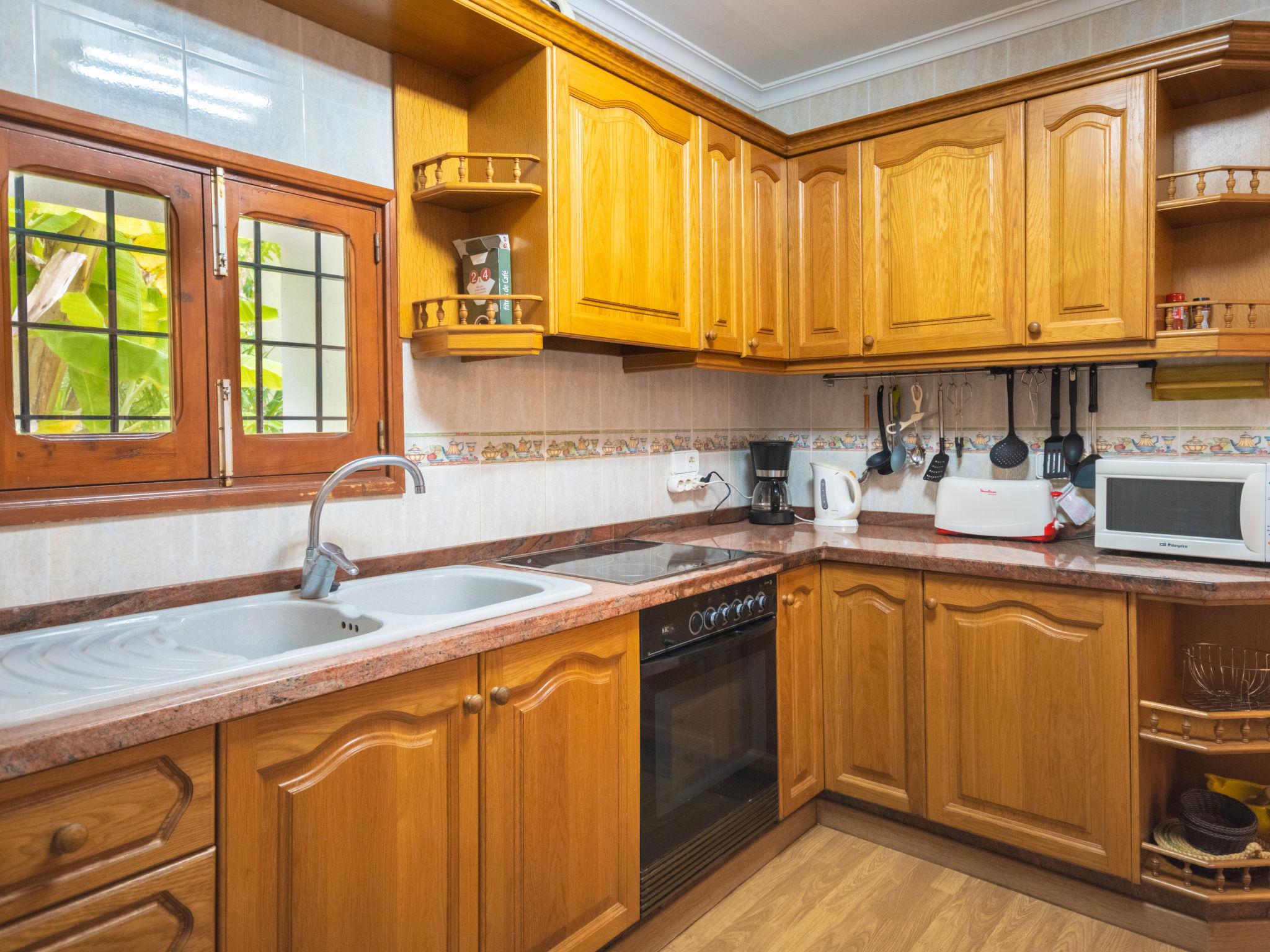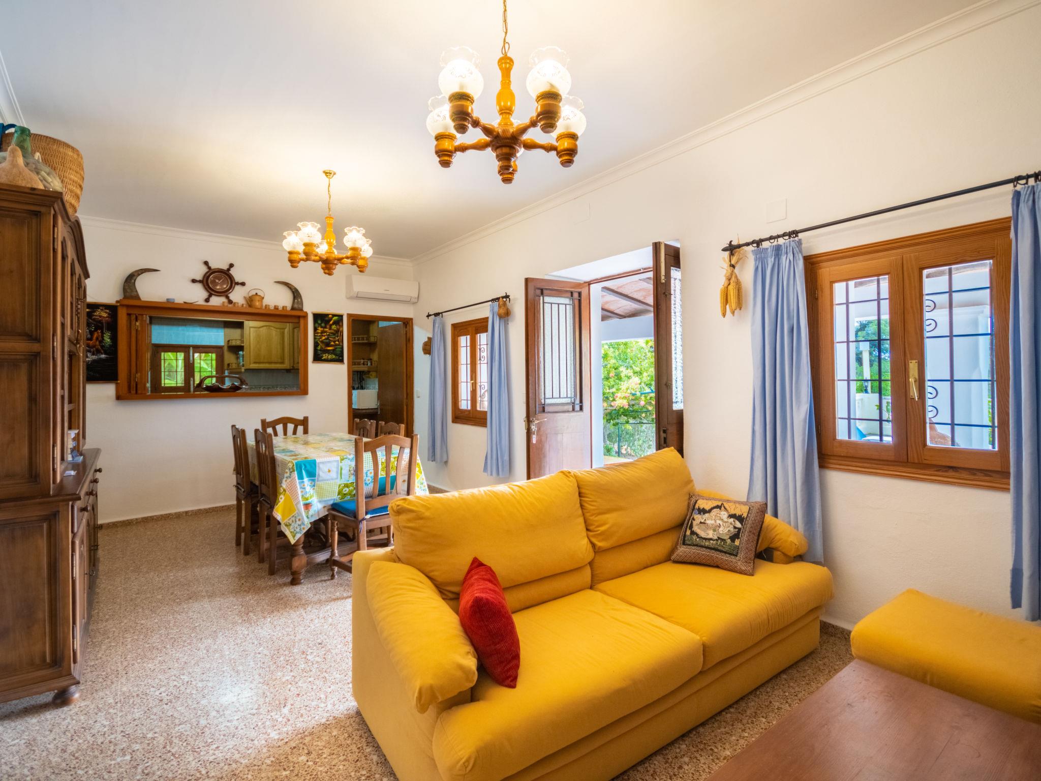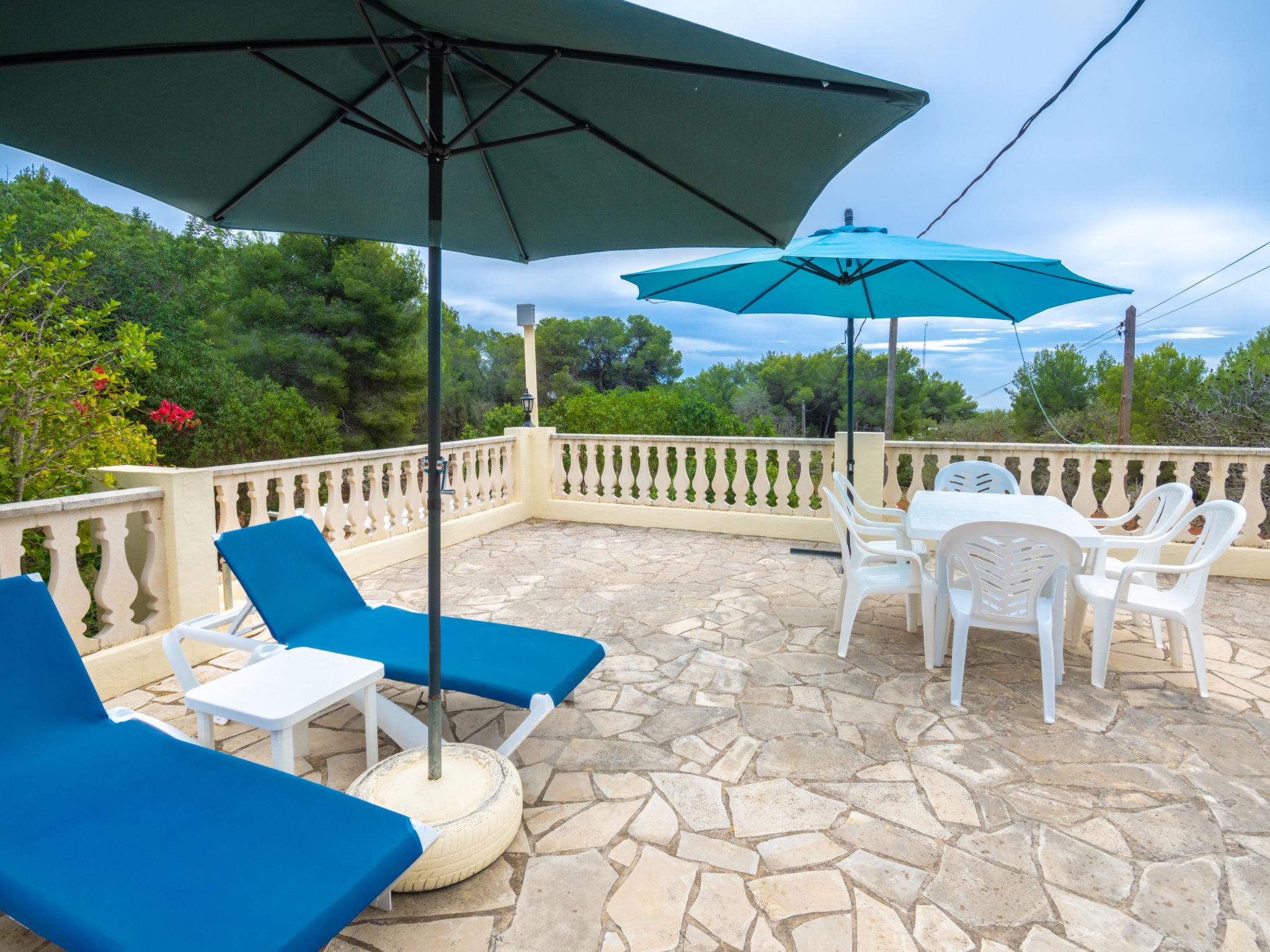 4-room house 110 m2. Comfortable furnishings: living/dining room with open-hearth fireplace, satellite TV, digital TV, CD-player, hi-fi system and air conditioning. 1 room with 1 french bed (150 cm, length 190 cm), air conditioning. 1 room with 1 x 2 bunk beds (90 cm, length 190 cm), air conditioning. 1 room with 2 beds (90 cm, length 190 cm), air conditioning. Kitchen (oven, toaster, kettle, microwave, freezer, electric coffee machine, Capsules for coffee machine (KRUPS dolce gusto) extra) with dining table, hatch. Bath/bidet/WC, shower/WC. Boiler (100 litres). Terrace 150 m2, terrace 50 m2, porch 14 m2. Terrace furniture, barbecue, deck chairs (6). Facilities: washing machine, iron. Internet (WiFi, free). Parking at the house. Please note: fire extinguisher. Electric 100 litre boiler. ETV1351E // Reg. Nr.: ESFCTU00000703600010154900000000000000000000ETV1351E2