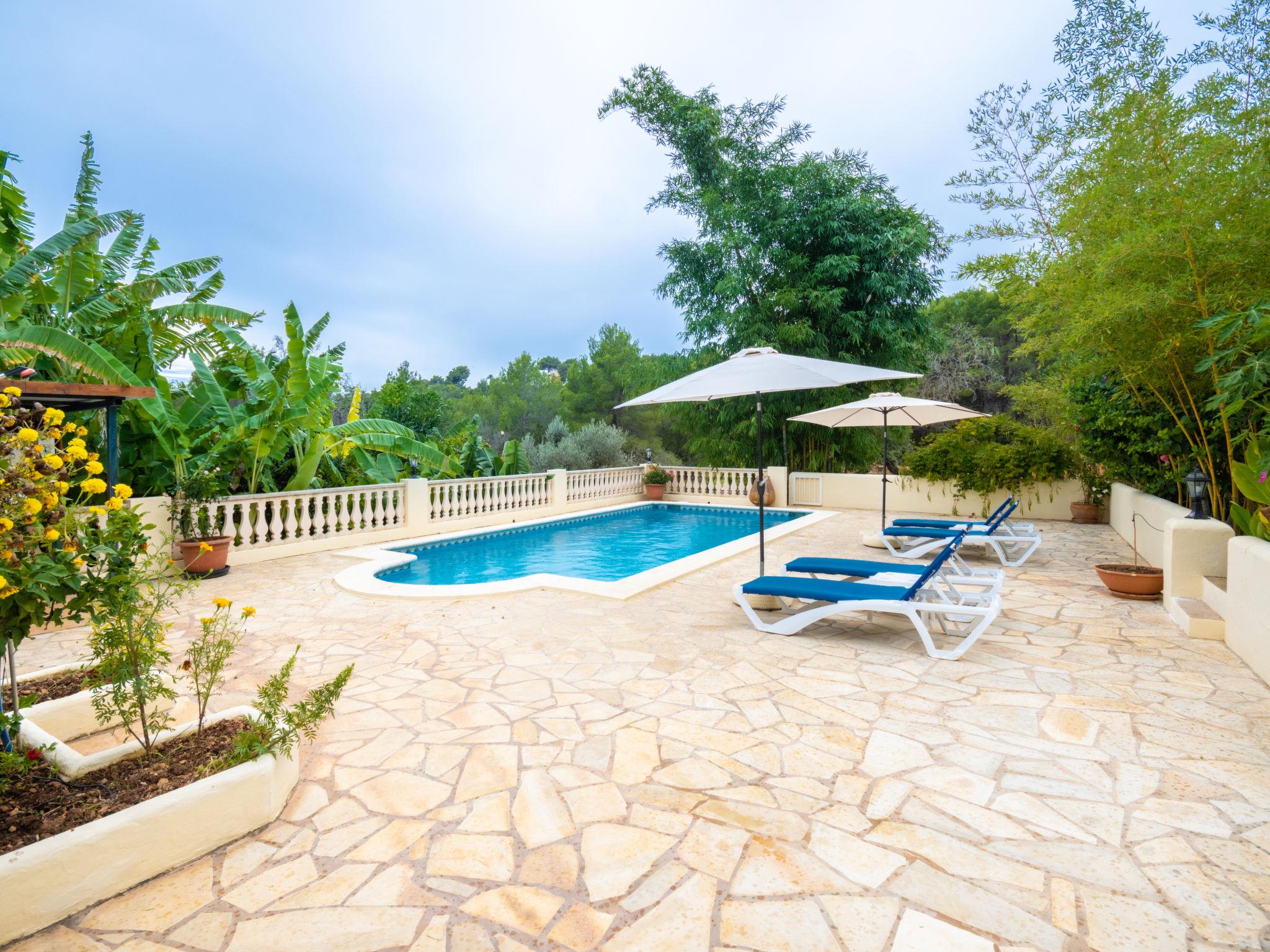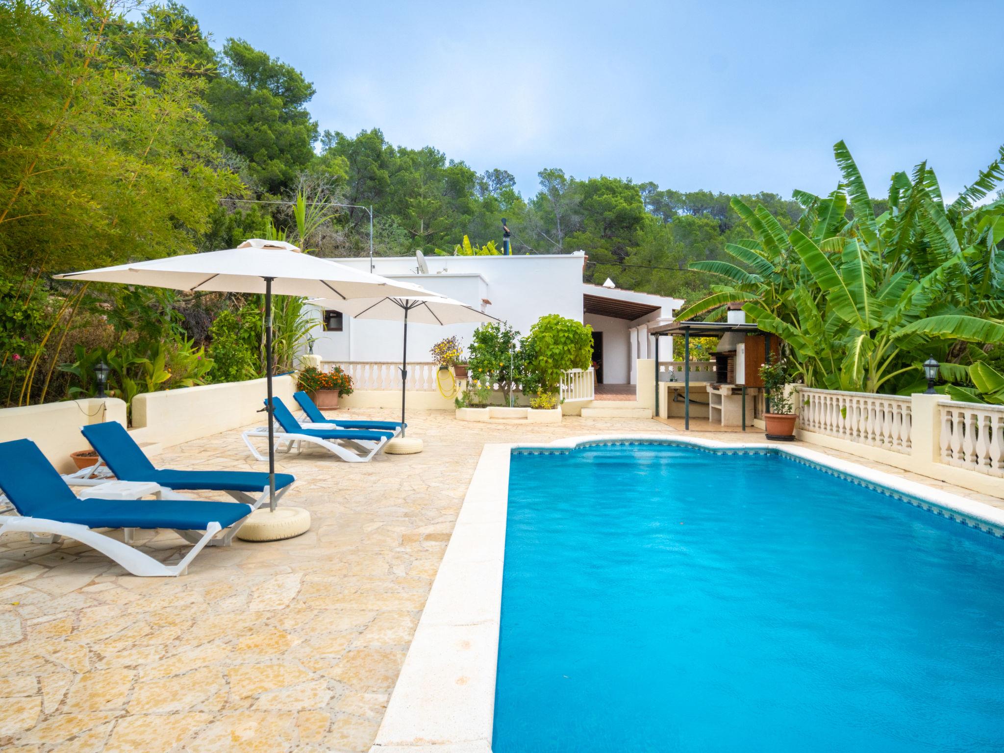 Beautiful, cosy country house "Can Toni Mari". 2.5 km from the centre of Sant Carles, 6 km from the centre of Sta. Eulària des Rius, outside the resort, in a quiet, sunny position, 3 km from the sea, in the countryside. Private: property 5 ha with trees, swimming pool angular (7 x 4 m, depth 120 - 190 cm, seasonal availability: 01.Jan. - 31.Dec.). Outdoor shower, pergola (14 m2), terrace (150 m2), garden furniture, barbecue. In the house: internet access, WiFi, air conditioning, washing machine. Bumpy motor access to the house (500 m via unmade road). Parking at the house on the premises. Grocery 2.5 km, restaurant 2.5 km, bus stop "Cala Llenya" 300 m, sandy beach 3 km. Nearby attractions: Cala Nova 2.8 km, Cala Llenya 3 km. Please note: car recommended.