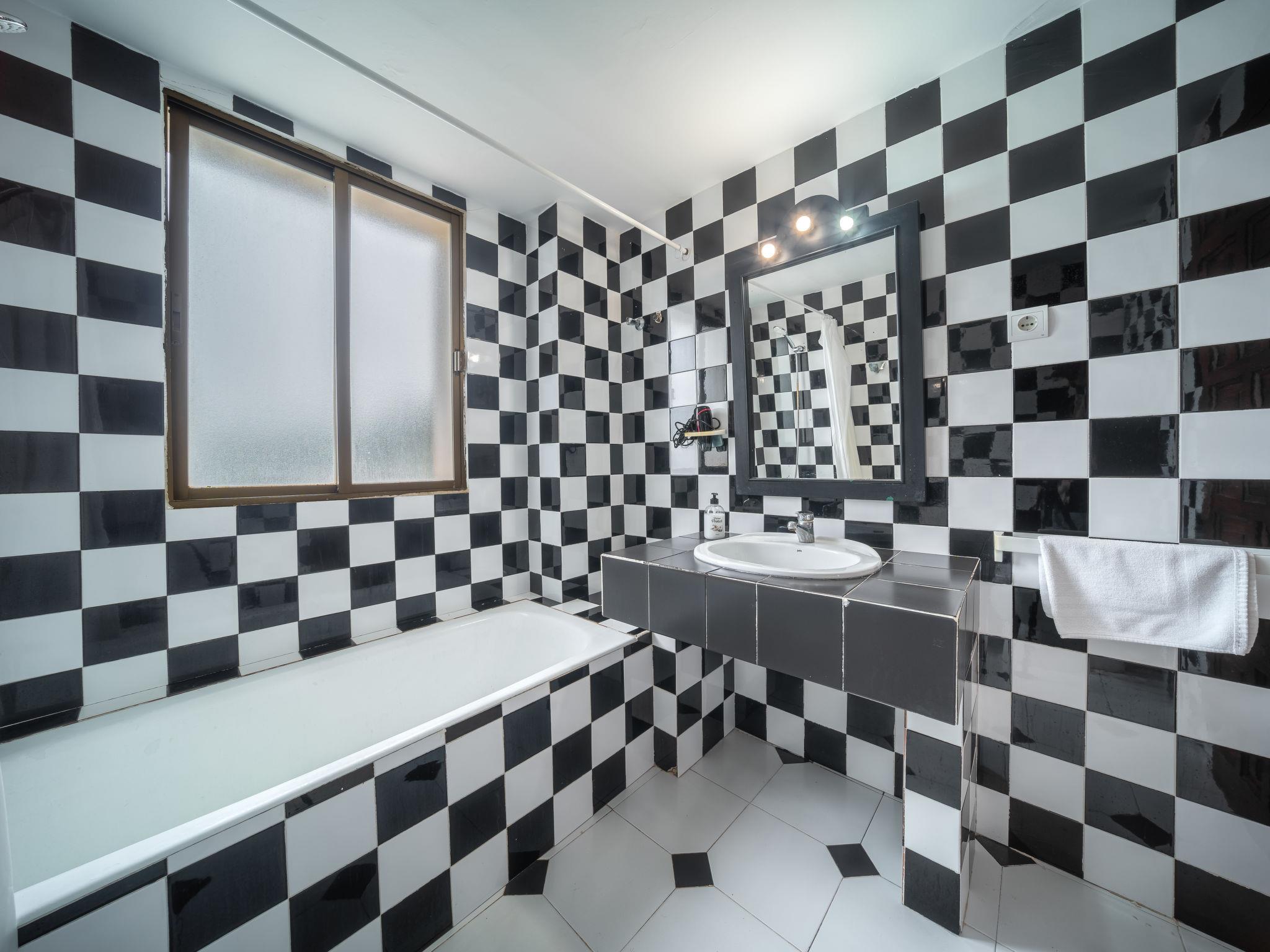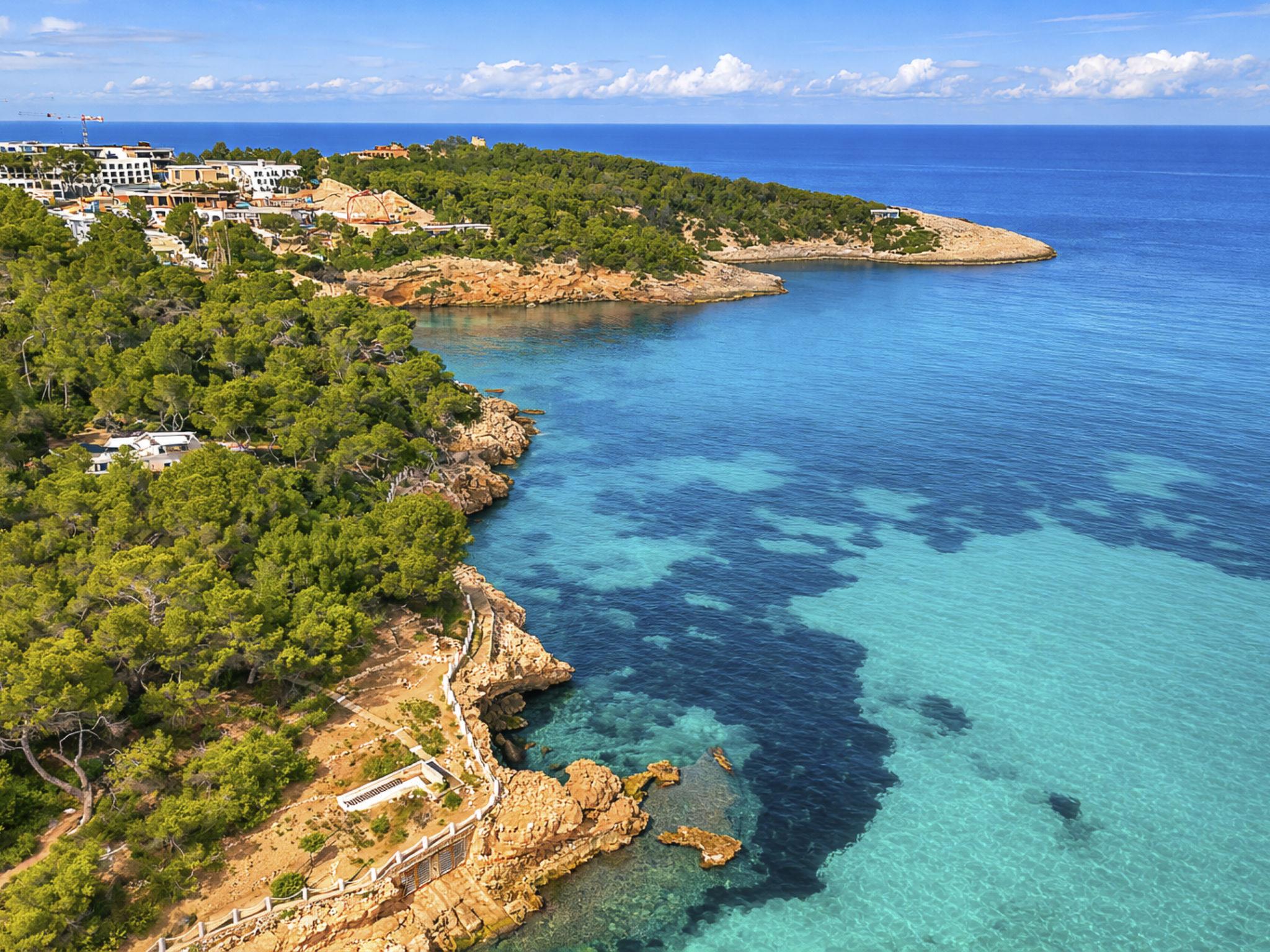 Portinatx 9 km from Sant Joan de Labritja: Cosy, simple aparthotel "Apartamentos Es Grop Portinatx". 17 apartments in the property. In a central, quiet position, 1 km from the edge of the forest, 30 m from the sea, 30 m from the beach, direct access to the beach. For shared use: garden, swimming pool angular (6 x 3 m, seasonal availability: 01.Apr. - 31.Oct.). WC in the pool area, outdoor shower, terrace. In the house: reception, restaurant, bistro, WiFi, lift, air conditioning. Parking (for 10 cars). Shop, grocery 150 m, supermarket 200 m, restaurant, bar 10 m, bakery 150 m, café 100 m, pedestrian zone 10 m, bus stop "Cala Portinatx" 350 m, sandy beach "Platja Portinatx" 15 m, diving center 2 km, outdoor swimming pool 10 m. Nearby attractions: Cala Xarraca 2 km, Cala de Xuclar 850 m, Cala d'en Serra 1.9 km, Faro de Portinatx 1.5 km, Faro de la punta de Moscater 2.5 km. Hiking paths: Sendero del Far des Moscater 1.5 km. Please note: Loading and unloading of baggage is possible at the holiday house. Guarded residence. Main road 60 m from the property. Airfield 36 km from the property. The photograph shows a typical example. The tap water has no drinking water quality. The holiday properties may differ in living space, floorplan, equipment and furnishing.