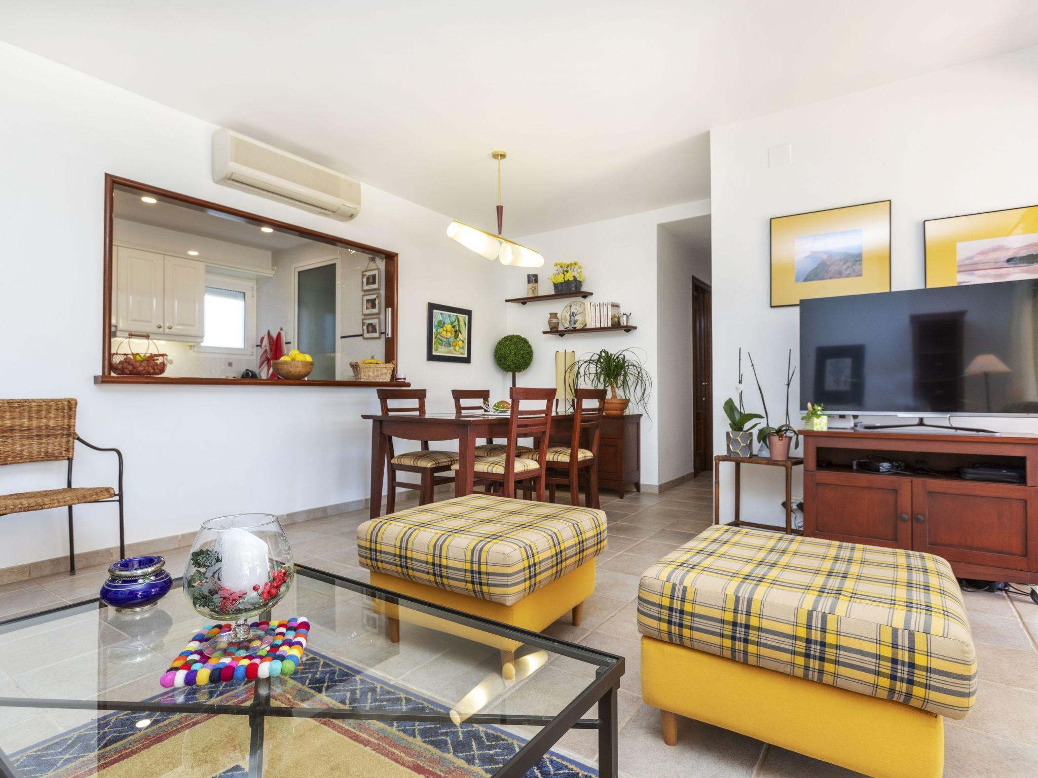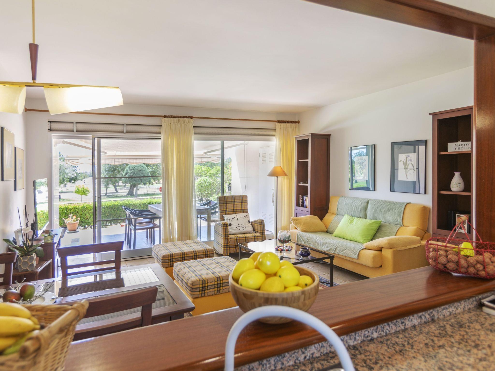 "Gabriel", 3-room apartment 95 m2, on the ground floor. Spacious, comfortable and tasteful furnishings: living/dining room with digital TV and air conditioning. Exit to the patio. 1 room with 2 beds (90 cm, length 190 cm). 1 room with 1 french bed (135 cm, length 190 cm), bath/bidet/WC. Kitchen (oven, dishwasher, 4 ceramic glass hob hotplates, toaster, microwave, freezer, electric coffee machine, Capsules for coffee machine (Nespresso) extra). Shower/bidet/WC. Air-conditioning, forced-air heating. Patio. Terrace furniture, deck chairs (2). View of the swimming pool, the resort and golf course. Facilities: washing machine, iron, hair dryer. Internet (WiFi, free). Parking. Please note: non-smokers only. 1 small pet/ dog allowed. TV only ES. VT-46007-CS // Reg. Nr.: ESFCTU00001200900114740500000000000000000VT-46007-CS7