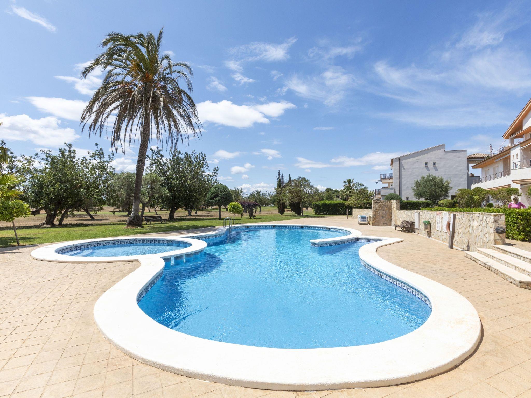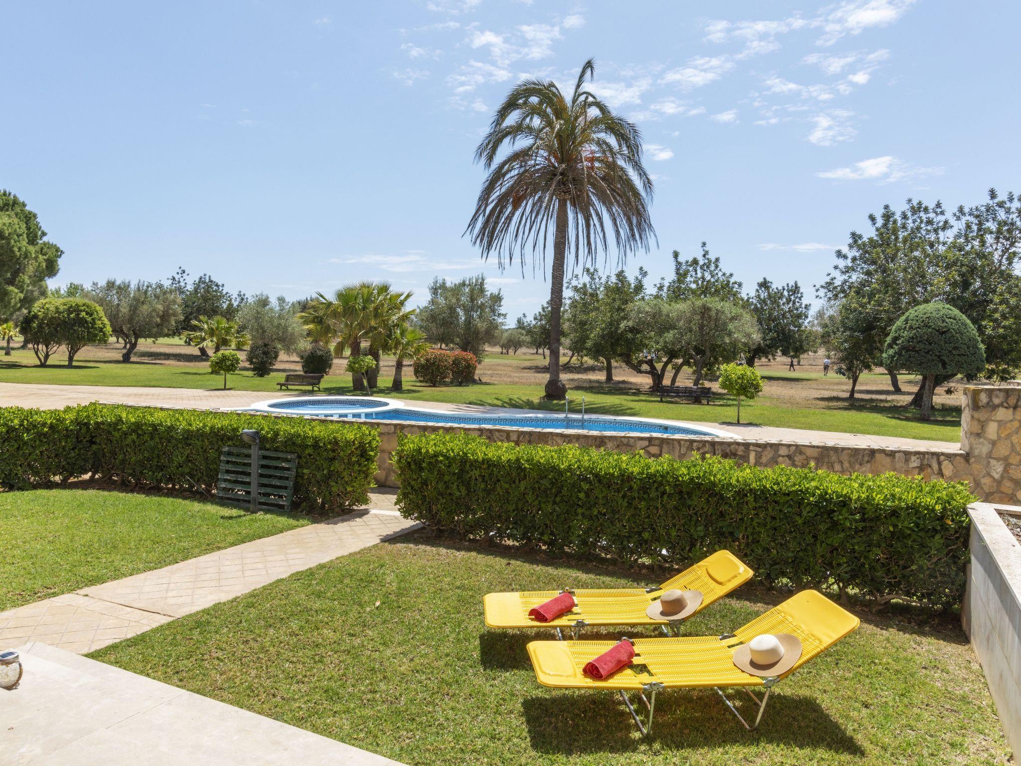 Panoramica Golf 6 km from San Jordi: Cosy, comfortable apartment block "Gabriel", surrounded by trees. 8 apartments in the property. 15 km from the sea, 15 km from the beach, on the golf course. For shared use: swimming pool (10 x 8 m, seasonal availability: 01.Jan. - 31.Dec. pool opening hours: 10:00-20:00). Children's pool, outdoor shower. Private: garden with lawn. In the house: air conditioning. Parking. Supermarket 400 m, shopping centre 13 km, restaurant, bar, café 300 m, bus stop "C/ J.Bautista Rochera-Sant Jordi" 7.8 km, railway station "Vinaròs" 18 km. Golf course (18 hole) 250 m. Nearby attractions: Peñiscola 30 km, Vinaros 18 km, Pantano de la Senia 12 km, Pitch & putt 250 m. Hiking paths: La Senia 12 km. Please note: car recommended, no lift. Groups of teenagers on request only. Loading and unloading of baggage is possible at the holiday house. Guarded residence. Neighbourhood highly sensitive to noise. Quietness and good behaviour expected.