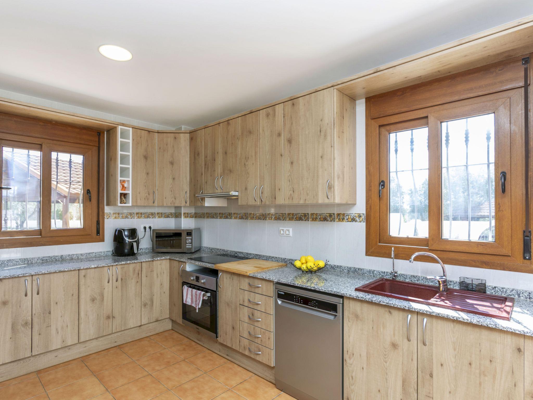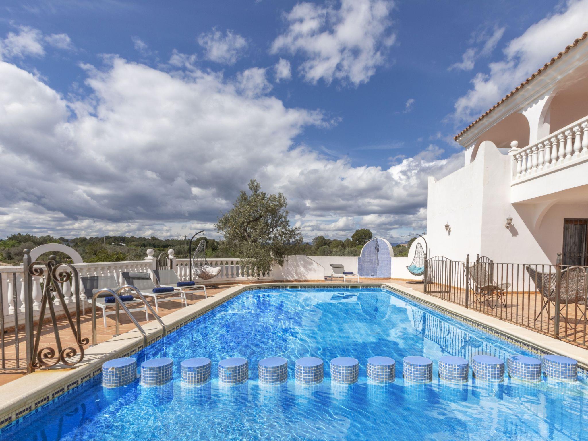 Sant Jordi: Large villa "Hacienda Azahar", 2 storeys. In a secluded, quiet, sunny position, 10 km from the sea, 10 km from the beach. Private: natural state property (fenced), swimming pool angular (58 m2, seasonal availability: 01.May. - 30.Sep.). Paddling pool, outdoor shower, arbour, barbecue. In the house: air conditioning. Parking. Bus stop "Vinaròs - Calle 29 Septiembre" 13 km, railway station "Vinaròs" 14 km, sandy beach "Playa Vinaròs" 15 km. Golf course (18 hole) 6 km. Nearby attractions: Peñiscola 30 km, Ciutat de les Arts i les Ciències 160 km, Sant Mateu 24 km, Delta del Ebro 42 km, Port Aventura 105 km, Morella 53 km. Hiking paths: Parque Natural Sierra de Irta 35 km, Foradada del Montsià 30 km. Please note: car recommended, no lift. Groups of teenagers on request only. Motorway close by 15 km from the property.