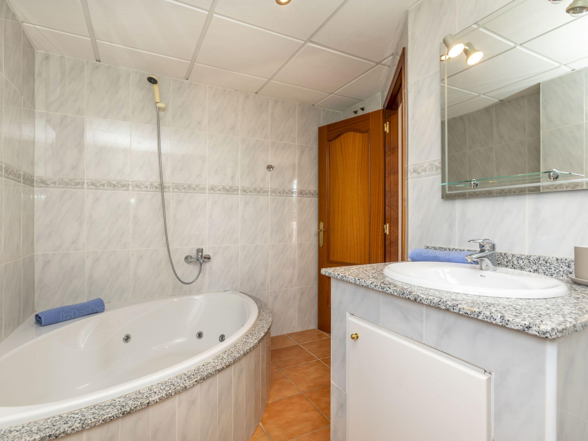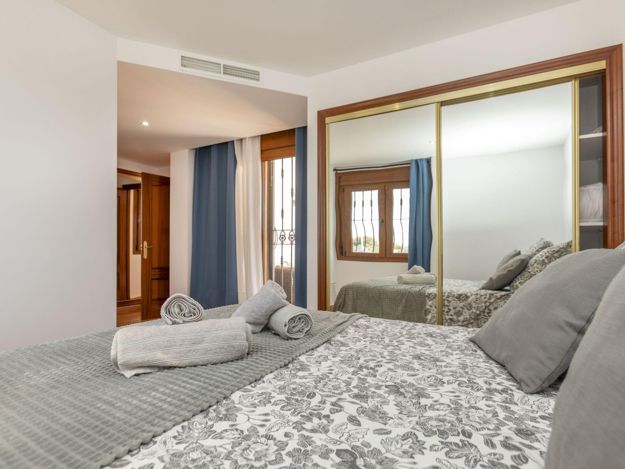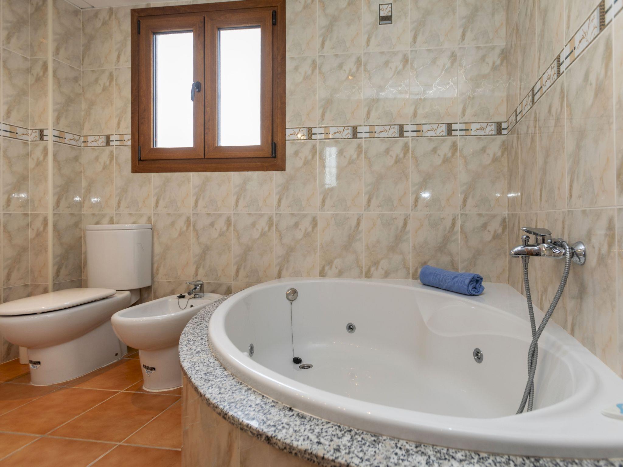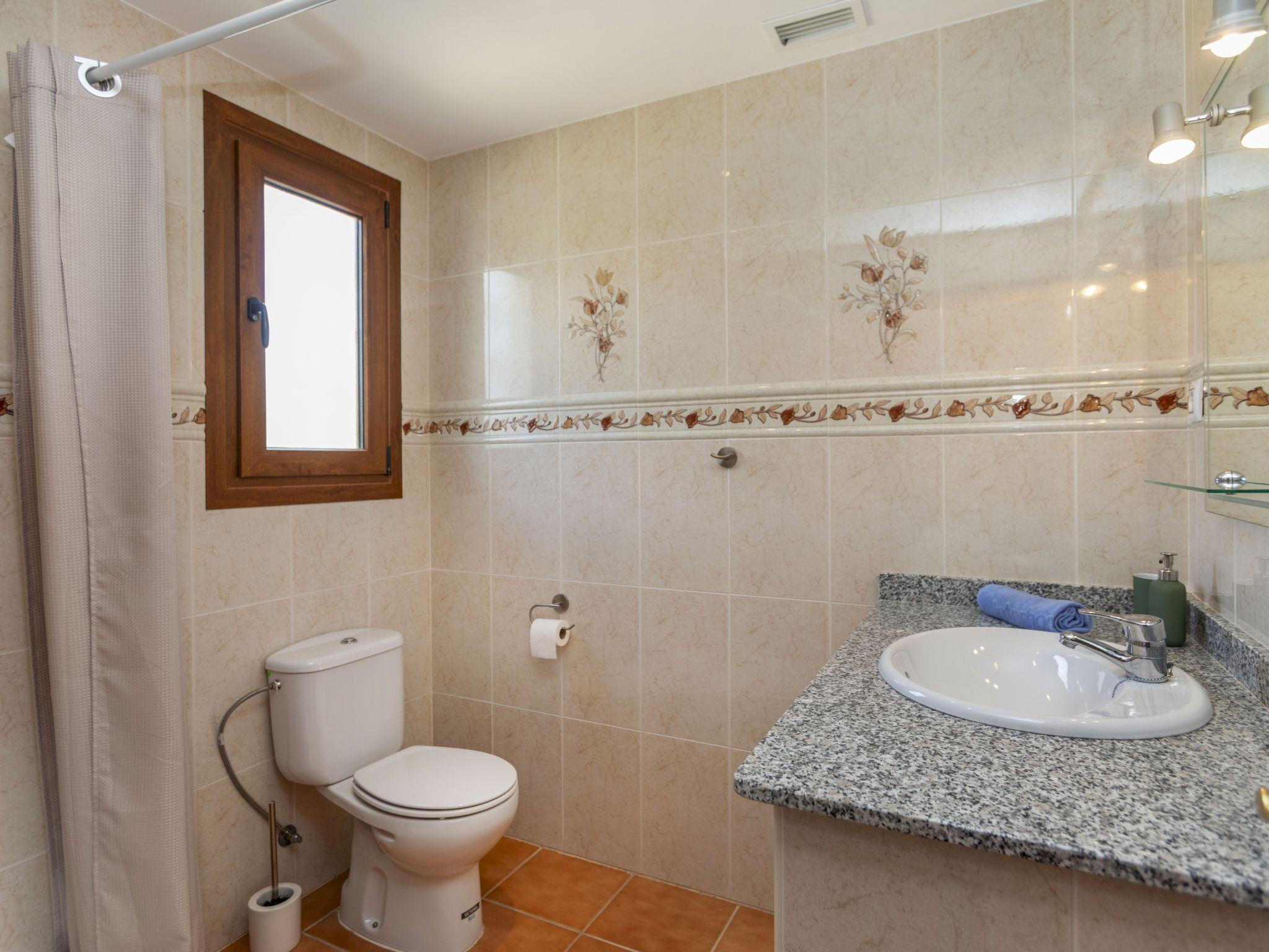 "Hacienda Azahar", 5-room villa 280 m2. Practical and comfortable furnishings: living/dining room with dining table, digital TV, air conditioning and forced-air heating. Exit to the terrace, to the swimming pool. 1 room with 1 french bed (1 x 160 cm, length 200 cm), shower/WC, air conditioning and forced-air heating. 1 room with 1 french bed (1 x 160 cm, length 190 cm). Large kitchen (oven, dishwasher, 4 ceramic glass hob hotplates, toaster, kettle, microwave, freezer, electric coffee machine). Shower/WC. Upper floor: 1 room with 1 french bed (1 x 160 cm, length 200 cm), bath/WC, with corner bath, air conditioning and forced-air heating. 1 room with 1 french bed (160 cm, length 200 cm), air conditioning and forced-air heating. 1 room with 1 french bed (1 x 160 cm, length 200 cm). Shower/WC. 2 large terraces, porch. Terrace furniture, barbecue, deck chairs (4), sitting area. View of the mountains, the valley and the swimming pool. Facilities: washing machine, iron, children's high chair, baby cot for up to 2 year olds, hair dryer. Internet (WiFi, free). Parking (4 cars). Please note: non-smoking house. TV only ES, FR. No lift. The pool mentioned in the description is for private use. R00000001