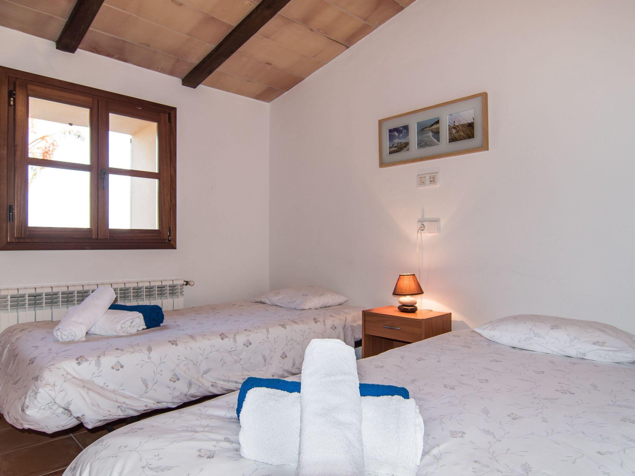 On the first floor are 3 bedrooms, two of them are equipped with two single beds (90 cm wide each), ie in total there are 4 beds of 90 cm over 2 bedrooms, and the other bedroom has a double bed of 1.80 cm, a bathroom (with bath, video, toilet ...) and a terrace.