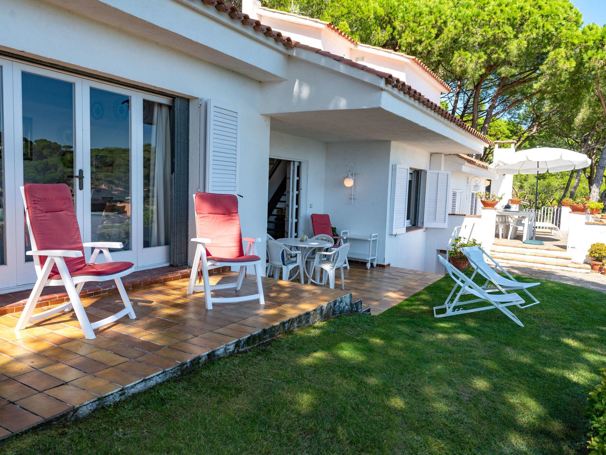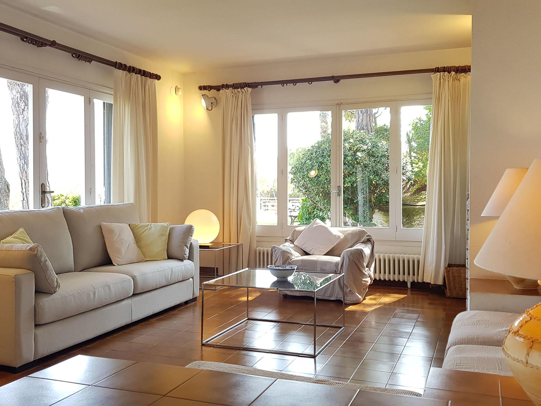 Beautiful, comfortable single-family house. Residential area (villas), excellent location: right in the centre but still quiet, from the sea, 200 m from the beach. Private: large garden 940 m2 with lawn and trees, roofed, parking, public parking on the road. Supermarket 350 m, restaurant 150 m, bar 150 m, café, bus stop 240 m, railway station 850 m. Golf course (18 hole) 5 km. Nearby attractions: Barcelona 58 km, Blanes 17 km, Mataro 24 km. The owner does not accept any youth groups. Neighbourhood highly sensitive to noise. Quietness and good behaviour expected.