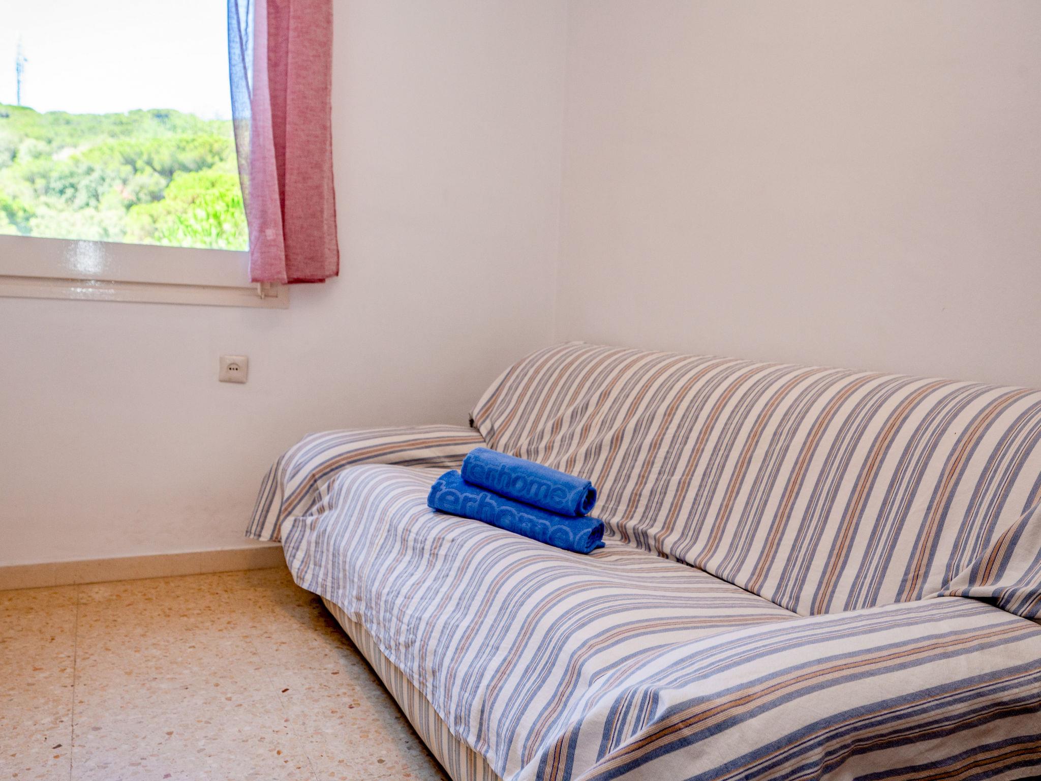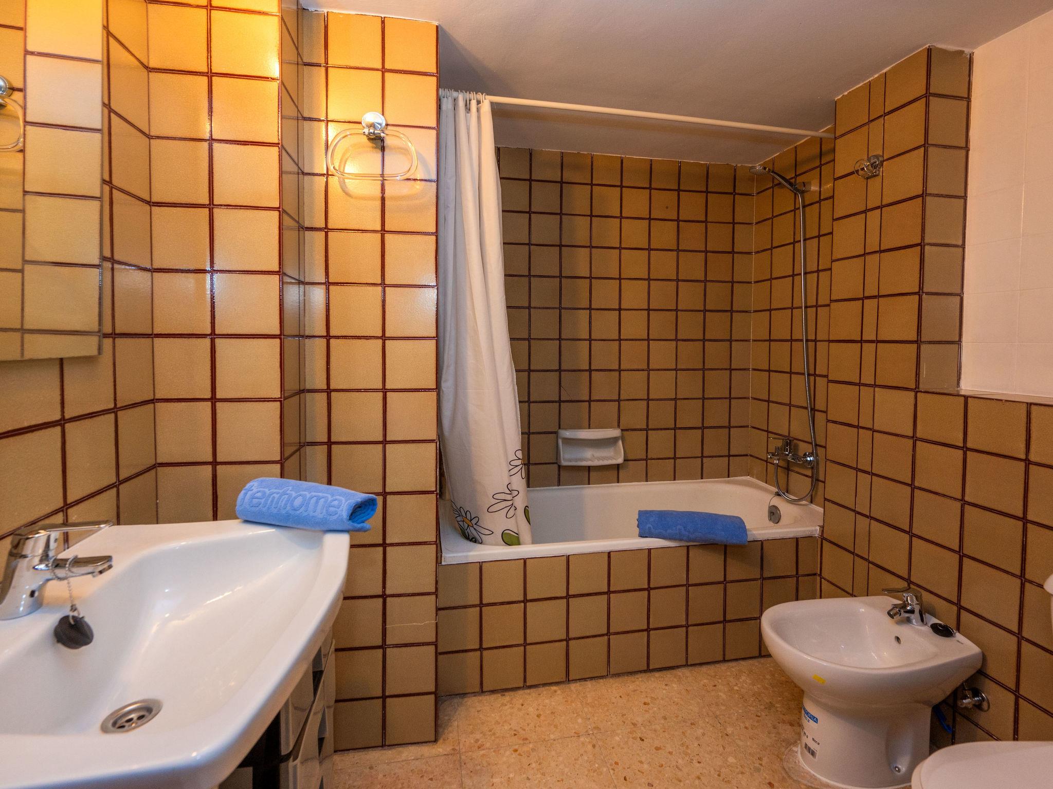 "Els Pins", 5-room apartment 82 m2. Practical and comfortable furnishings: living/dining room with dining table, digital TV and fan. Exit to the balcony. 1 room with 1 french bed (135 cm, length 190 cm), fan. 1 room with 2 beds (90 cm, length 190 cm), fan. 1 room with 1 bed (90 cm, length 190 cm), fan. Lounge with fan. Kitchen (5 hot plates, oven, dishwasher, toaster, kettle, microwave, electric coffee machine). Bath/WC, bath/bidet/WC. No heating option. Balcony furniture. View of the swimming pool. Facilities: washing machine, iron, hair dryer. Internet (WiFi, free). HUTB-073707 // Reg. Nr.: ESFCTU00000809600058897800000000000000000HUTB-0737074