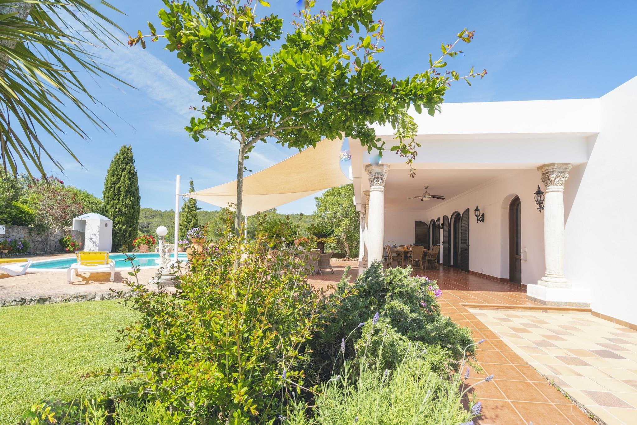 Enjoy luxury at this 3 bedroom mansion for 6 people, located in the countryside Santa Eulària des Riu. This accommodation boasts a private swimming pool and a terrace, which makes it perfect for families and a small group on vacation. The picturesque town center of Santa Eulalia is 3 km away, where you can visit several restaurants and enjoy the lively nightlife. The serene sea beach in the region is also 5 km away, perfect for enjoying a refreshing dip in the sea. You can even plan an outing to the famous Ibiza stad, 12 km away. This holiday mansion has a well-manicured garden where the children can play freely, while the parents unwind on the terrace. The host provides a cot and a high chair on request too! You can even enjoy the satellite TV in the comfortable living room or prepare delicious meals in the large kitchen. Finally, there is free WiFi to use! The nearest airport is 15 km away from the mansion. Services included in the Villas: Free high chair and baby cot Pool towels WIFI International satellite TV Air conditioning Barbecue Mid-week towel change Etc.... Additional services included: Gardening Pool maintenance Alarm system Two safety deposit boxes.