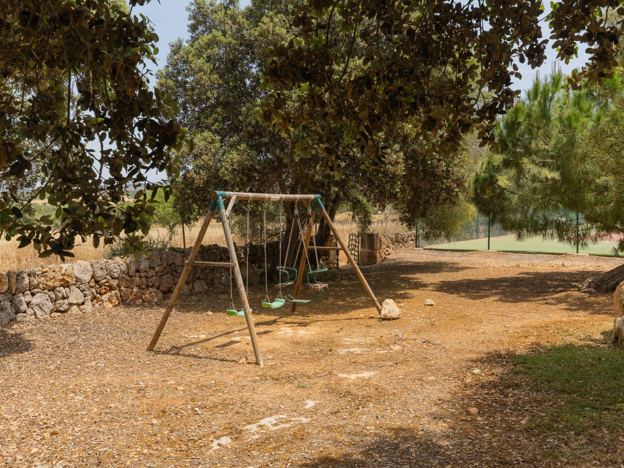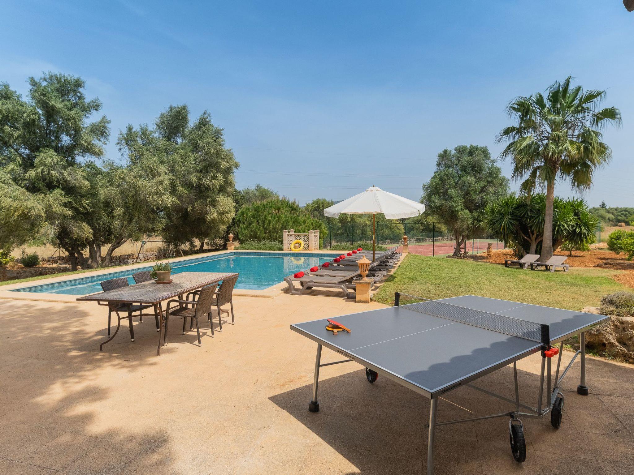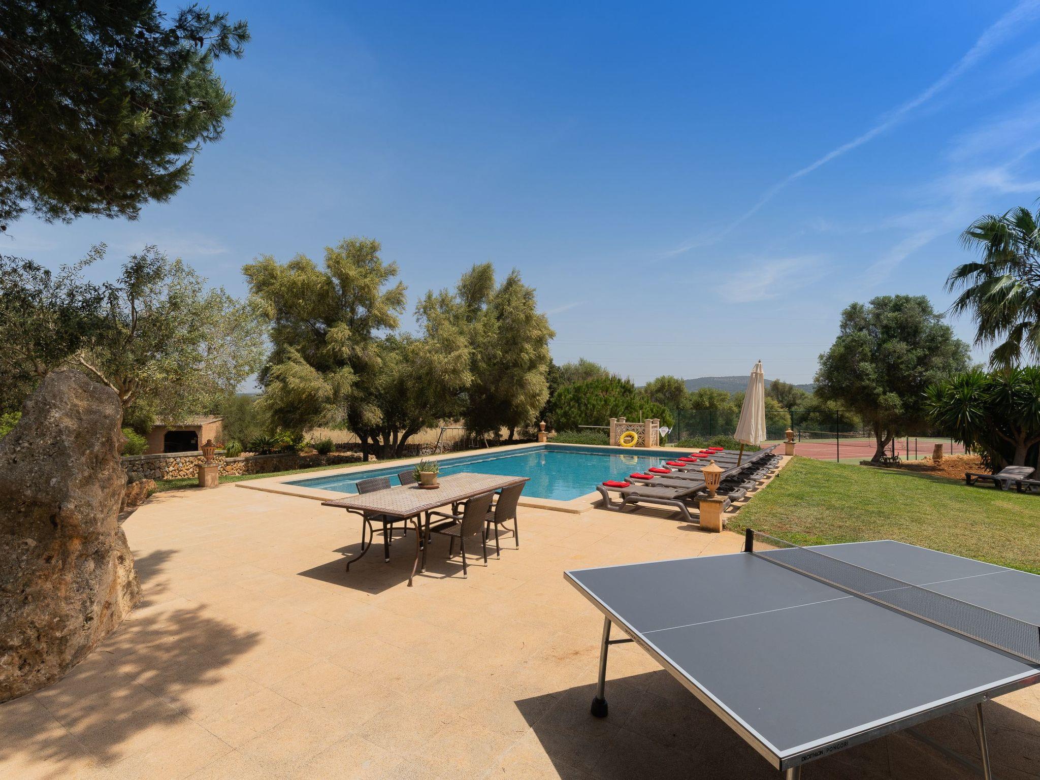 Finca with tennis court for 10 people + 2 children, for rent in a quiet rural area just 5 km from the small village of Cas Concos and 7 km from Santanyí. An ideal location, only a short drive to shops, restaurants and weekly markets. The finca is 11 km from beaches such as Cala Santanyi or 13 km from the Mondragó Natural Park with the beaches of Cala Mondragó and S'Amarador.