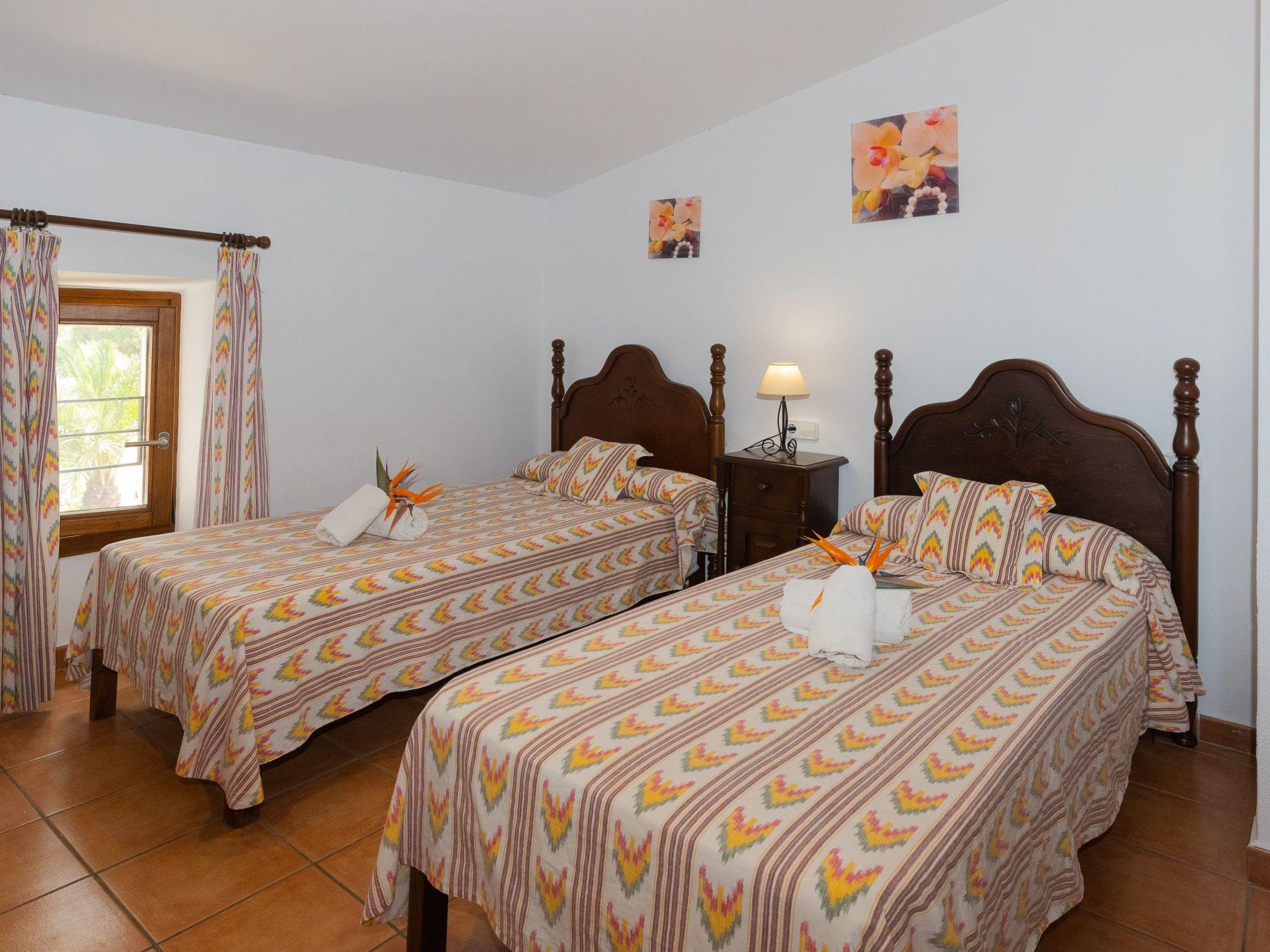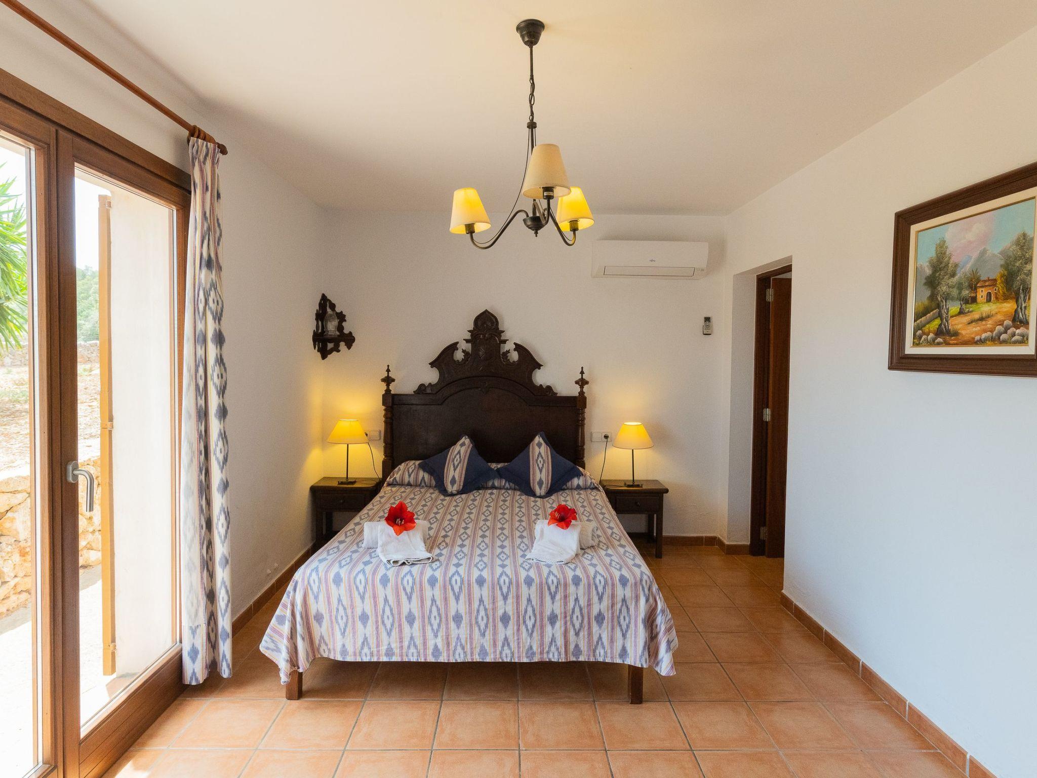 Traditional house in rustic Mallorcan style with main house and a small casita. In the main house. The entrance leads directly into the living and dining area. Kitchen and laundry room. Double bedroom with exit to the outside and bathroom en suite. Bedroom with single beds and bathroom en suite. On the first floor is the master bedroom with a double bed (two single beds pushed together), an en-suite bathroom and access to a terrace with wonderful views of the surrounding area. There are two further bedrooms, each with two single beds and en-suite bathrooms. One of these bedrooms also has access to the terrace. Near the pool there is a small cottage, the casita, with a living room with sofa bed, a kitchen area with fridge and a 2-burner cooker and dining area. On the upper floor there is a bedroom with a double bed and en-suite bathroom.