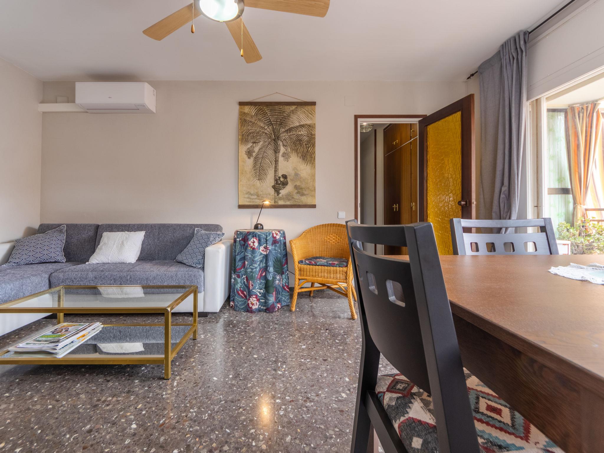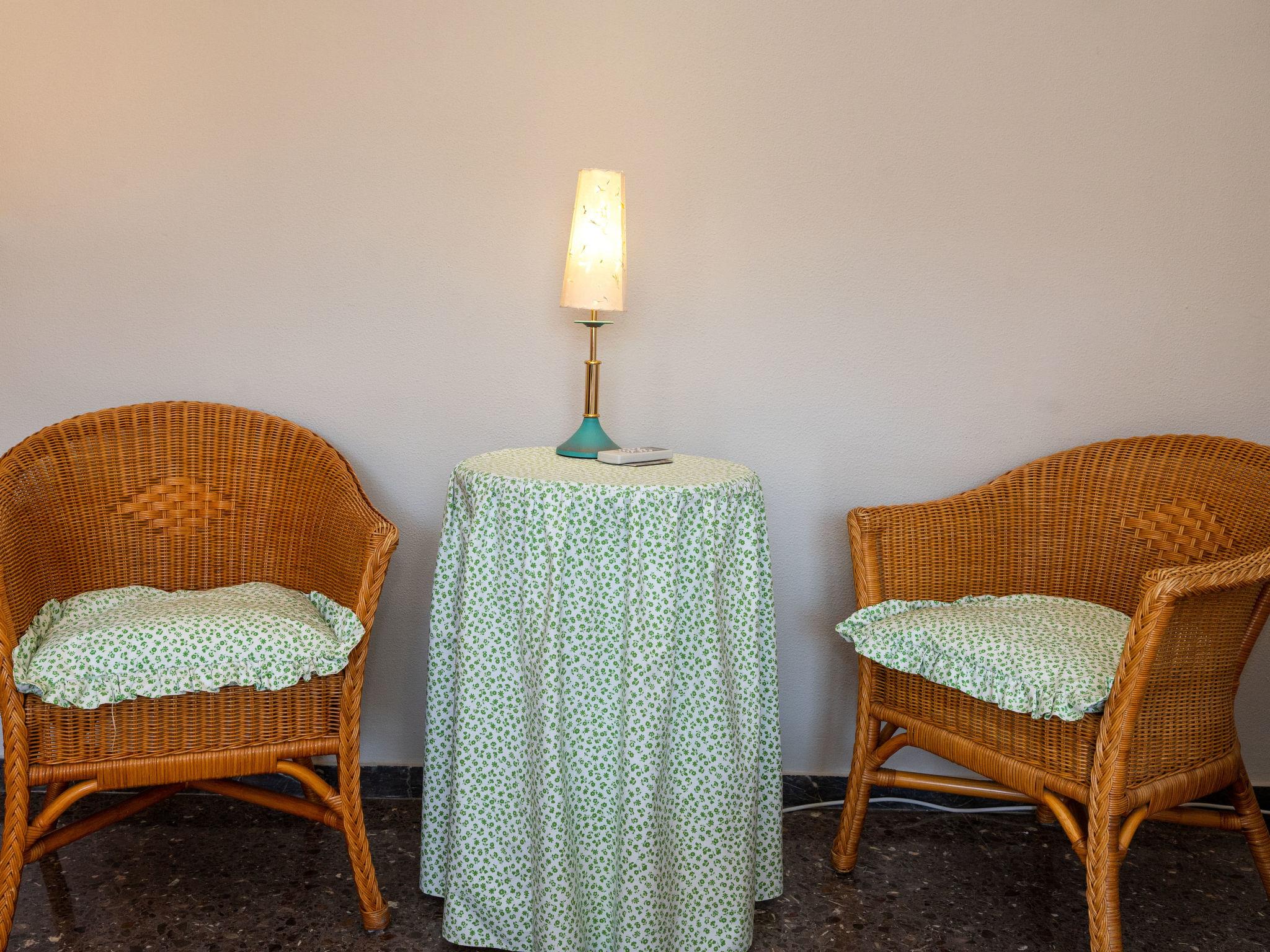 "Riumar", 3-room apartment 54 m2. Practical and modern furnishings: living/dining room with dining table, digital TV, air conditioning and forced-air heating. Exit to the balcony. 1 room with 1 french bed (150 cm, length 190 cm). 1 room with 1 french bed (135 cm, length 190 cm). Kitchen (4 hot plates, oven, toaster, microwave, electric coffee machine, Capsules for coffee machine (Nespresso) extra). Bath/WC. Balcony. Balcony furniture. Facilities: washing machine, iron, hair dryer. Internet (WiFi, free). Parking (extra, 1 car). Please note: parking space for small car only. HUTT062226 // Reg. Nr.: ESFCTU00004302500012225000000000000000HUTT-062226-520