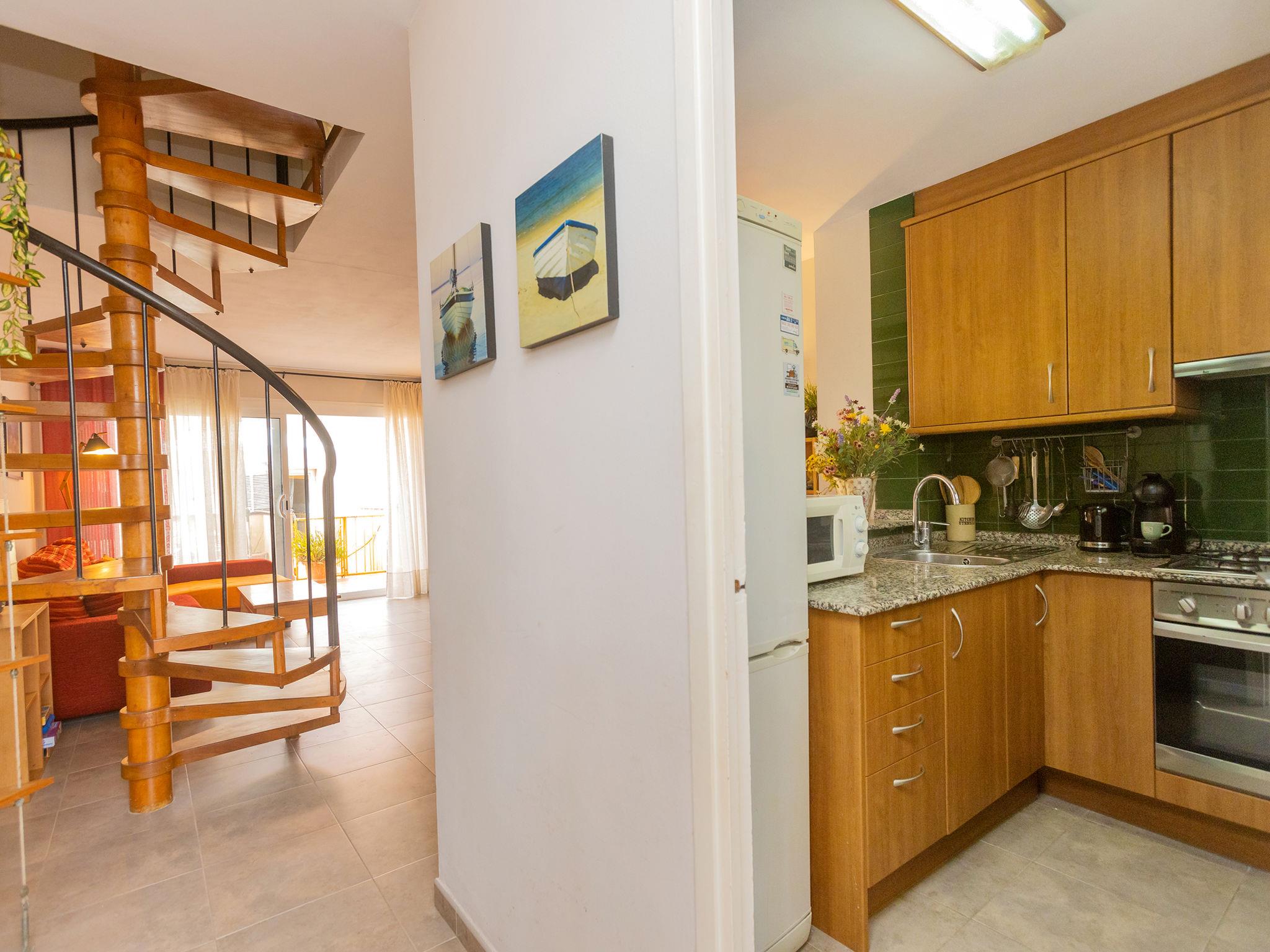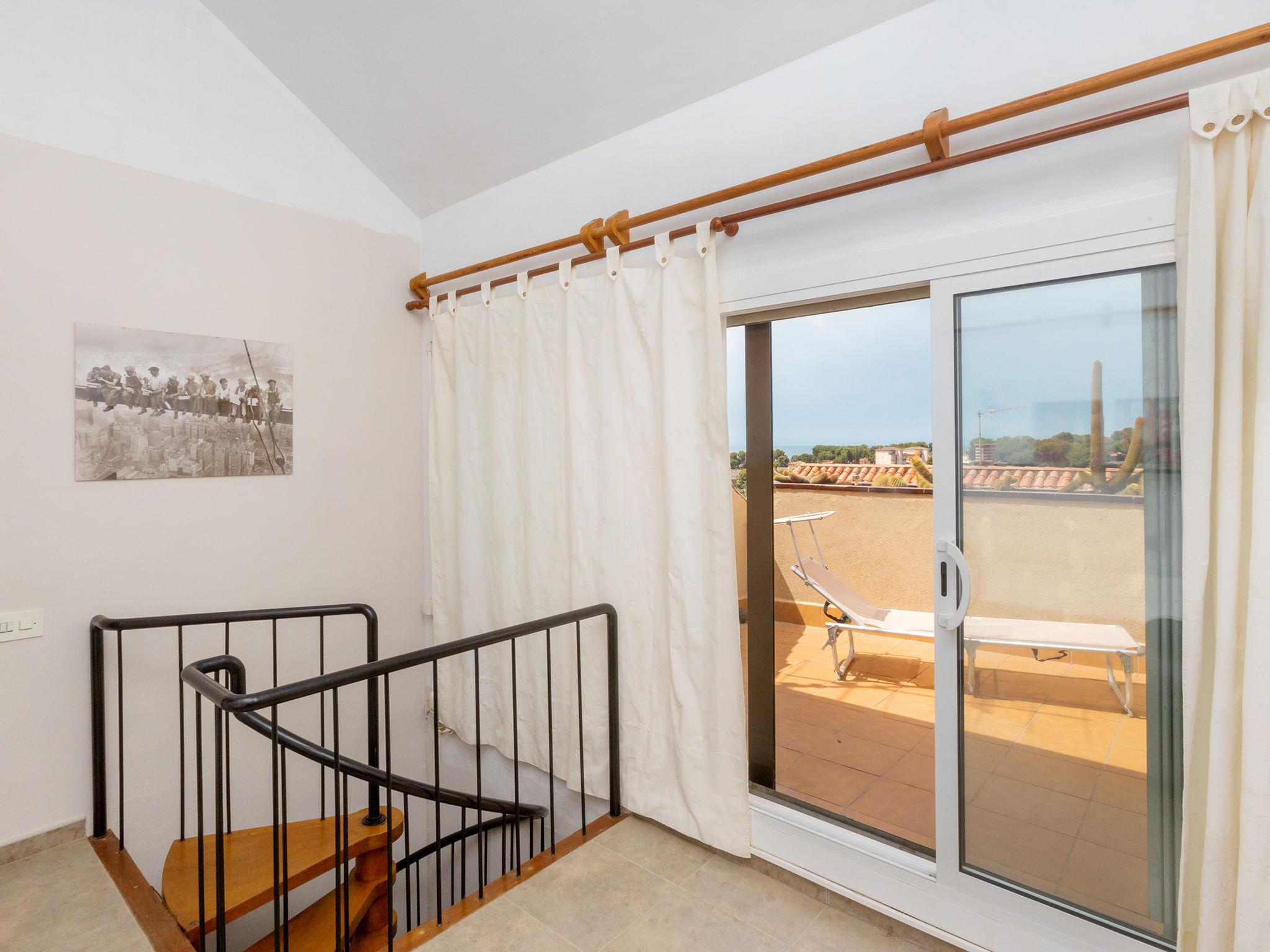 "Sol", 4-room semi-detached house 66 m2. Comfortable and modern furnishings: living/dining room with dining table and digital TV. Exit to the terrace. Kitchenette (4 hot plates, oven, toaster, microwave, electric coffee machine). No heating option. Upper floor: 1 room with 1 french bed (135 cm, length 190 cm). 1 room with 1 bed (90 cm, length 190 cm). Bath/bidet/WC. 2nd upper floor: 1 room with 1 french bed (135 cm, length 190 cm), separate WC. Exit to the balcony. Terrace. Terrace furniture, barbecue. Distant view of the sea. Facilities: washing machine, iron, children's high chair, baby cot for up to 2 year olds, hair dryer. Internet (WiFi, free). HUTT063885 // Reg. Nr.: ESFCTU000043025000110035000000000000000000HUTT0638855