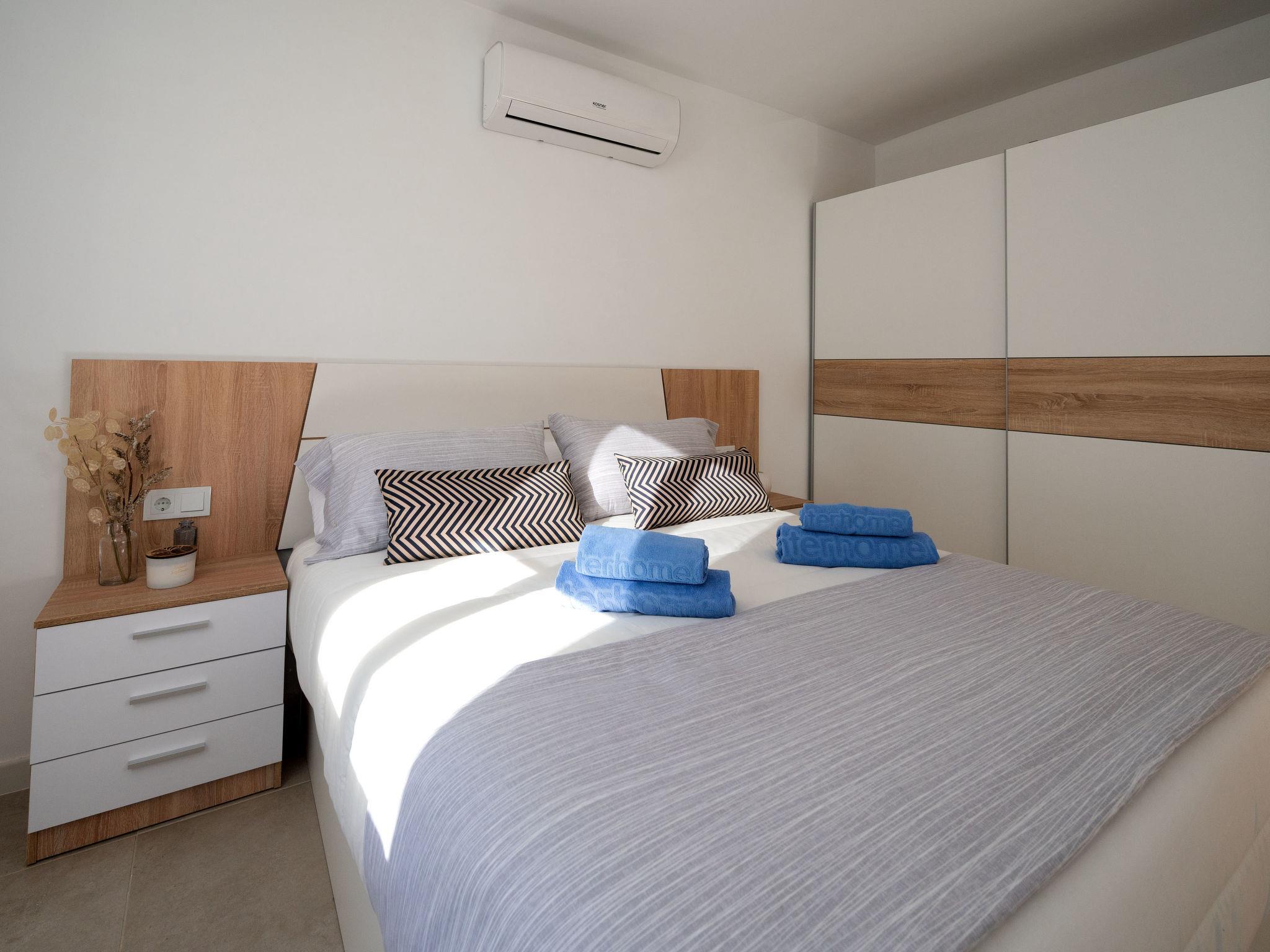 "Sakura", 3-room apartment 62 m2. Comfortable and modern furnishings: living/dining room with dining table, digital TV and air conditioning. Exit to the balcony. 1 room with 1 french bed (150 cm, length 190 cm), air conditioning. 1 room with 2 beds (90 cm, length 190 cm). Kitchen (oven, dishwasher, 3 induction hot plates, toaster, kettle, microwave). Shower/WC. No heating option. Balcony. Balcony furniture. View of the port. Facilities: washing machine, iron, hair dryer. Internet (WiFi, free). Garage on the property (1 car). HUTT-066179 // Reg. Nr.: ESFCTU0000430250005066850000000000000000HUTT066179521