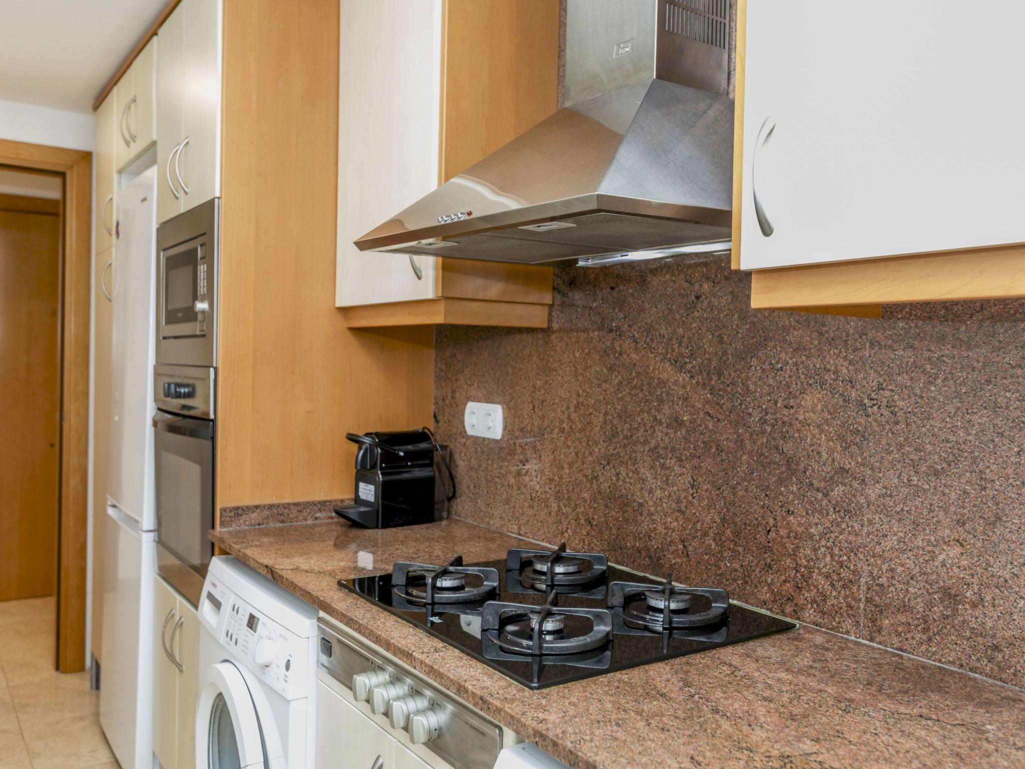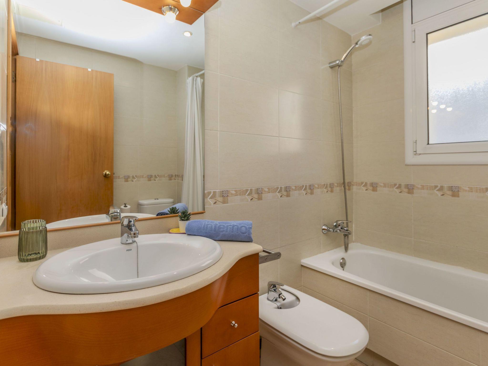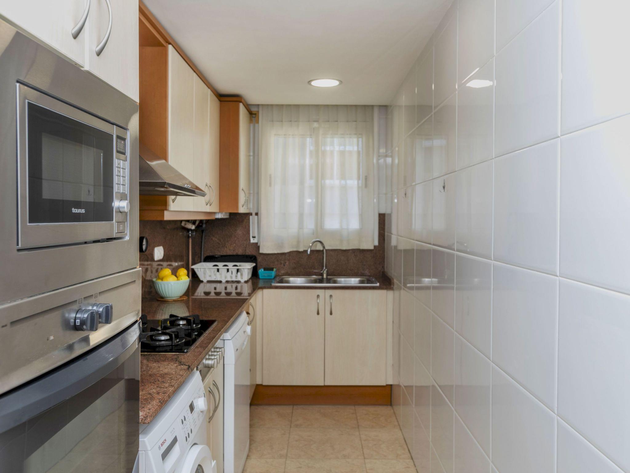 Segur de Calafell: Modern, comfortable apartment block "Nadina". 260 m from the sea, 110 m from the beach. In the house: lift. Roofed, parking space n 18. Shop 150 m, supermarket 500 m, restaurant, bar 150 m, bakery, café 200 m, pedestrian zone 110 m, bus stop "Segur" 500 m, railway station "Segur de Calafell" 500 m. Sports harbour 450 m, golf course (18 hole) 12 km, surf school 550 m, sailing school 650 m, tennis 900 m, sports centre 1.5 km. Nearby attractions: Barcelona 60 km, Sitges 21 km, Tarragona 39 km, Port Aventura 50 km. Hiking paths: El pujal 3 km, Cova Forada 4 km. Neighbourhood highly sensitive to noise. Quietness and good behaviour expected.